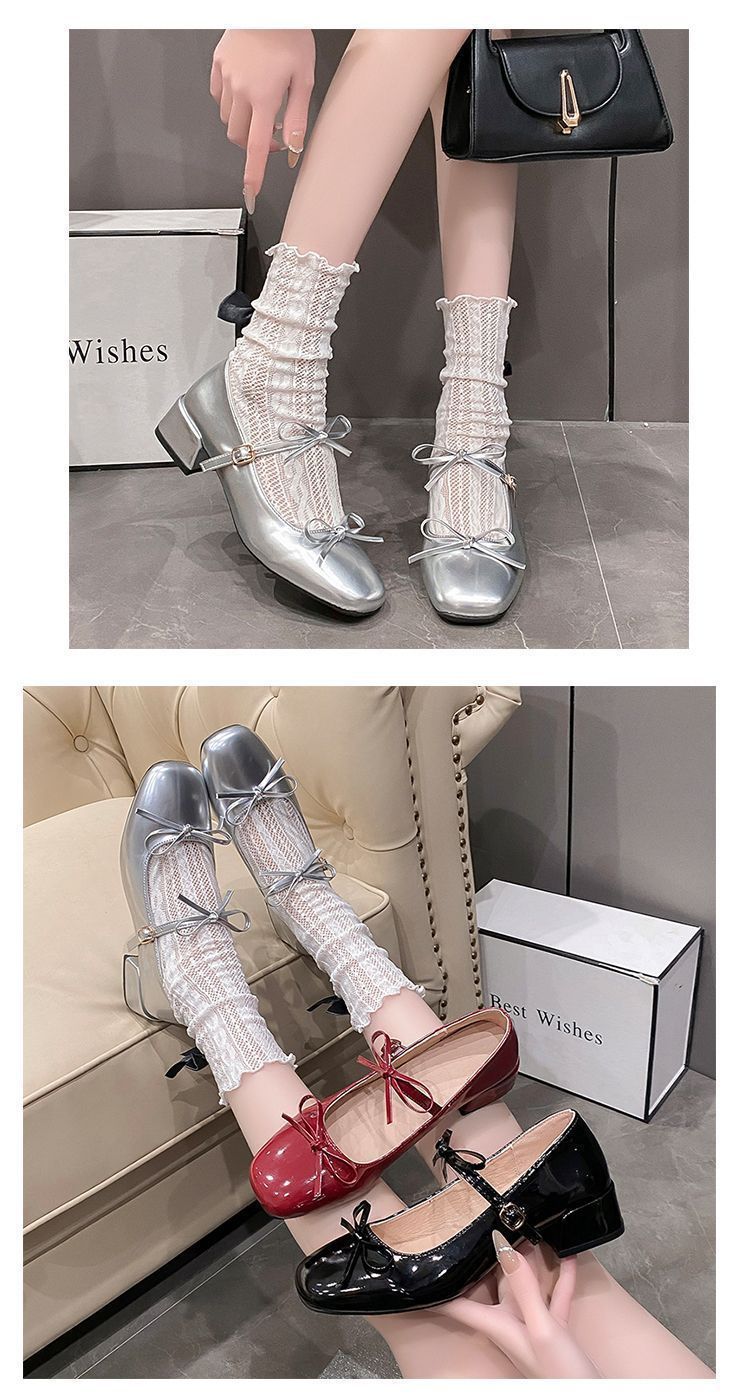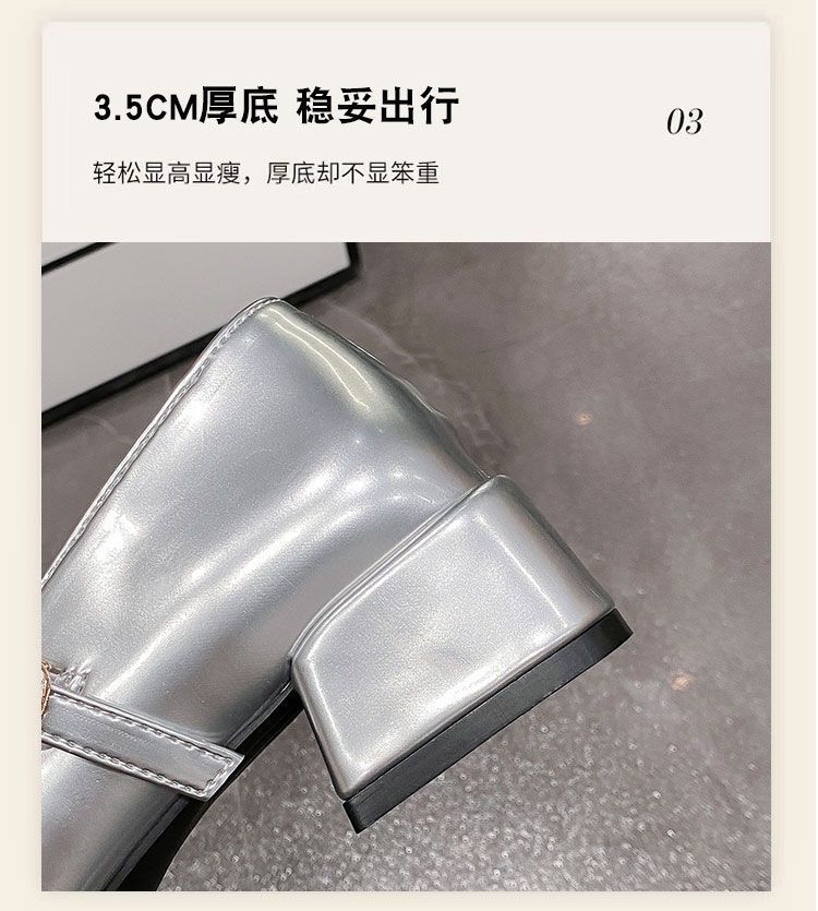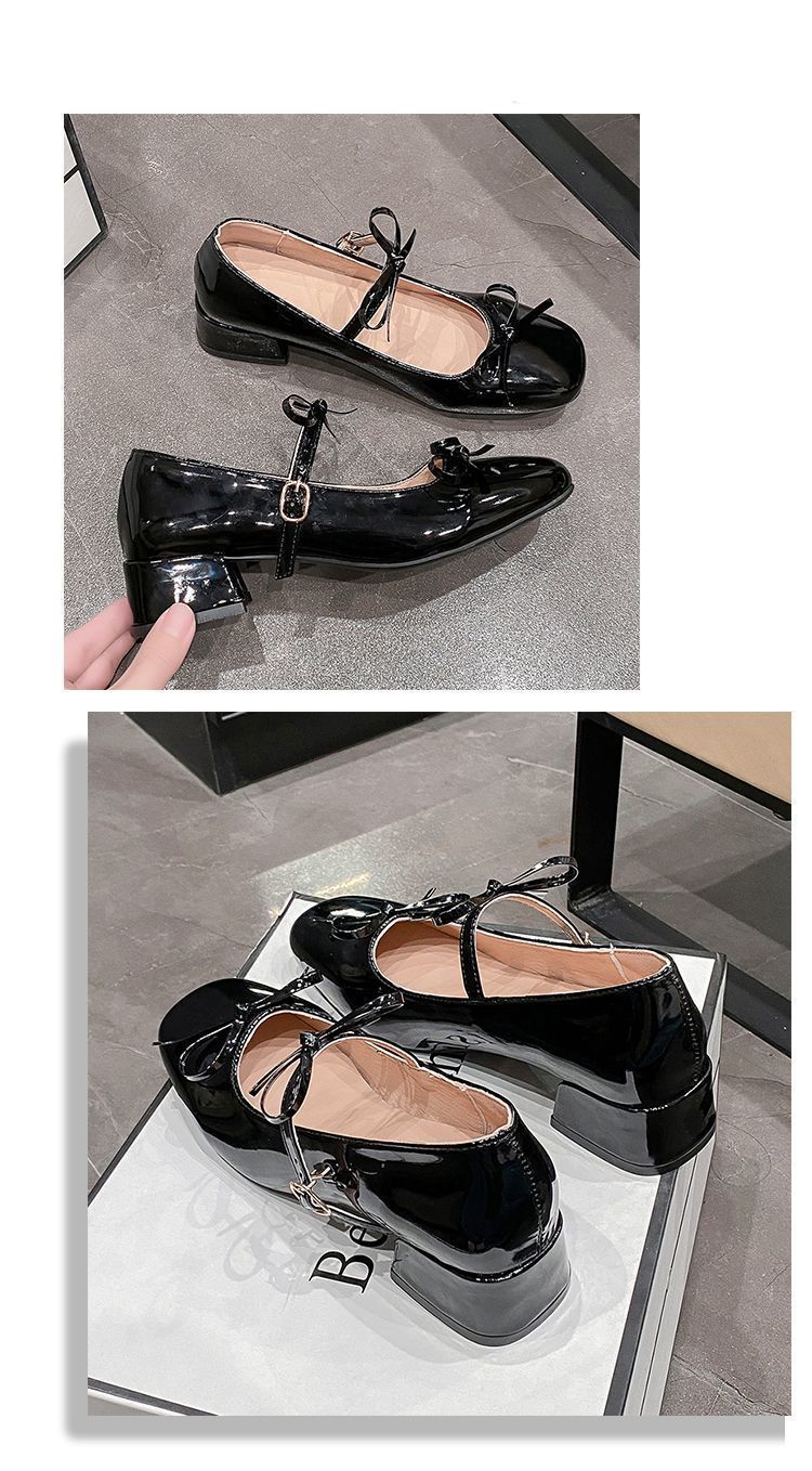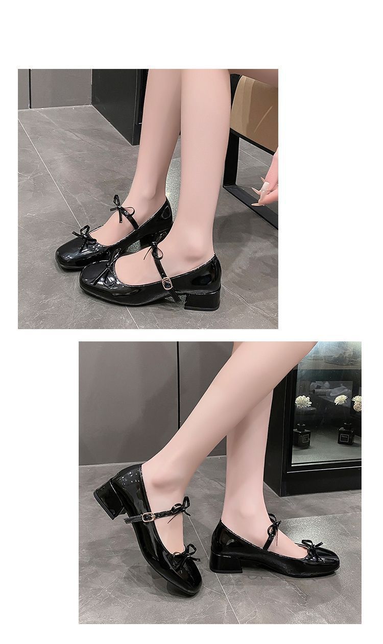 빈티지 요정 스타일 원피스 메리 제인 작은 가죽 신발 2025 봄과 여름 새로운 프랑스 두꺼운 하이힐 얕은 입 싱글 레이어 신발스토어 가기