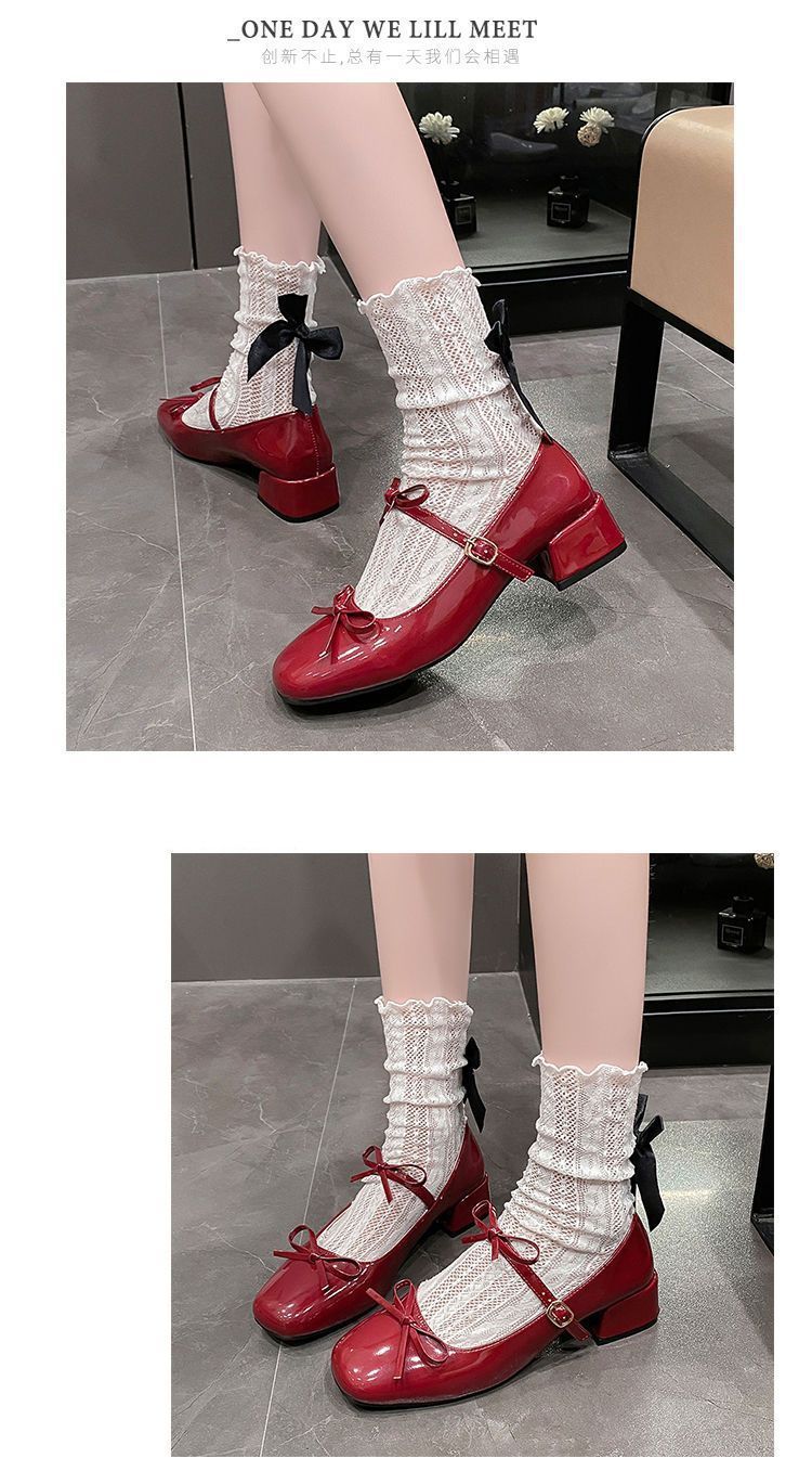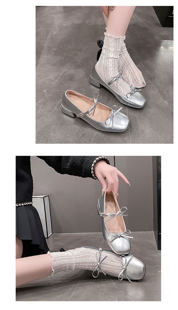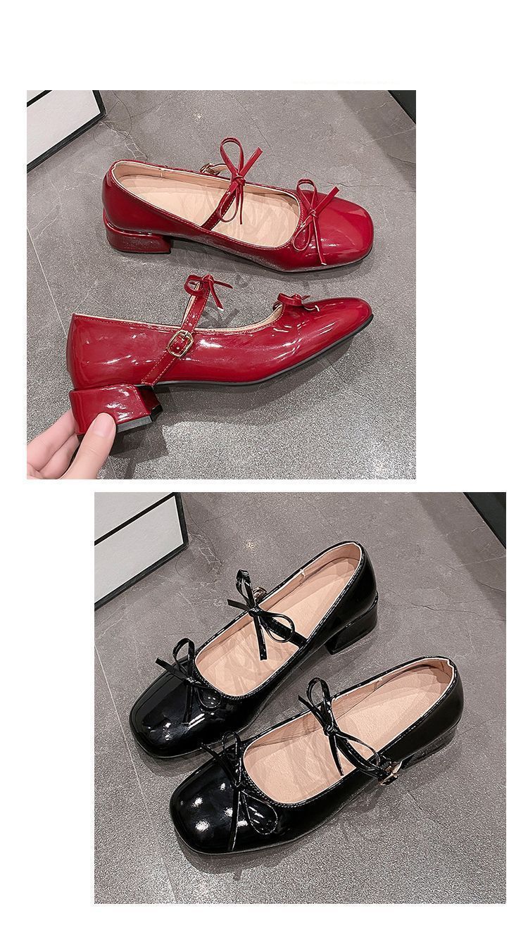 빈티지 요정 스타일 원피스 메리 제인 작은 가죽 신발 2025 봄과 여름 새로운 프랑스 두꺼운 하이힐 얕은 입 싱글 레이어 신발스토어 가기