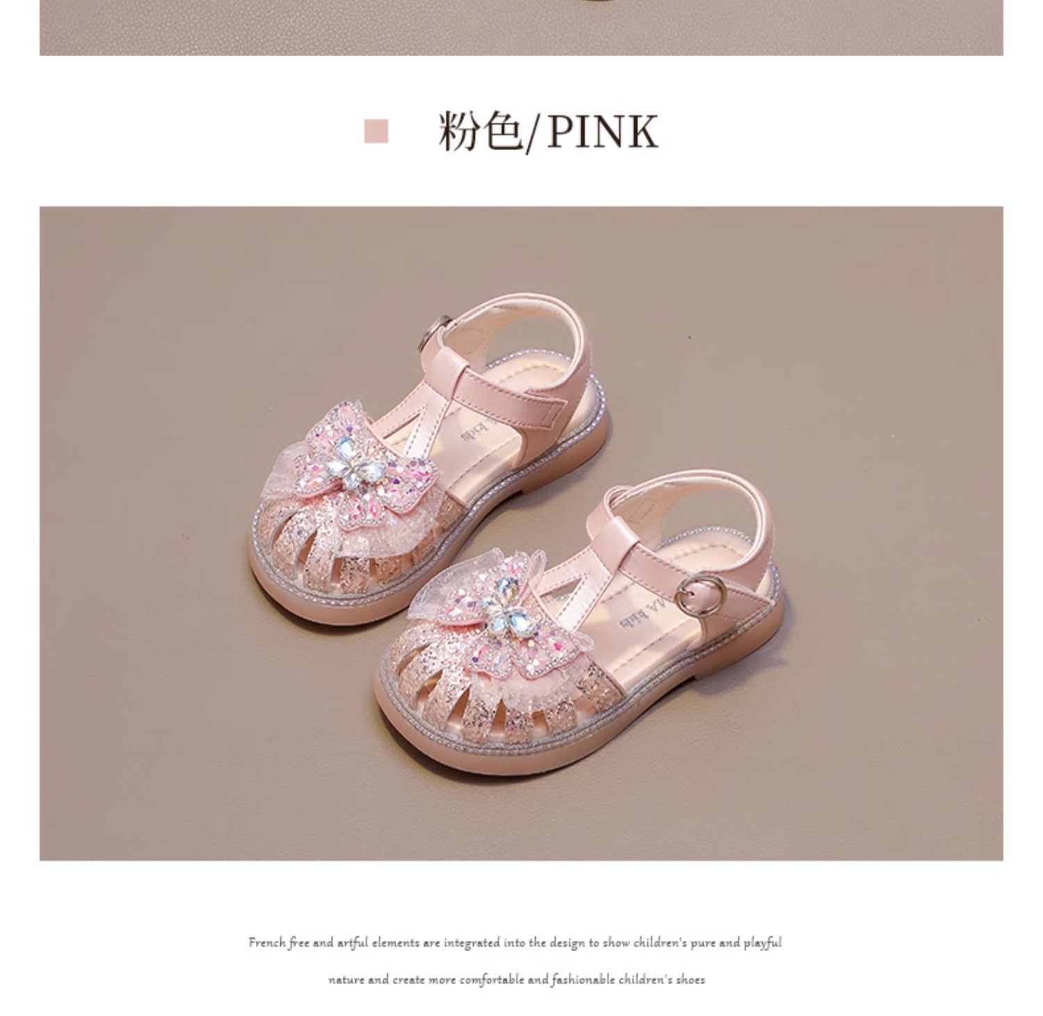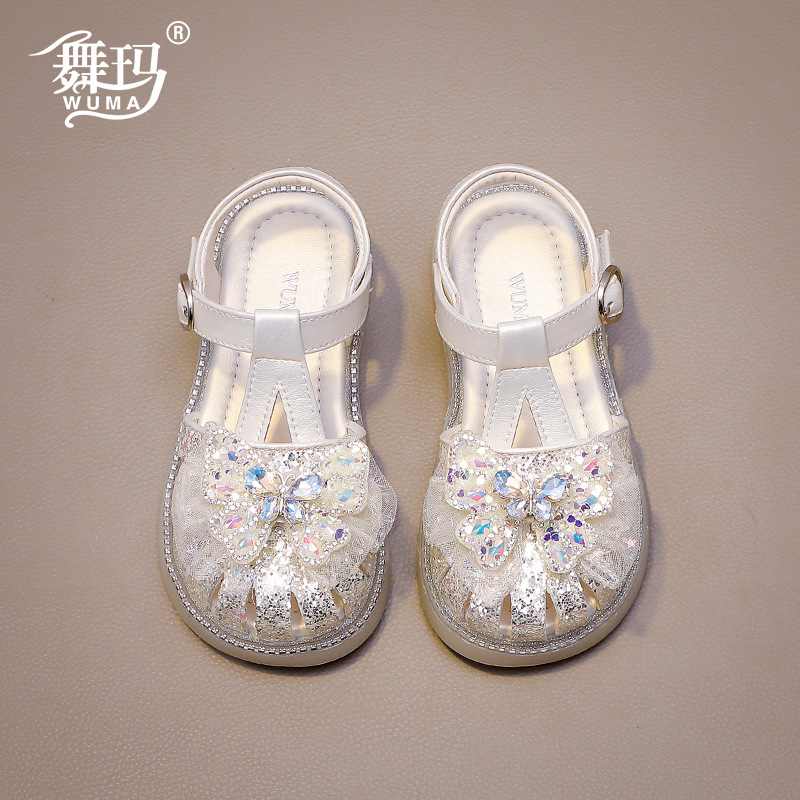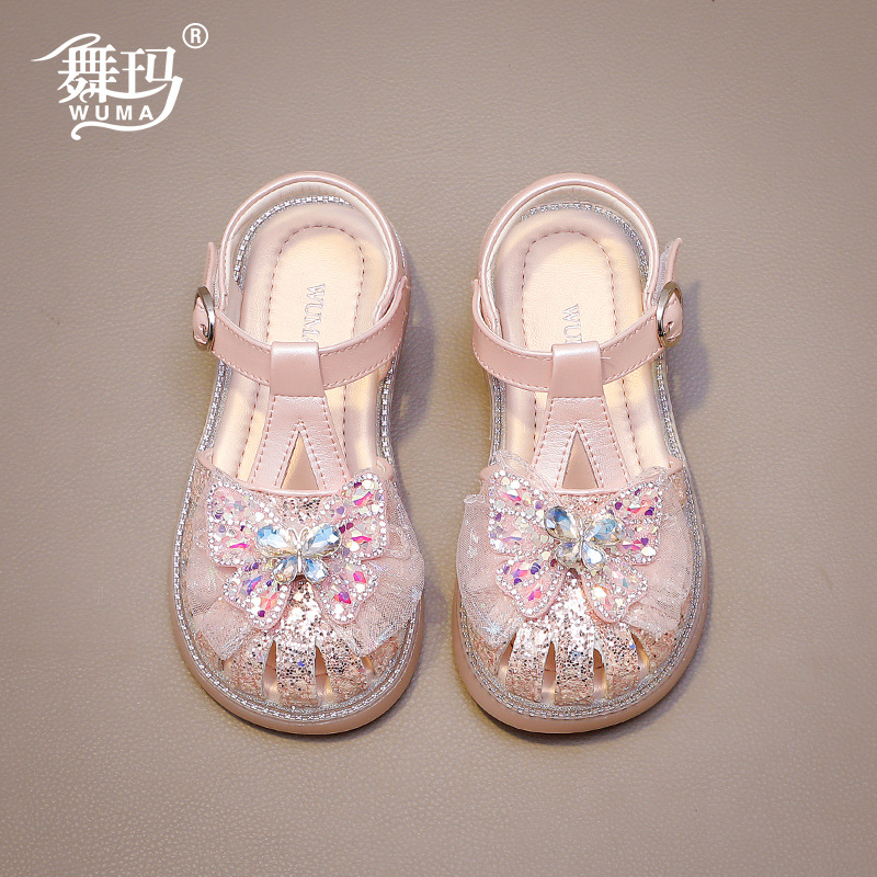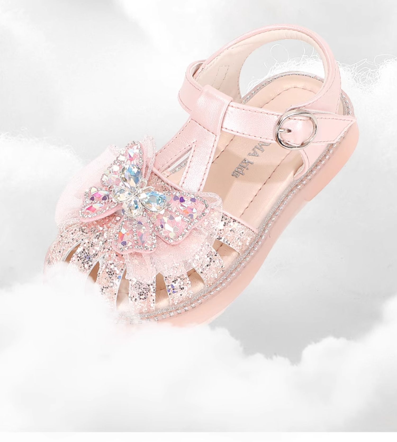 마우 마 걸스 신발 어린이 샌들 2025 새로운 여름 작은 소녀 부드러운 바닥 크리스탈 나비 바오 터 공주 신발스토어 가기