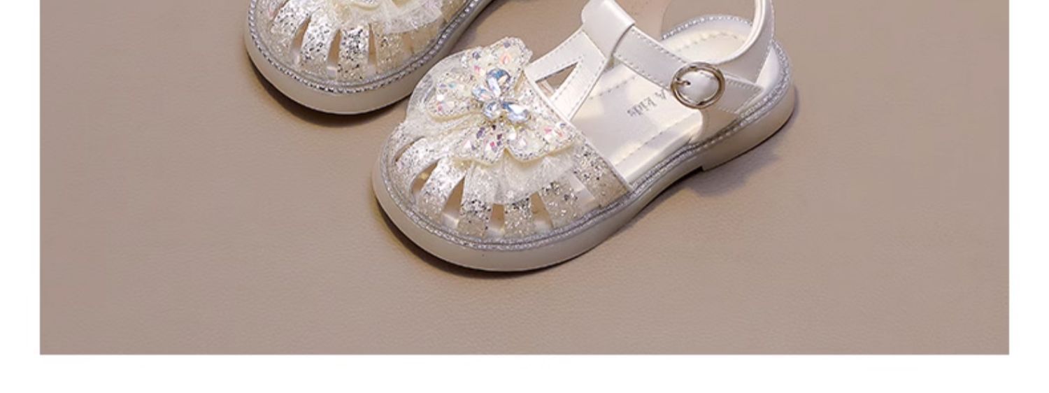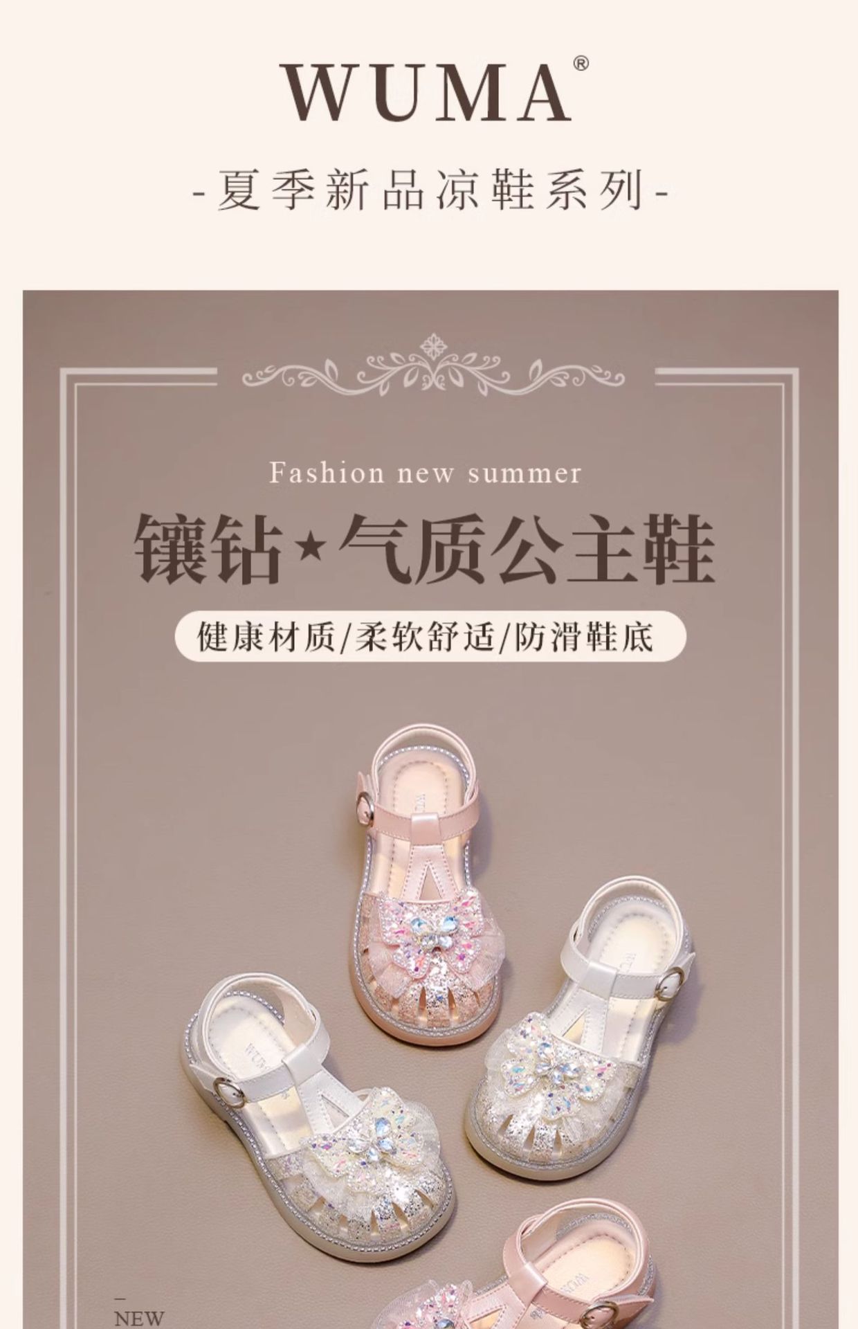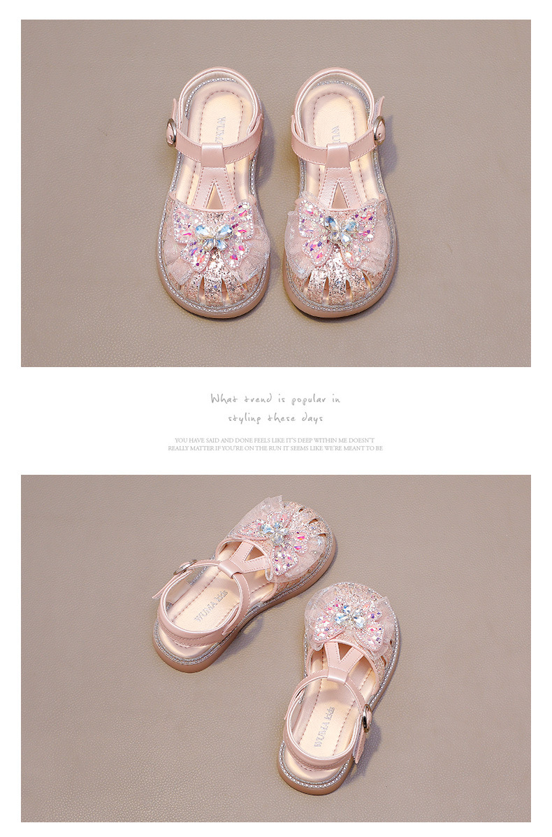 마우 마 걸스 신발 어린이 샌들 2025 새로운 여름 작은 소녀 부드러운 바닥 크리스탈 나비 바오 터 공주 신발스토어 가기