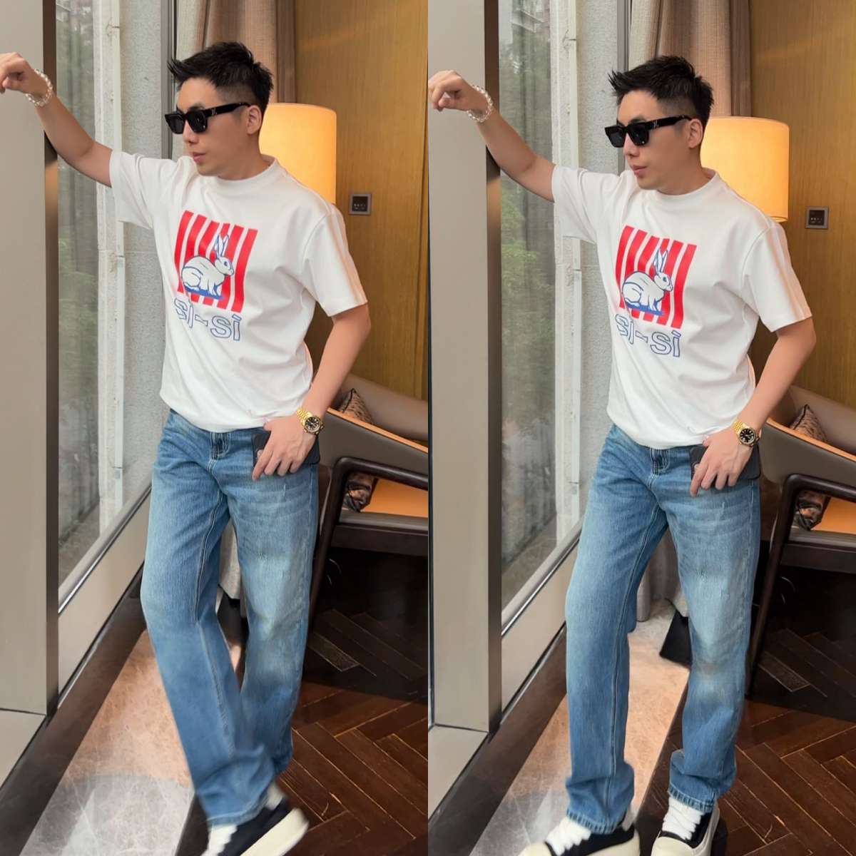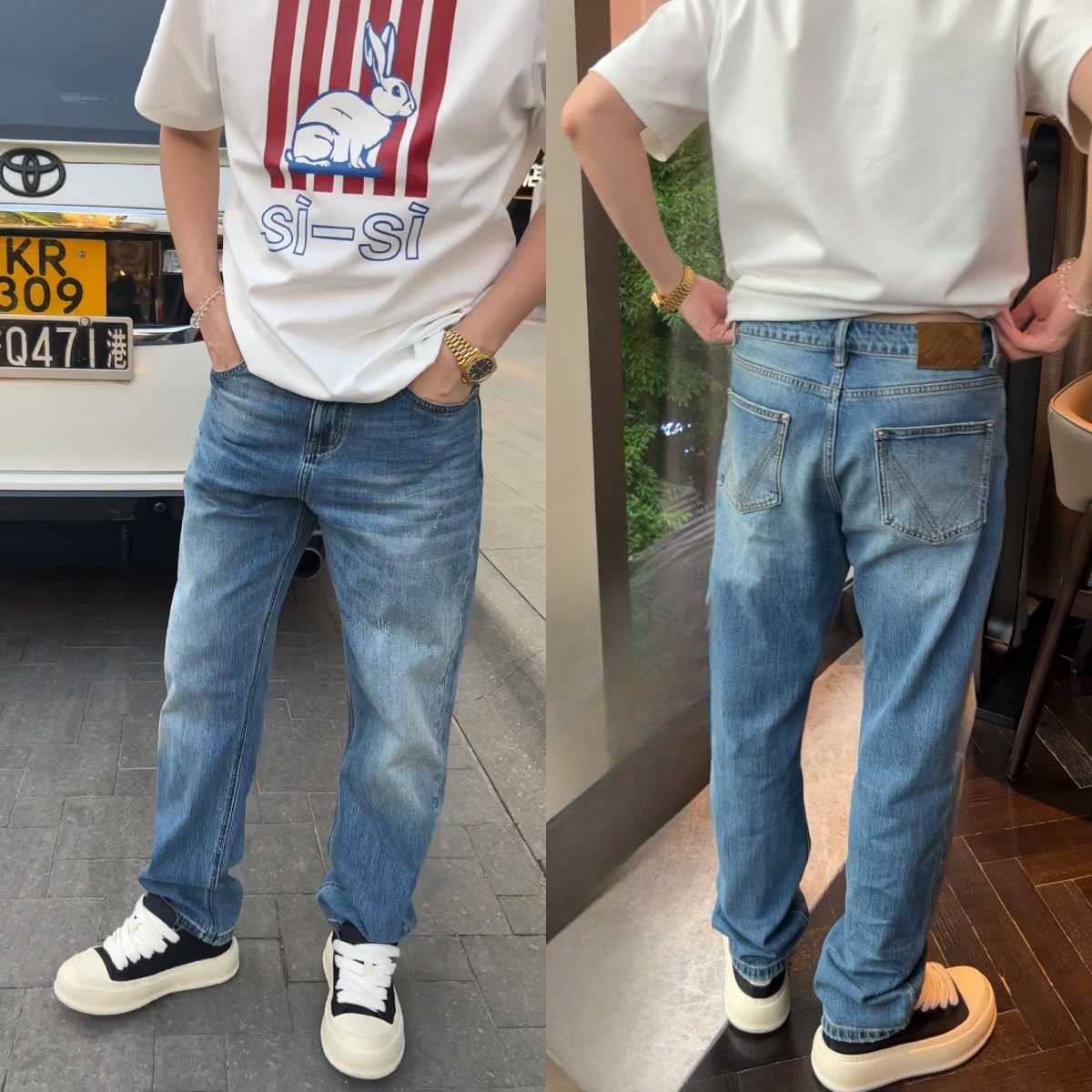 [영상 같은 스타일] 남자 봄 트렌디한 캐주얼 바지 올매치 패셔너블 슬림핏 한국식 라이트 럭셔리 스트레이트 레그 청바지스토어 가기