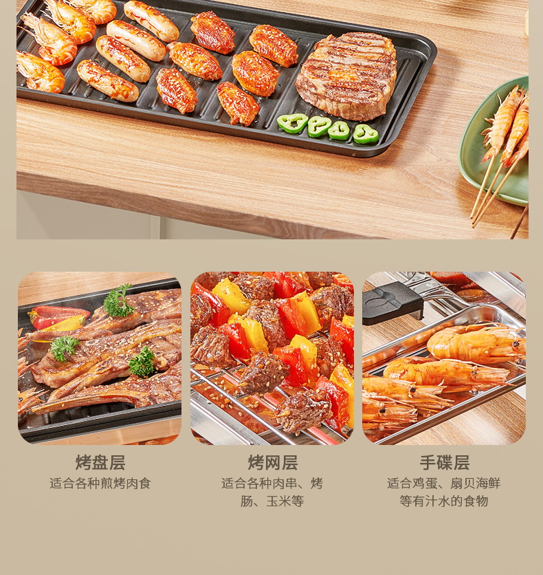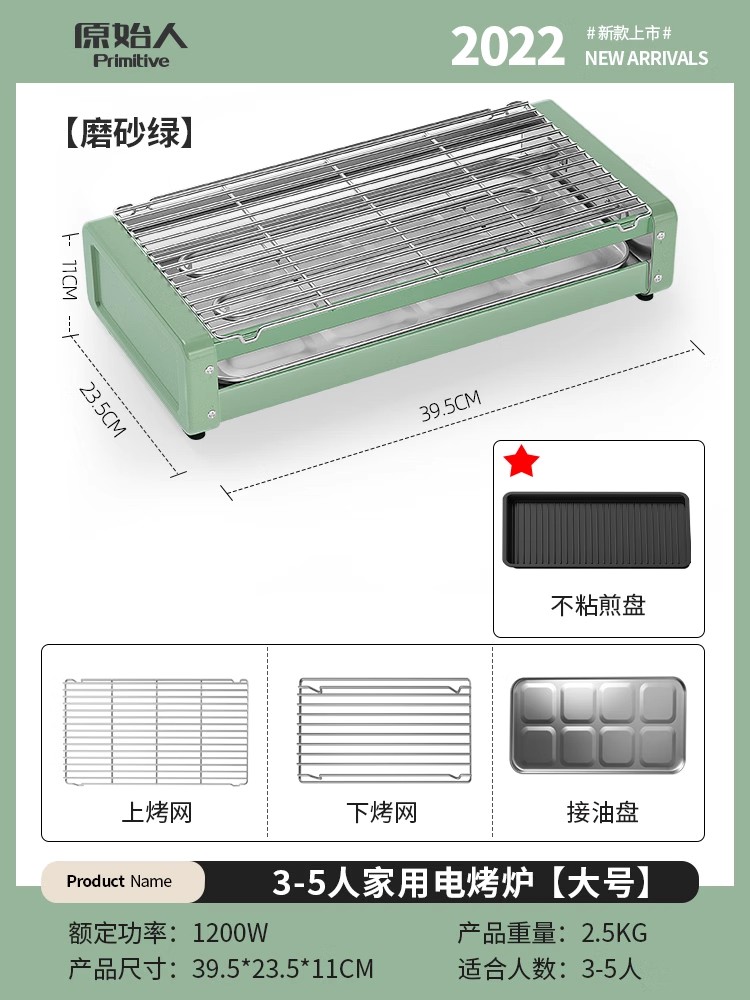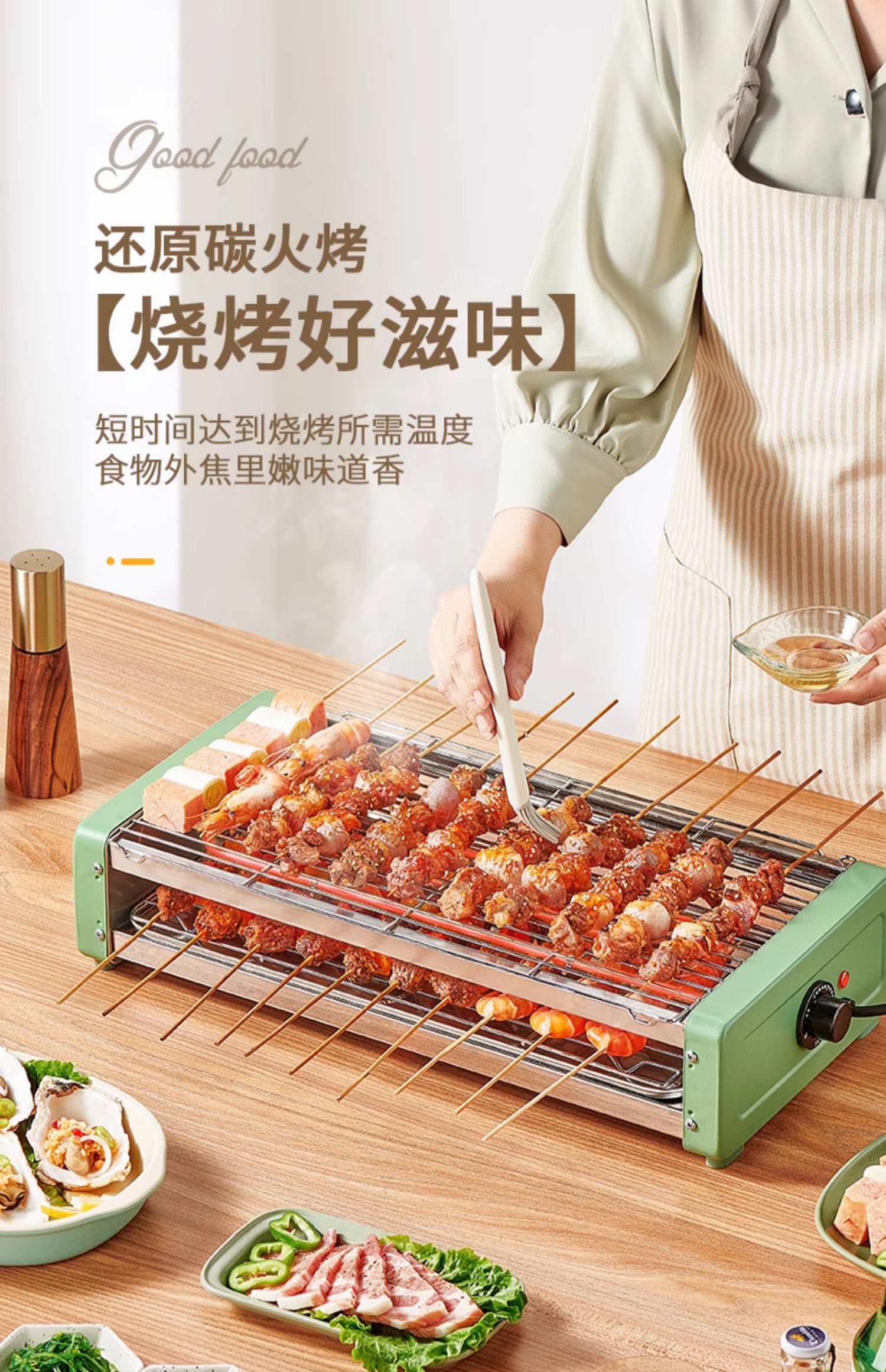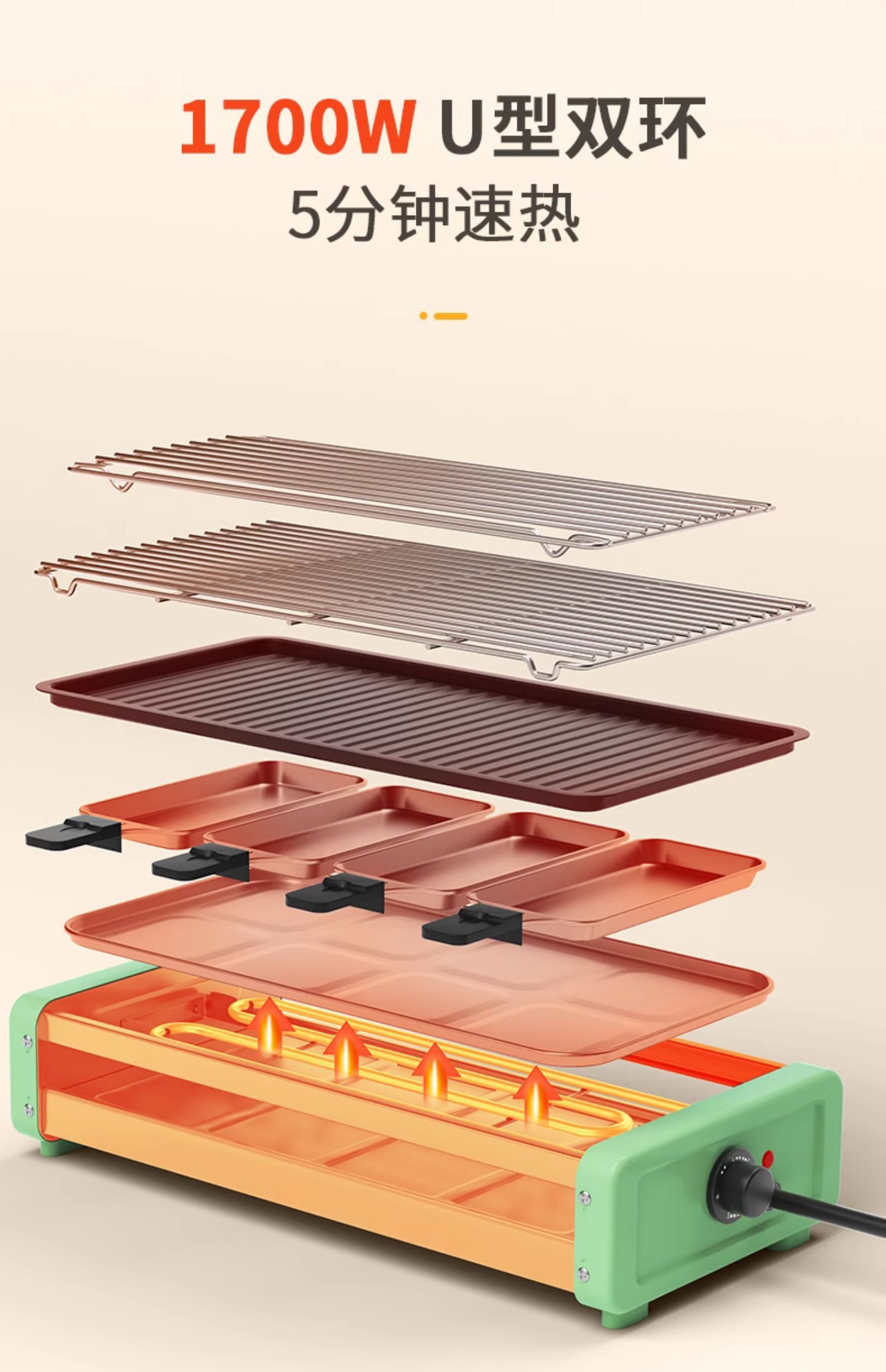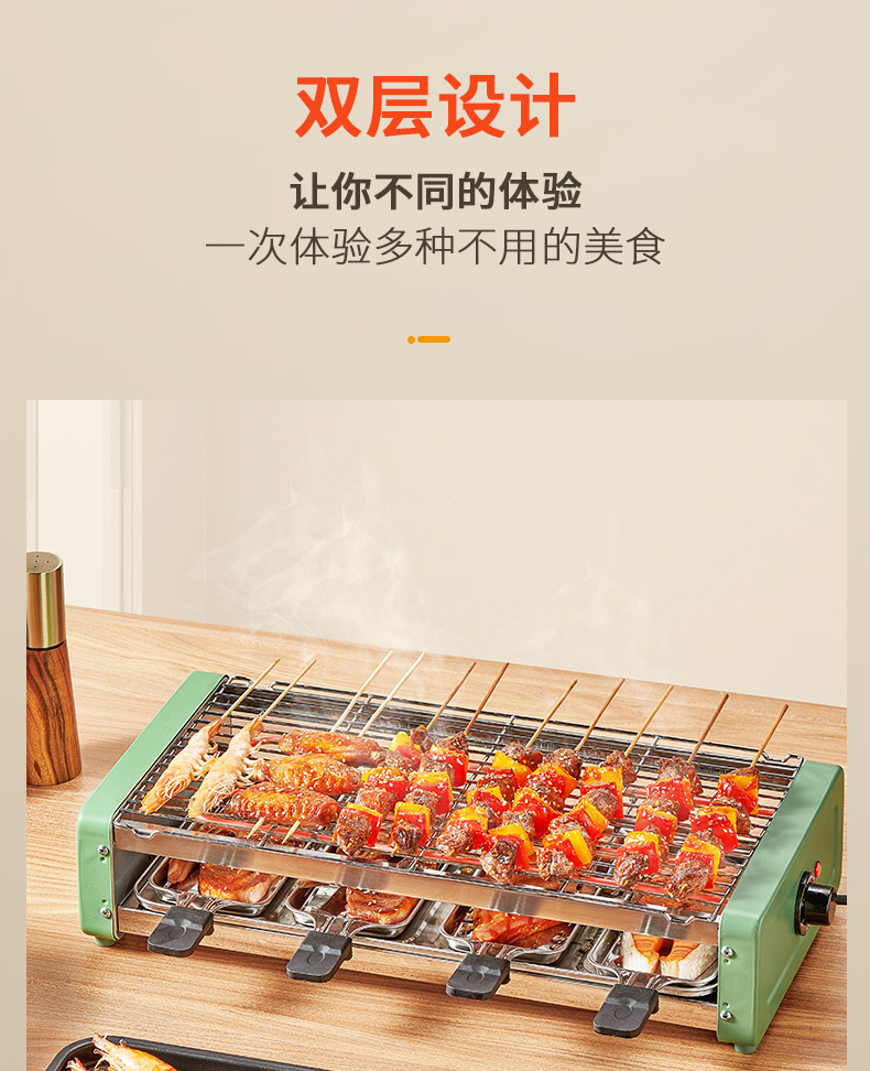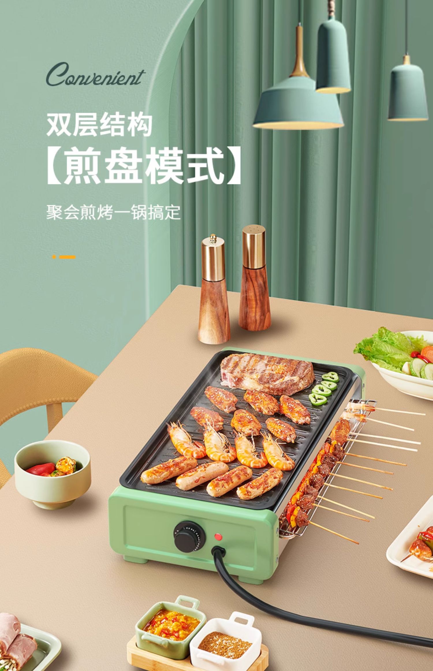 원시 전기 바베큐 그릴 가정용 가벼운 연기 실내 바베큐 그릴 전기 그릴 꼬치 가정용 바베큐 그릴 냄비 더블 레이어스토어 가기