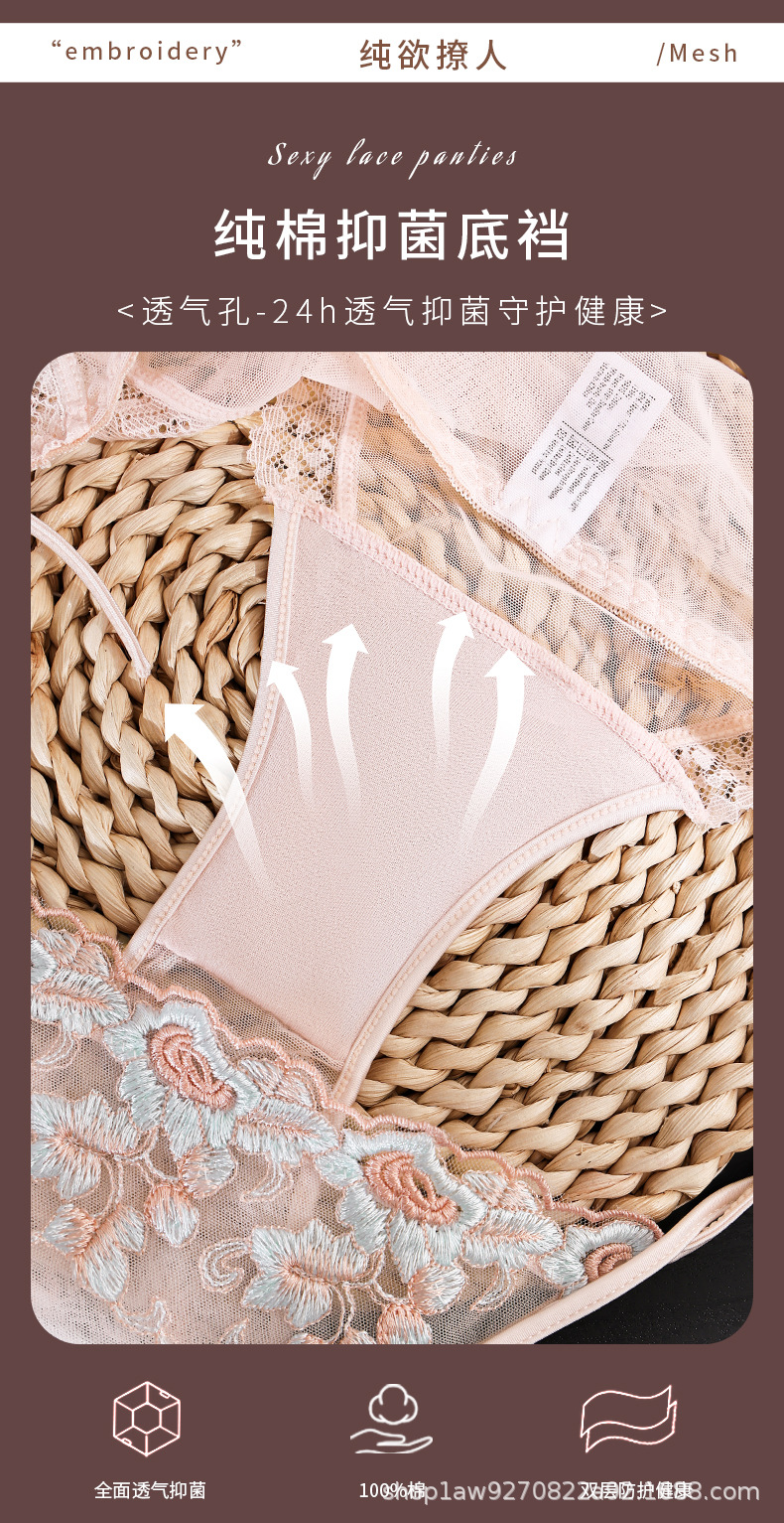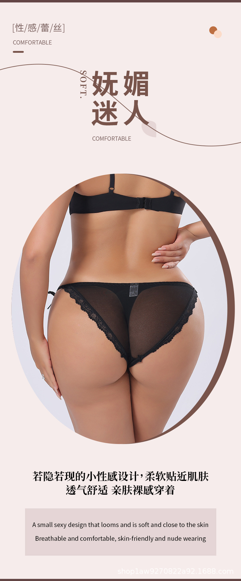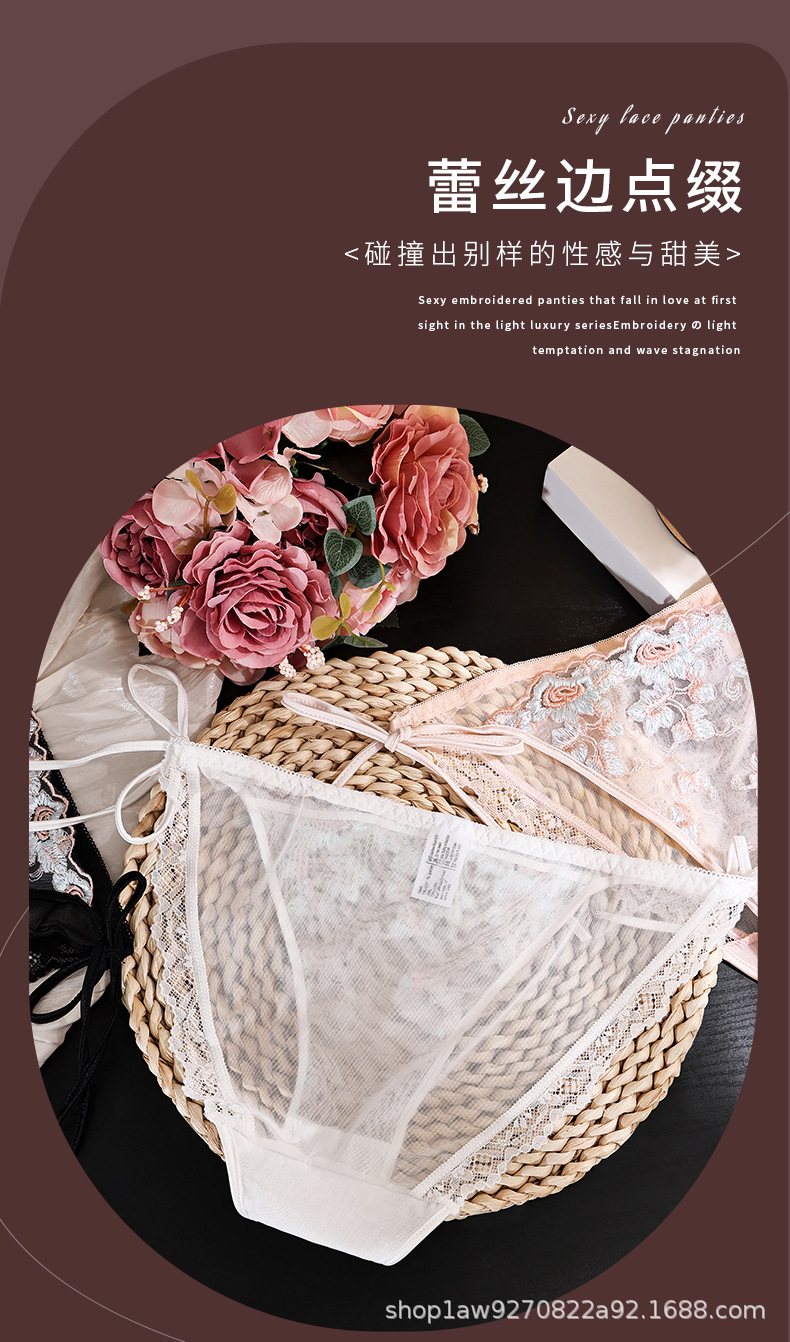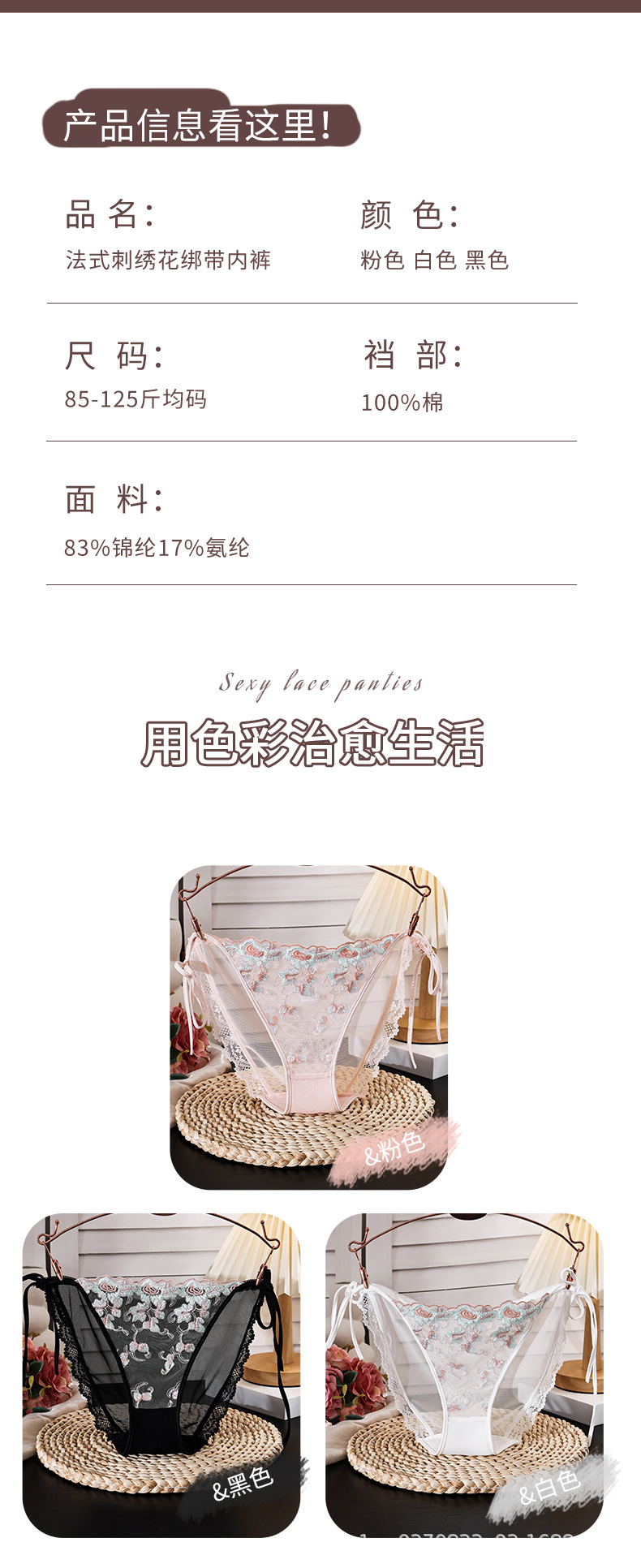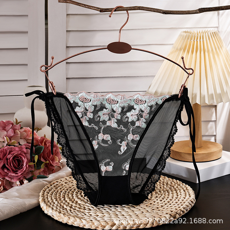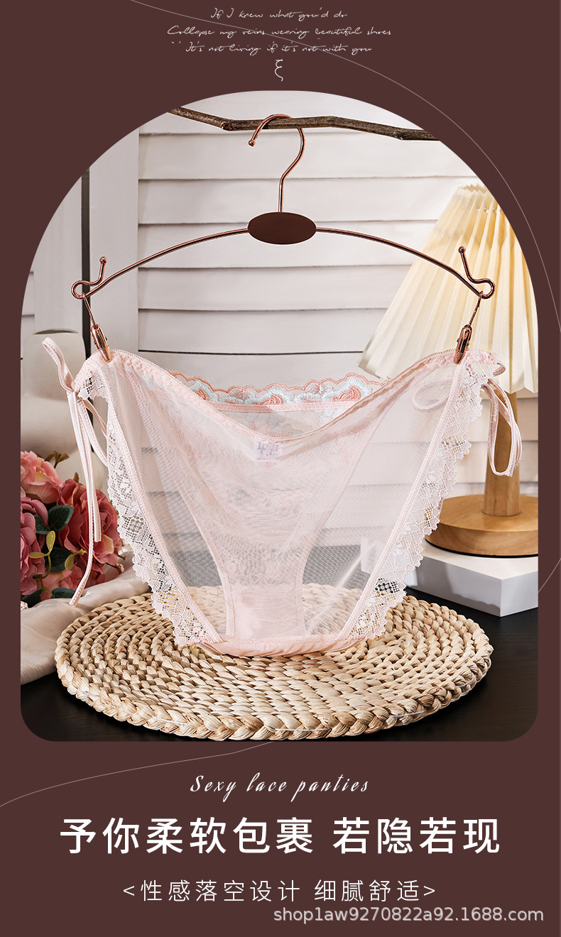 여성용 프렌치 섹시 자수 레이스 팬티, 로우 웨이스트, 하이 슬릿, 타이, 순수한 욕망을 해소할 수 있는 여성용 달콤한 메쉬 팬티