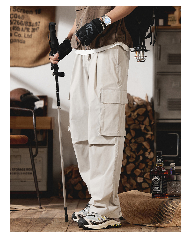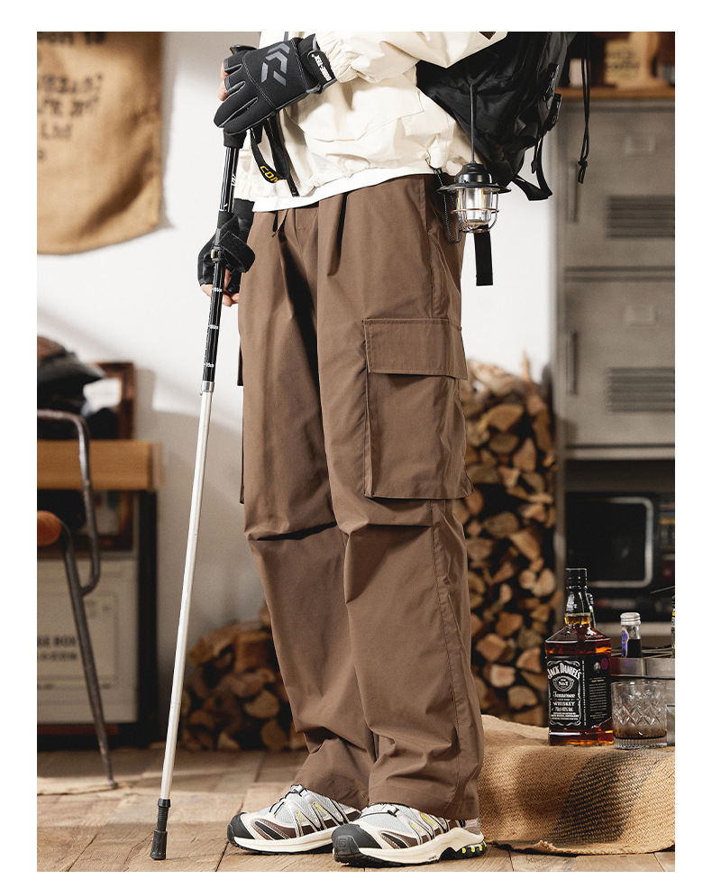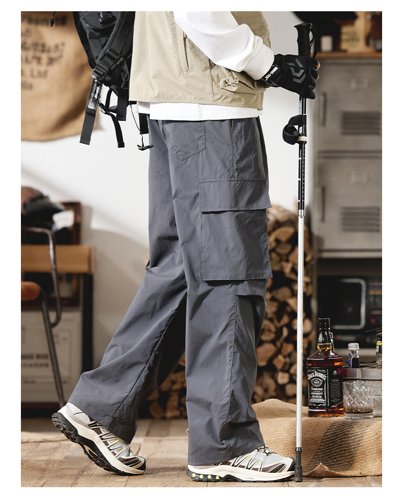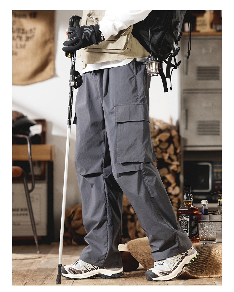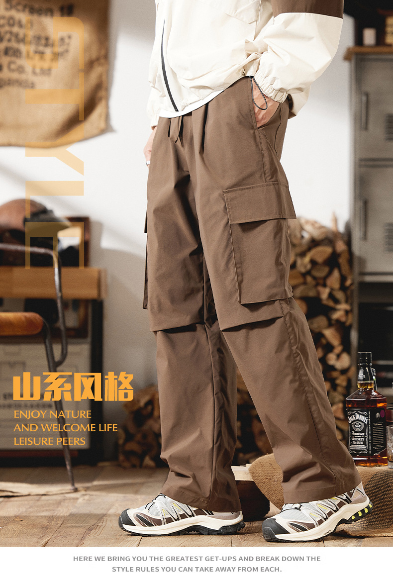 2025 새로운 야외 등산 작업복 남성 봄, 여름 미국 패션 브랜드 캐주얼 루즈 스트레이트 파라글라이더 충전 바지스토어 가기