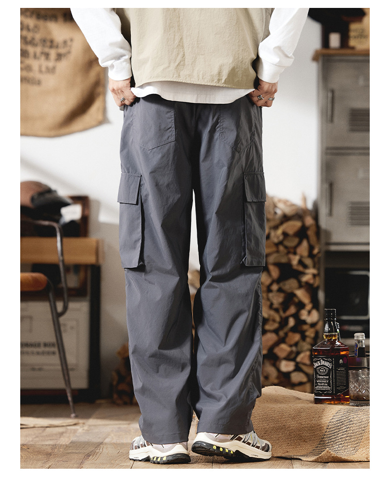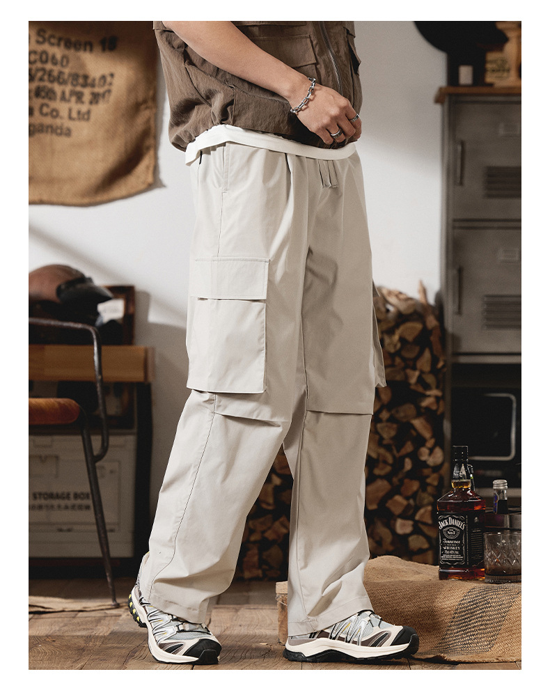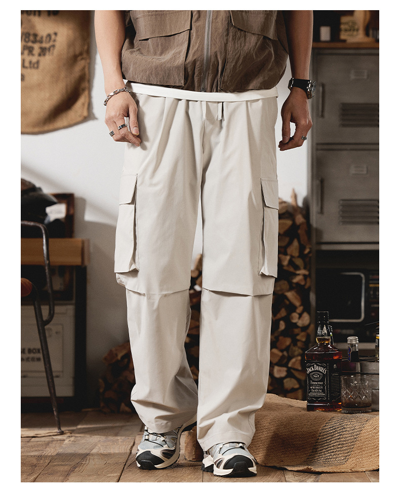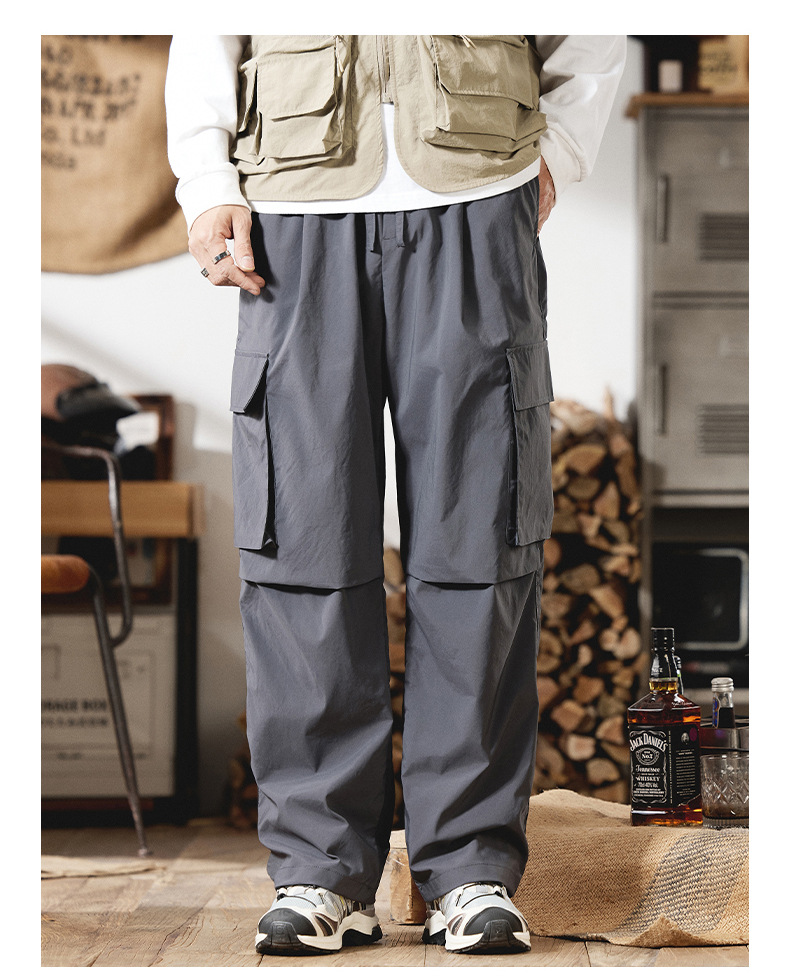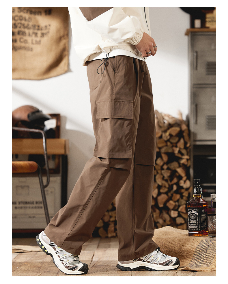2025 새로운 야외 등산 작업복 남성 봄, 여름 미국 패션 브랜드 캐주얼 루즈 스트레이트 파라글라이더 충전 바지스토어 가기