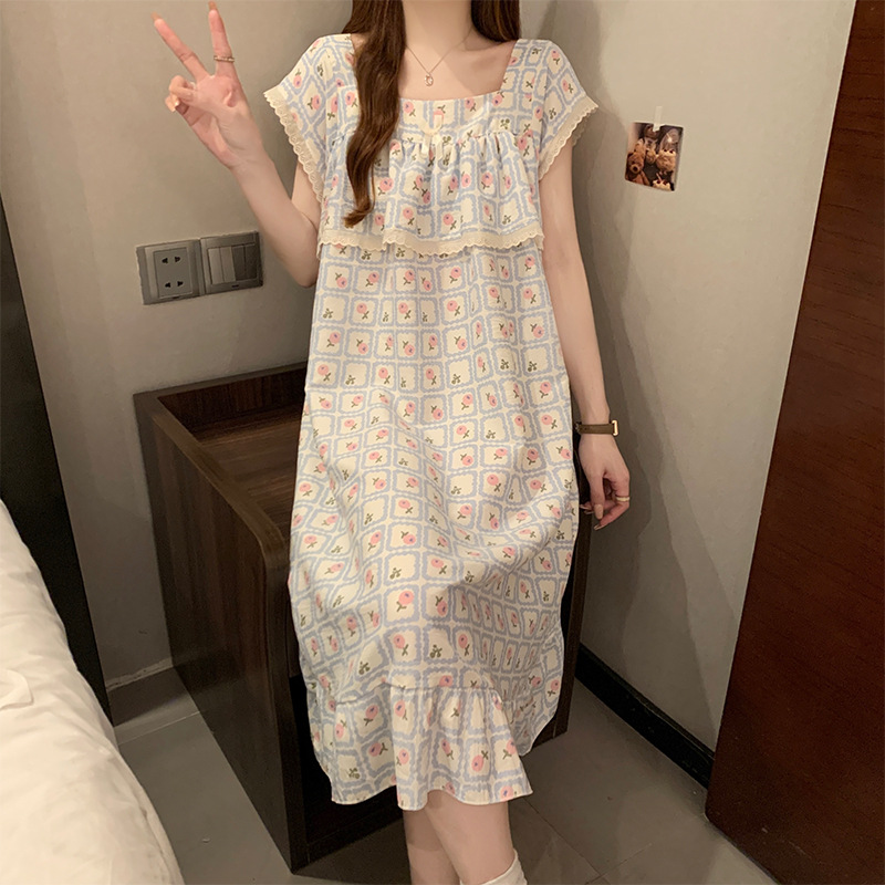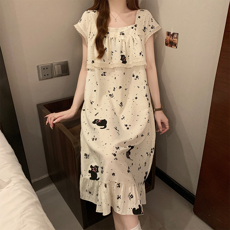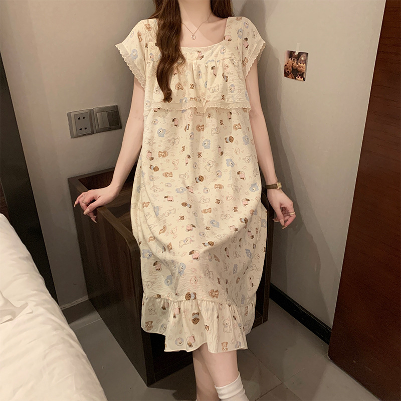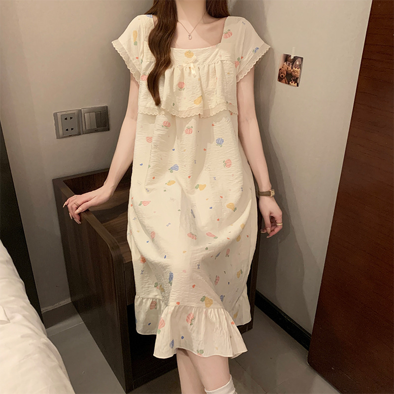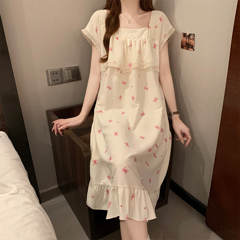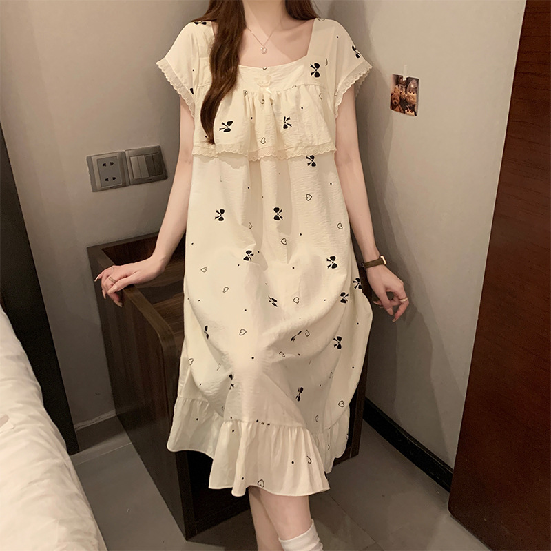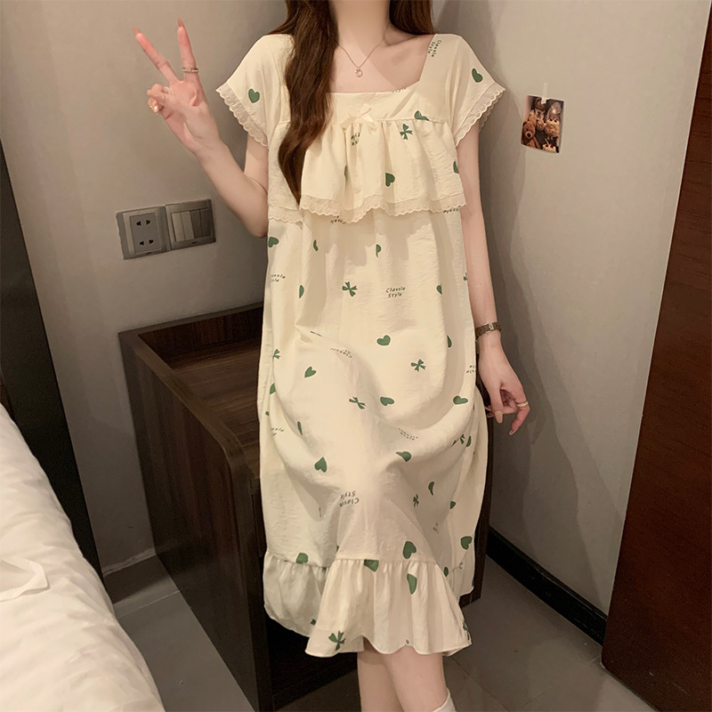 여성을위한 도매 국경 간 작은 신선한 사랑 반팔 잠옷 여름 중간 길이 달콤한 스타일 소녀 잠옷 홈웨어