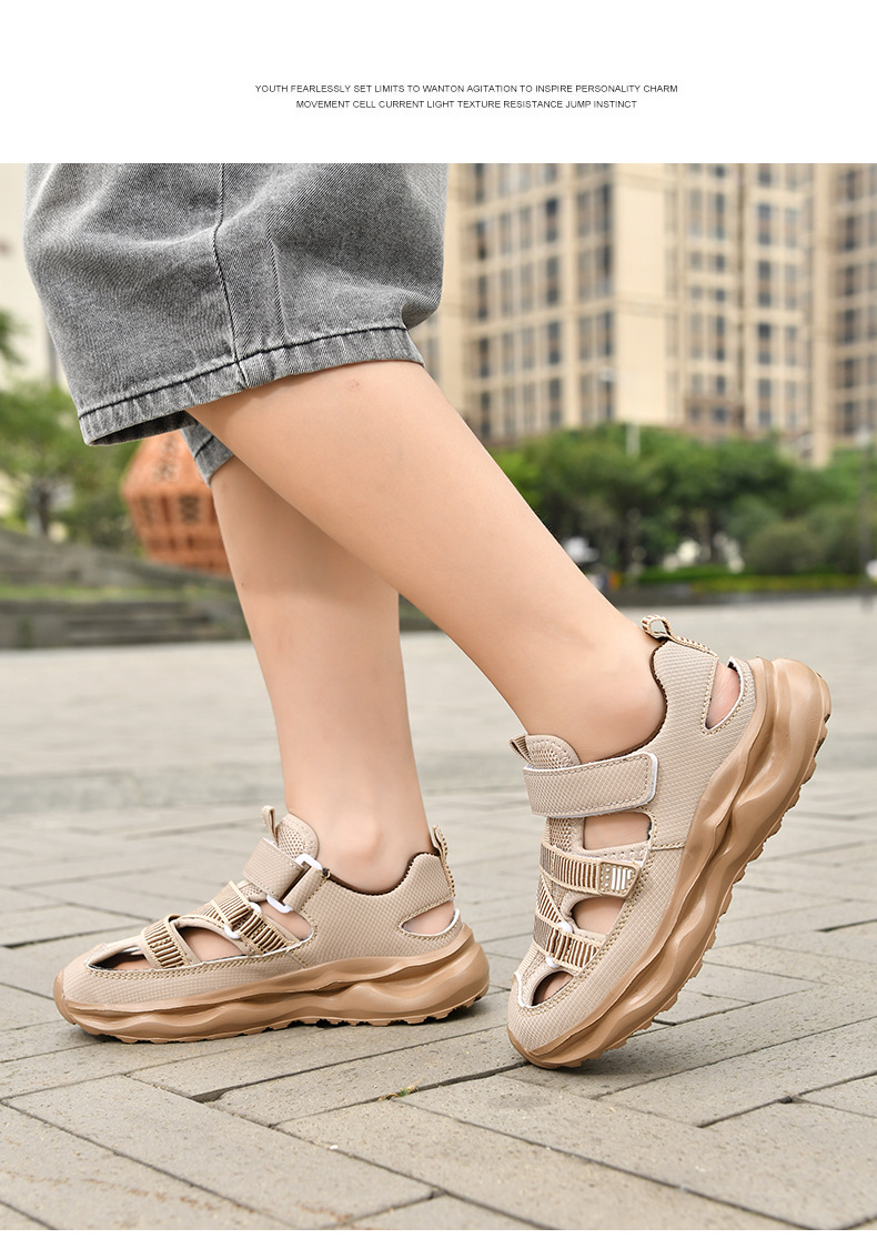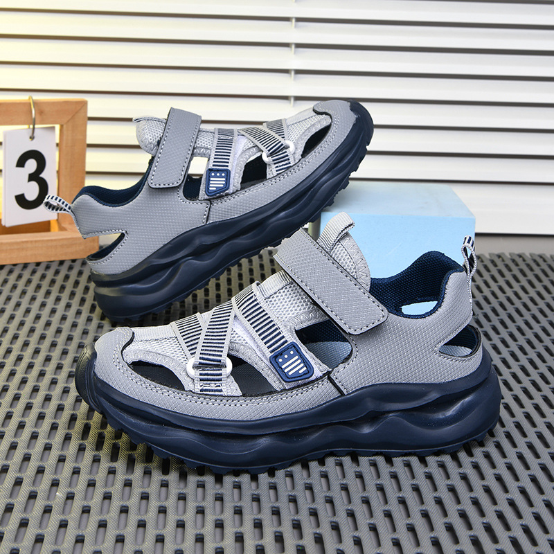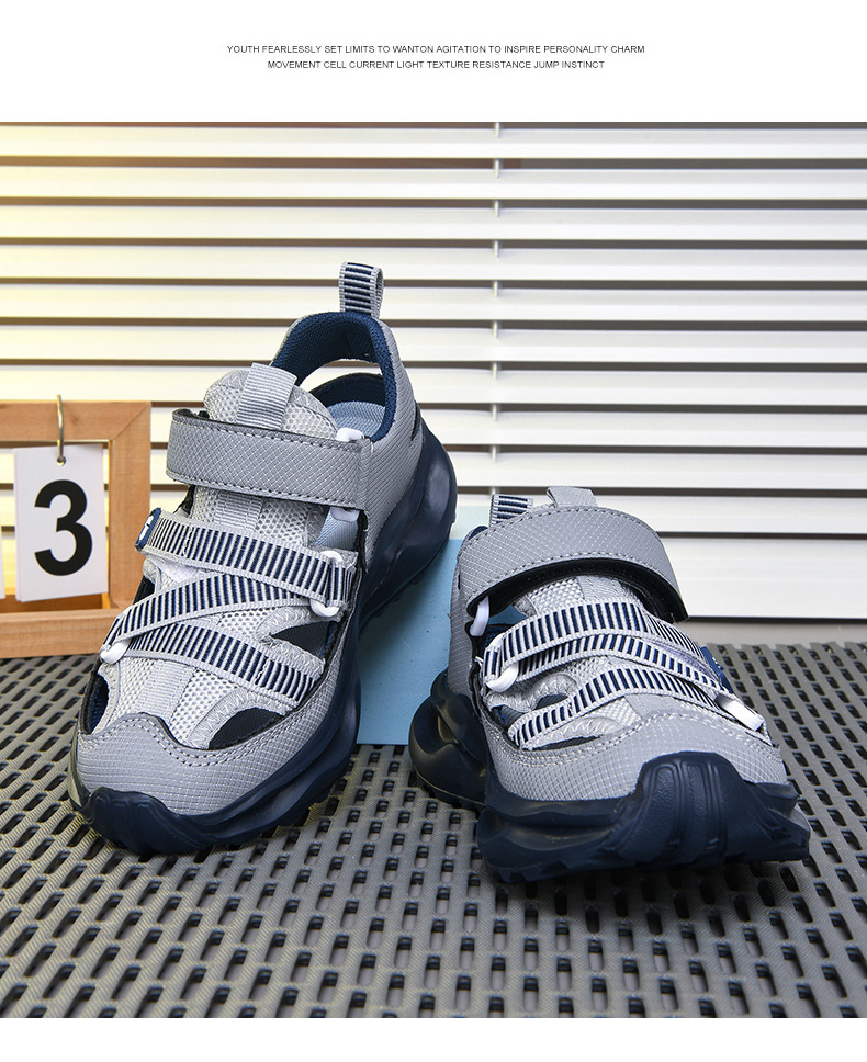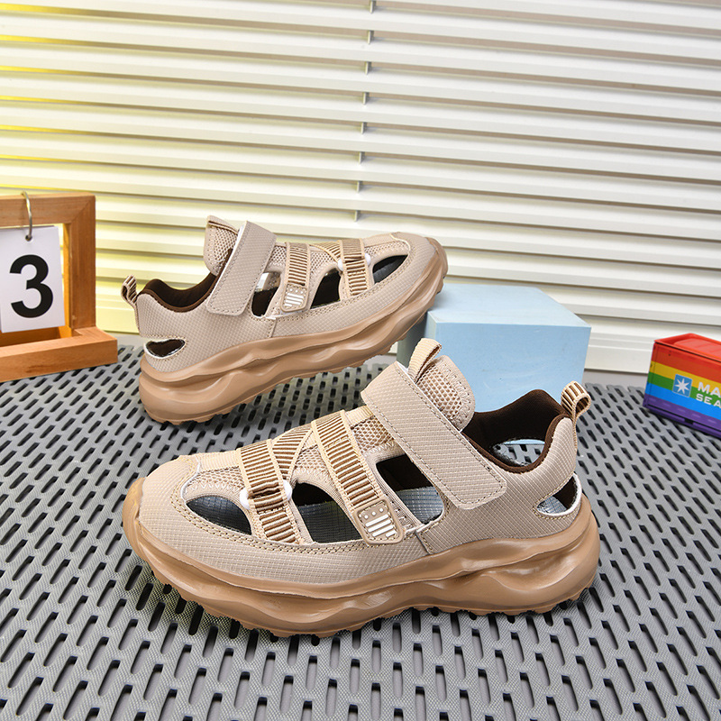 인기있는 소년 신발 여름 새로운 통기성 발가락 샌들 어린이 해변 신발 초등학교 소년 프레임 신발 유행