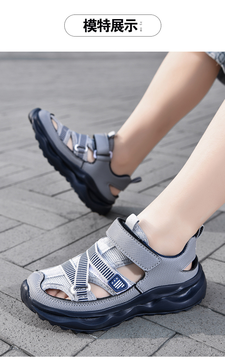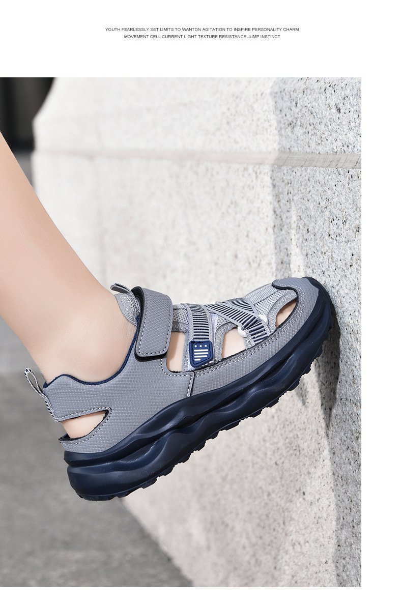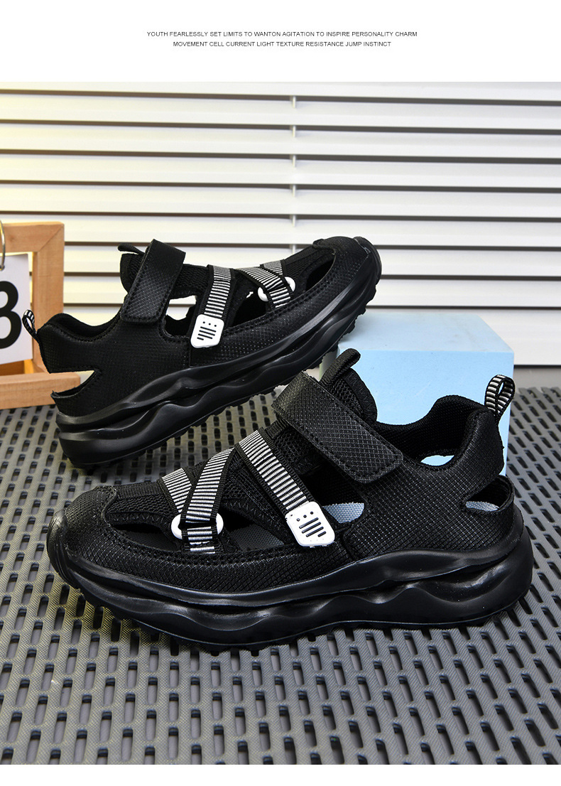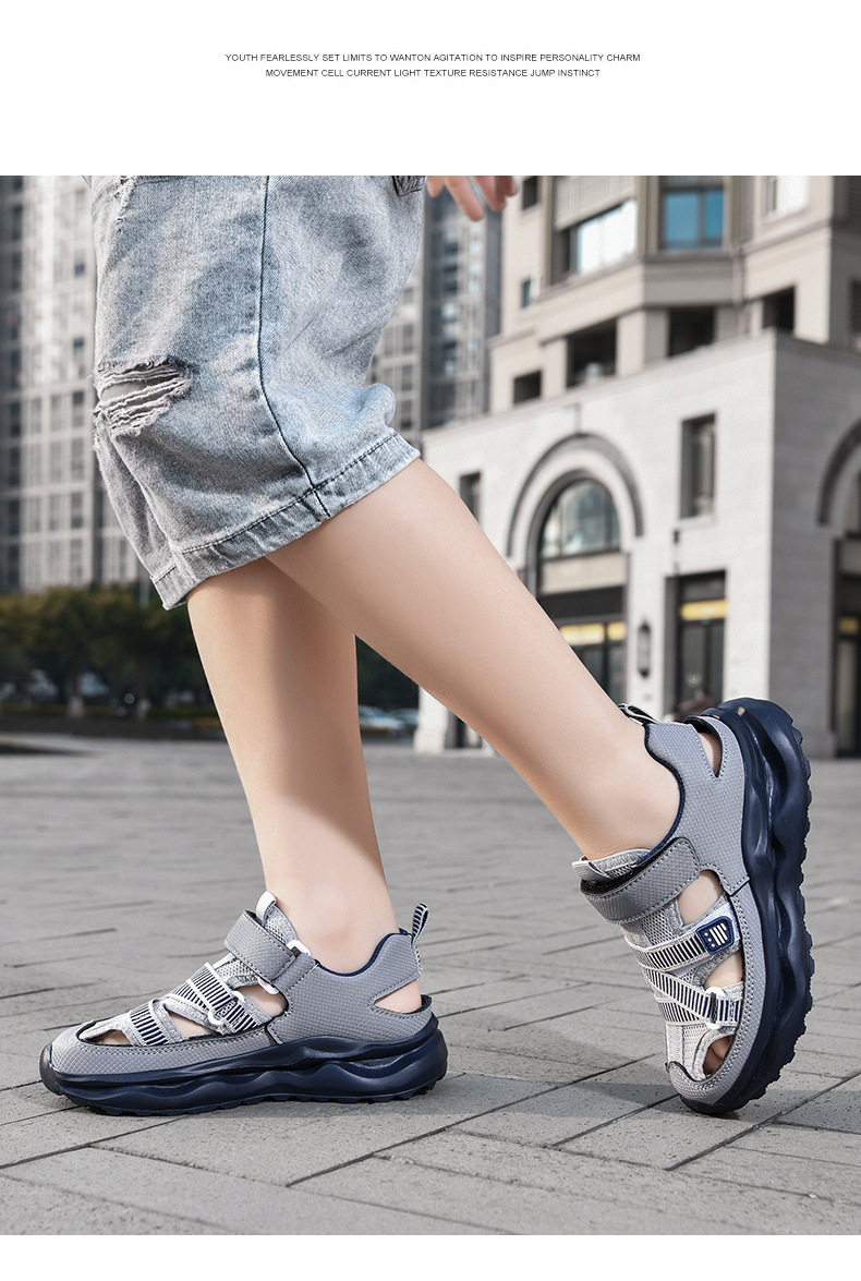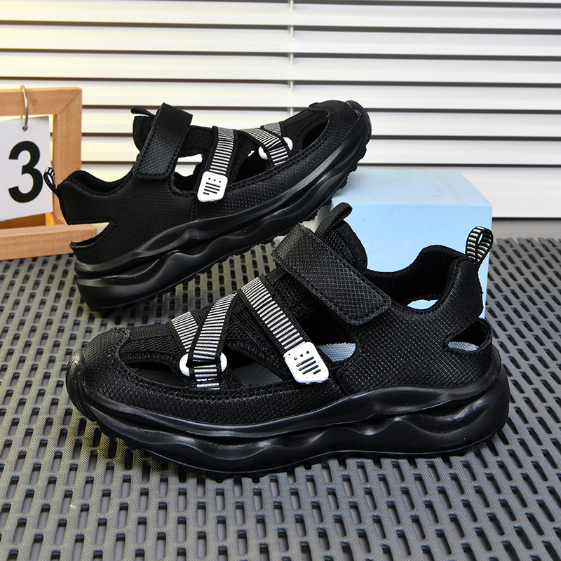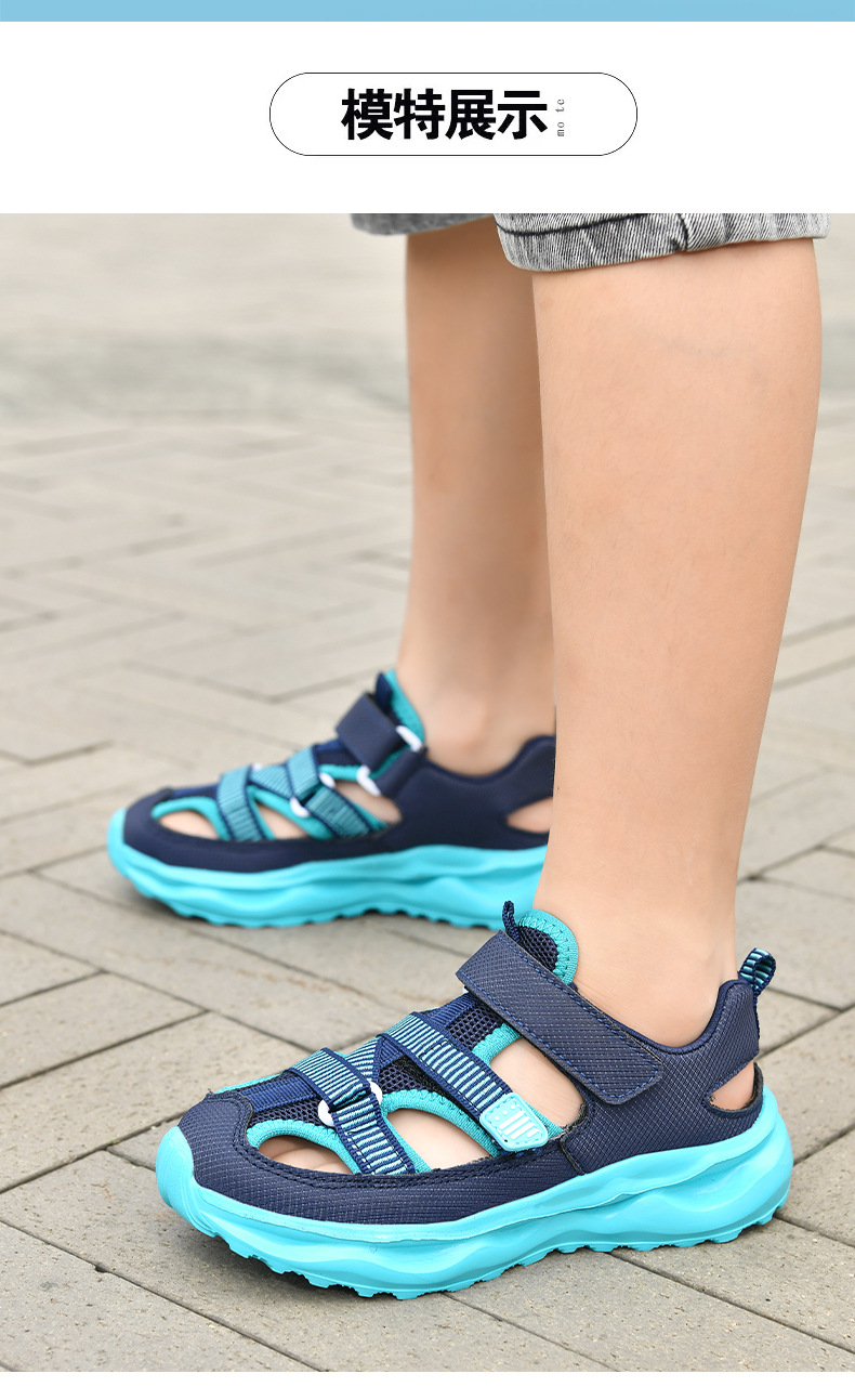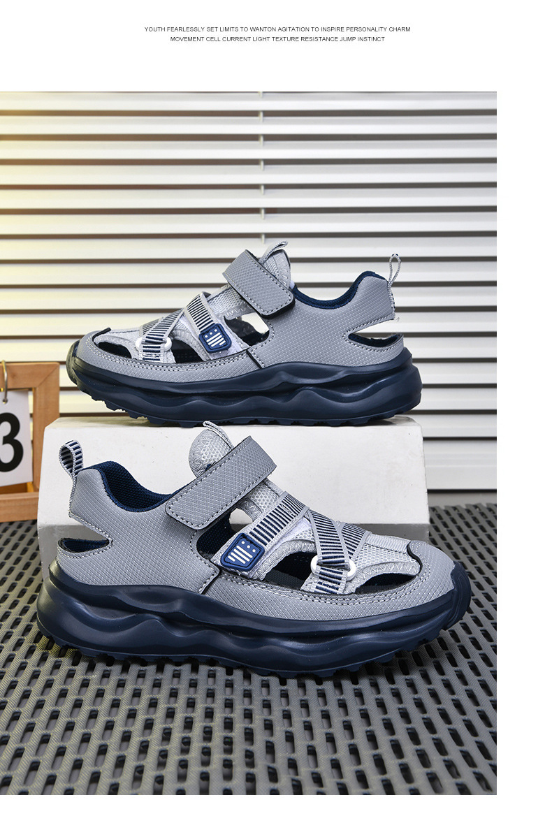 인기있는 소년 신발 여름 새로운 통기성 발가락 샌들 어린이 해변 신발 초등학교 소년 프레임 신발 유행스토어 가기