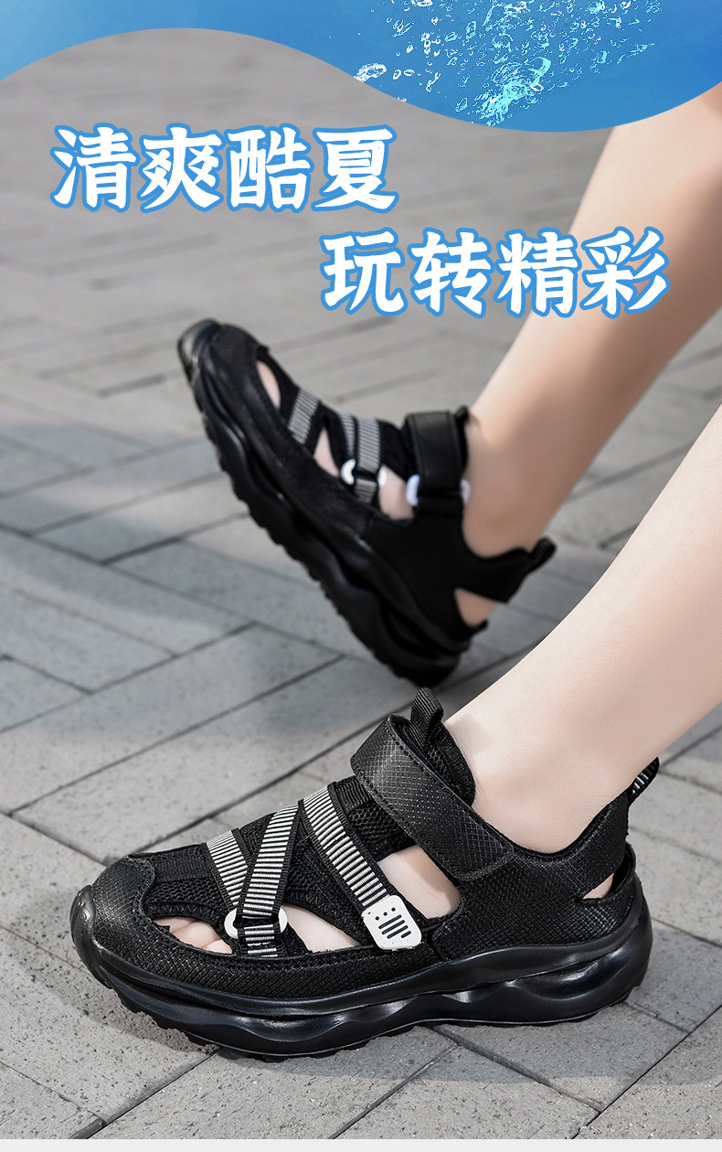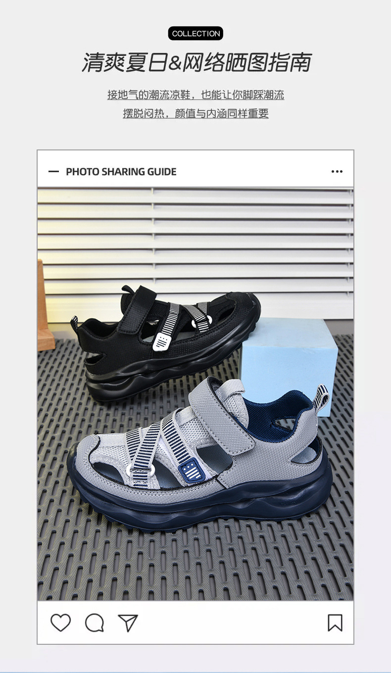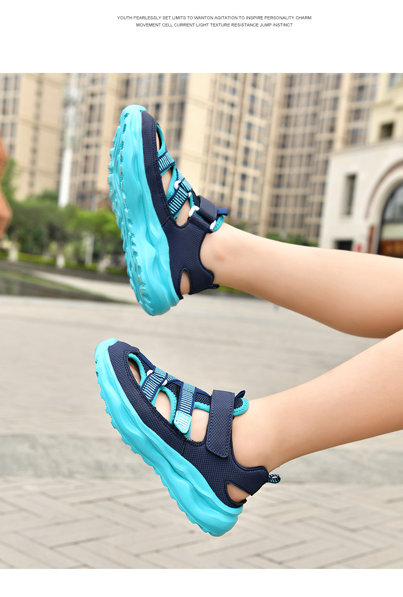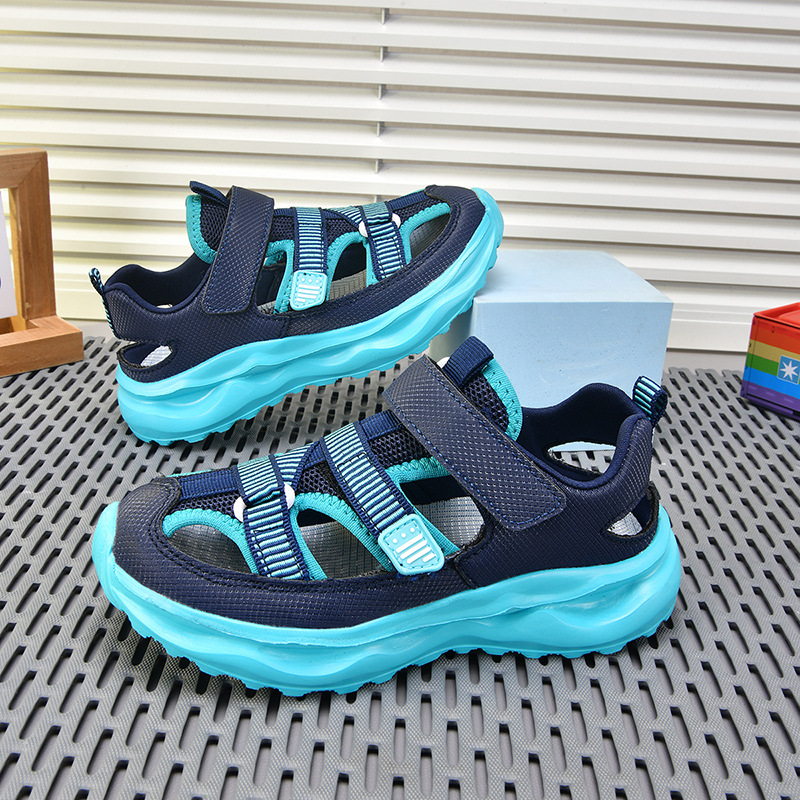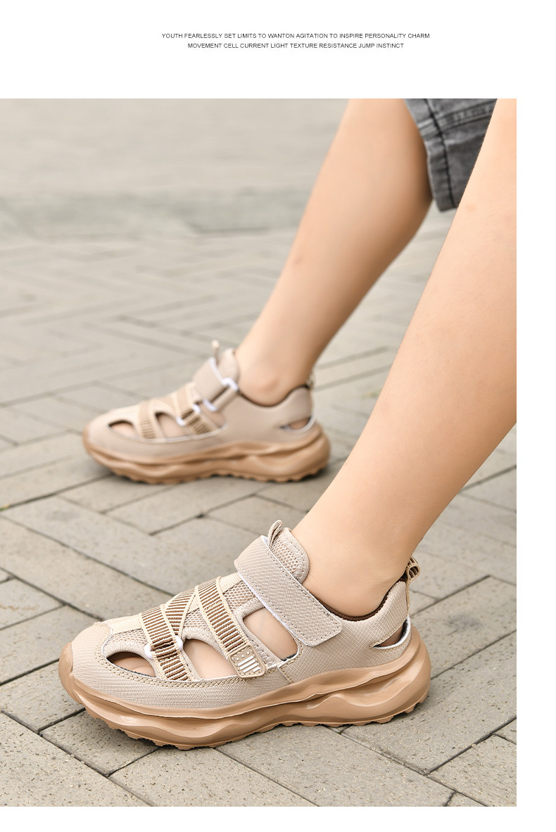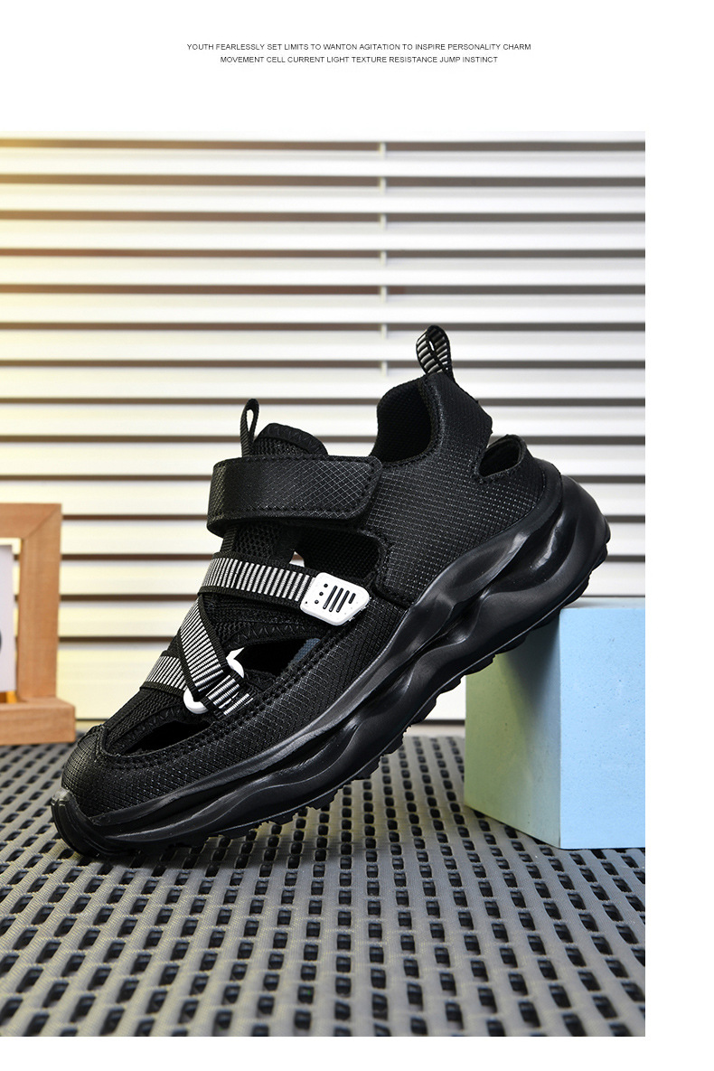 인기있는 소년 신발 여름 새로운 통기성 발가락 샌들 어린이 해변 신발 초등학교 소년 프레임 신발 유행스토어 가기