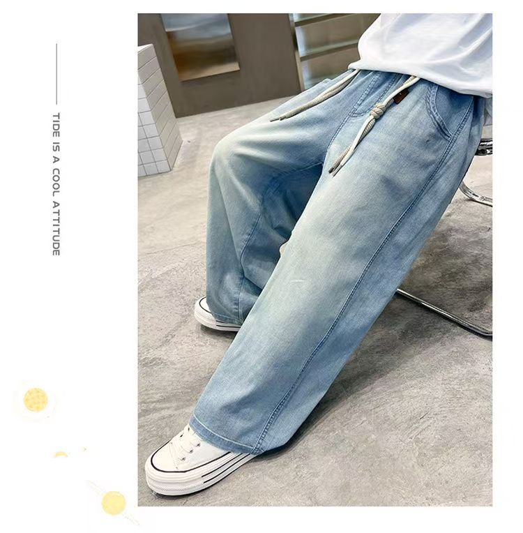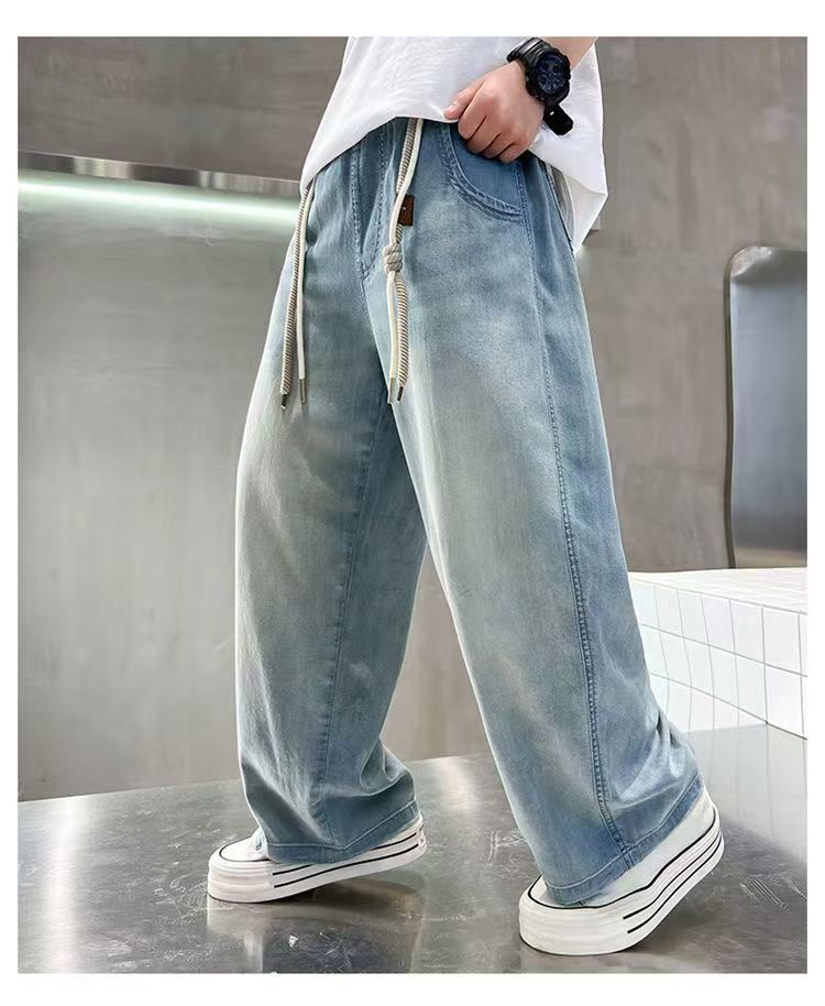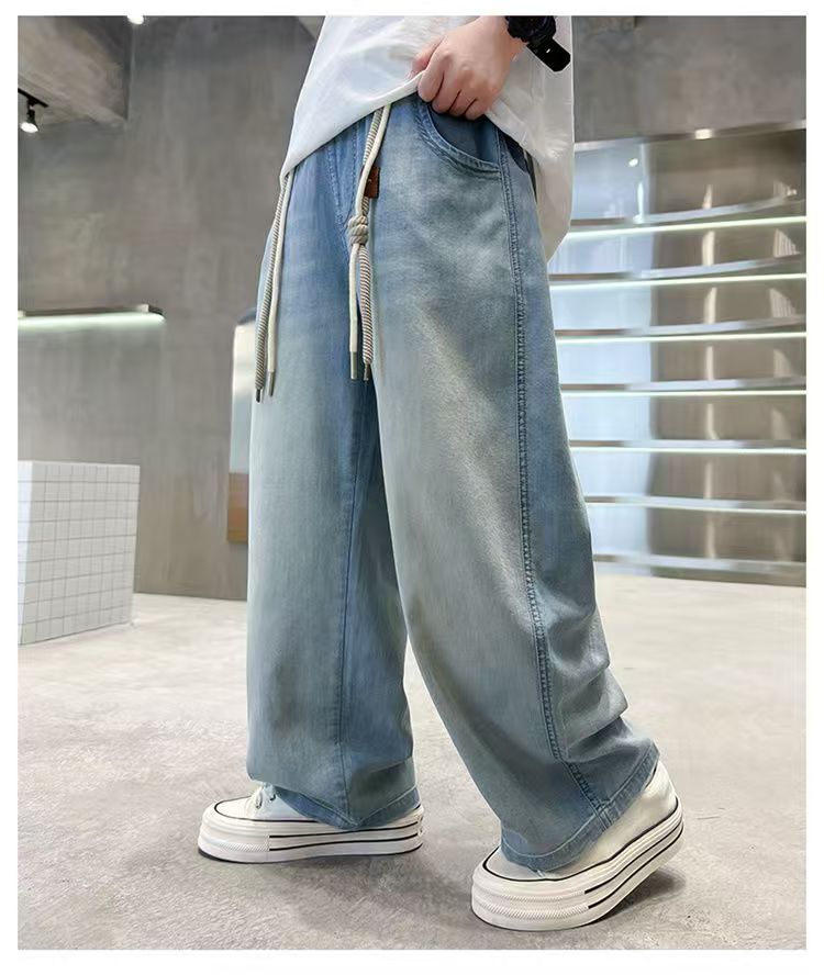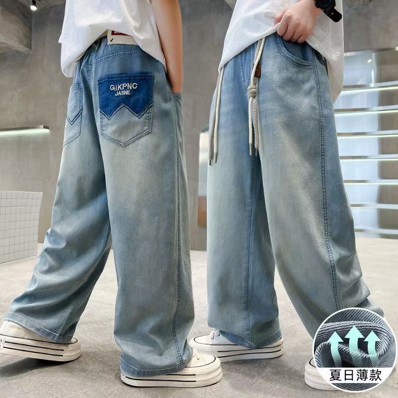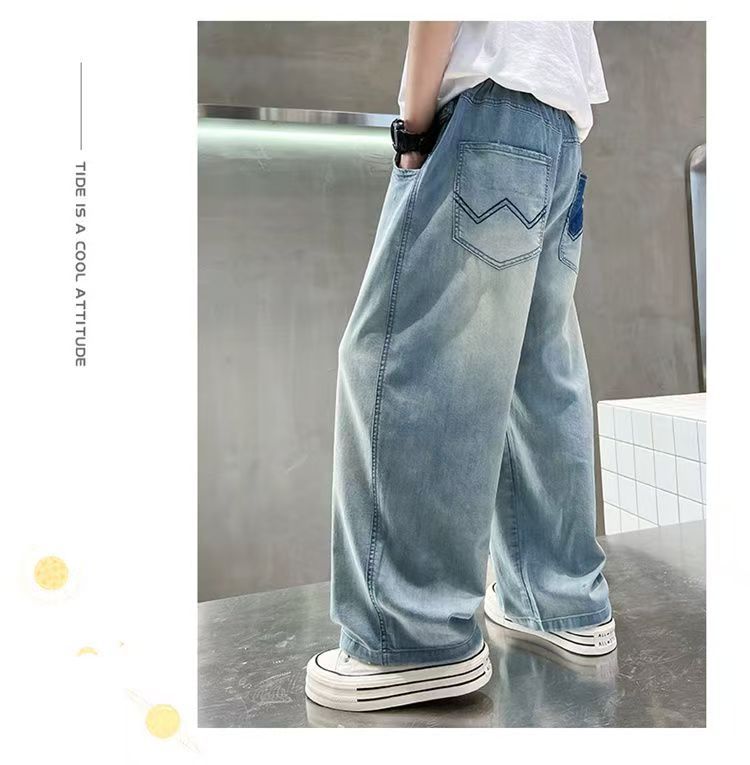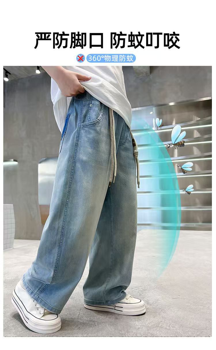 소년의 여름 얇은 청바지 2025 새로운 어린이 느슨한 텐셀 안티 모기 바지 큰 소년 바지스토어 가기