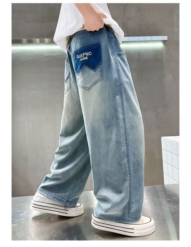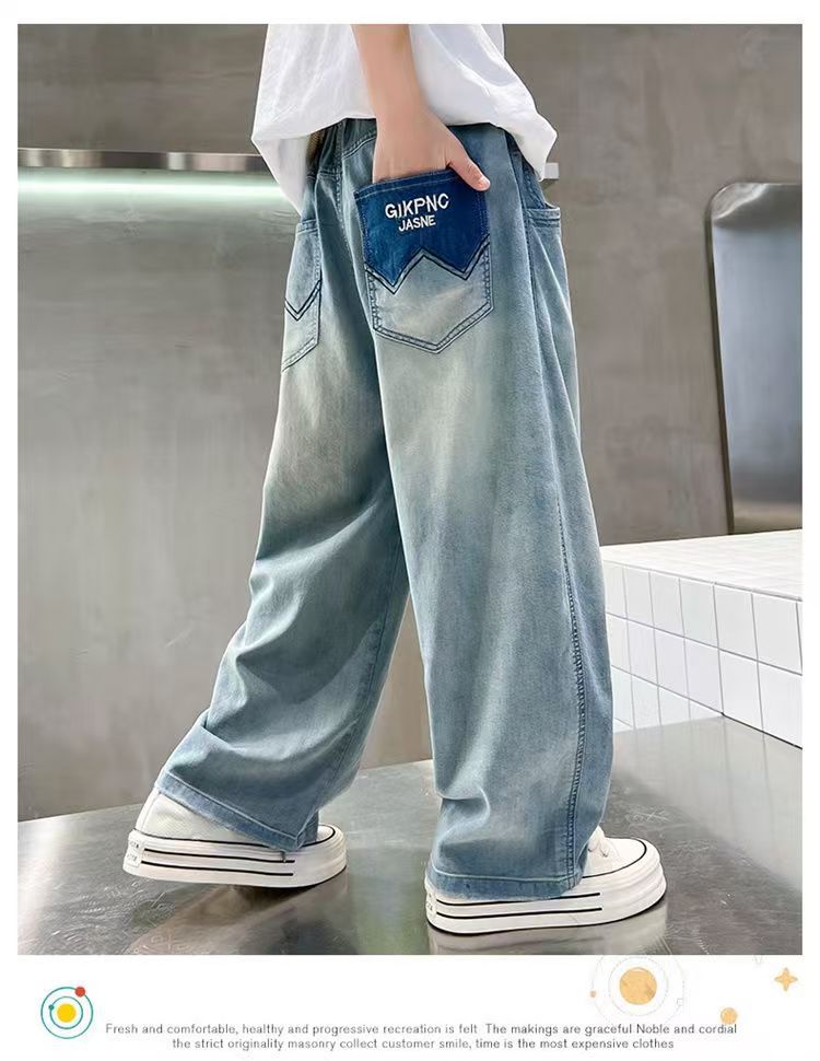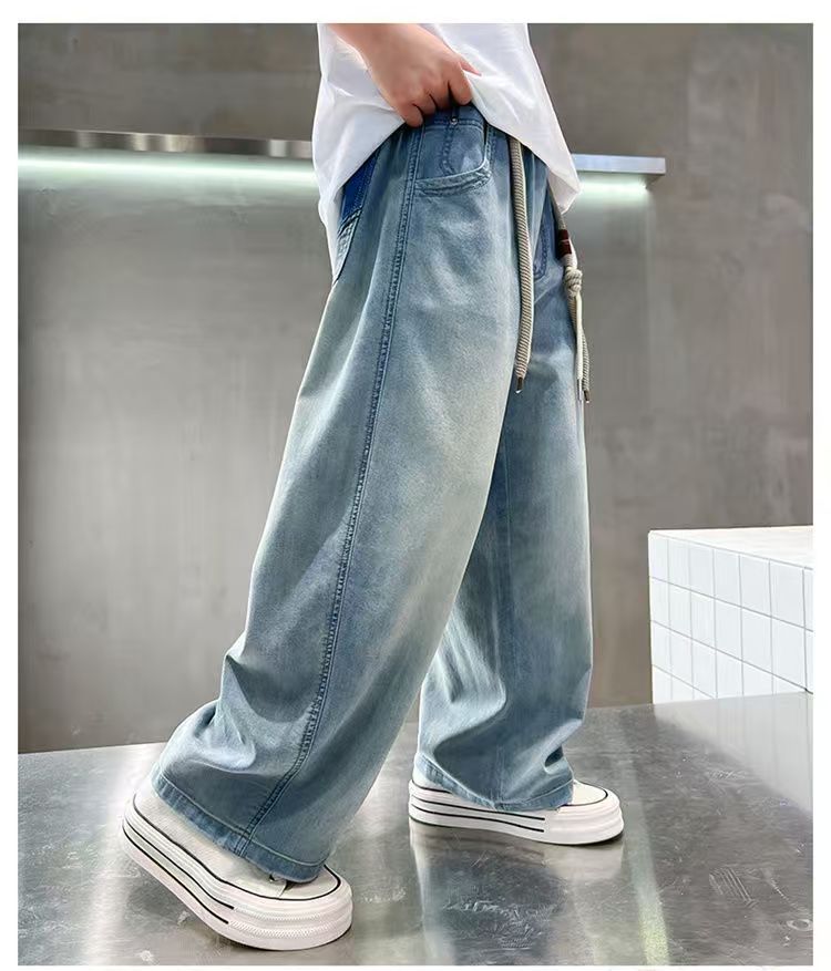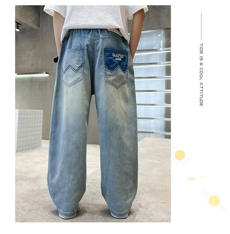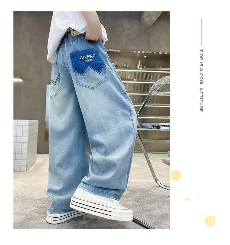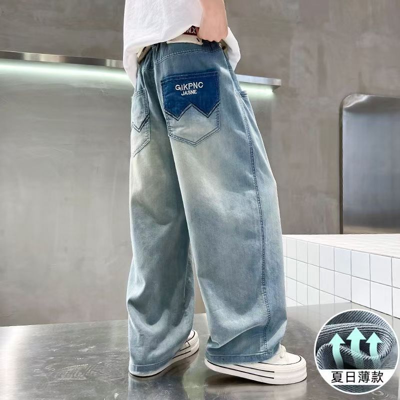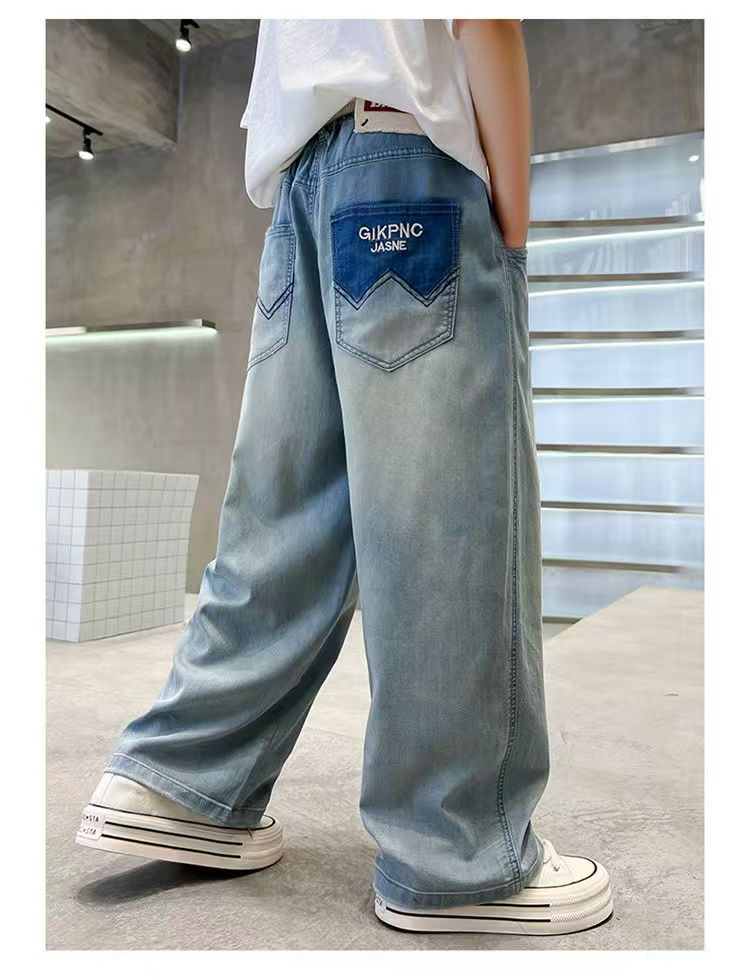 소년의 여름 얇은 청바지 2025 새로운 어린이 느슨한 텐셀 안티 모기 바지 큰 소년 바지스토어 가기