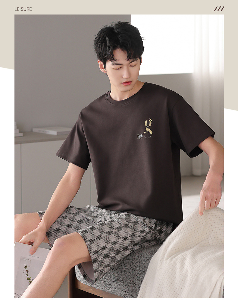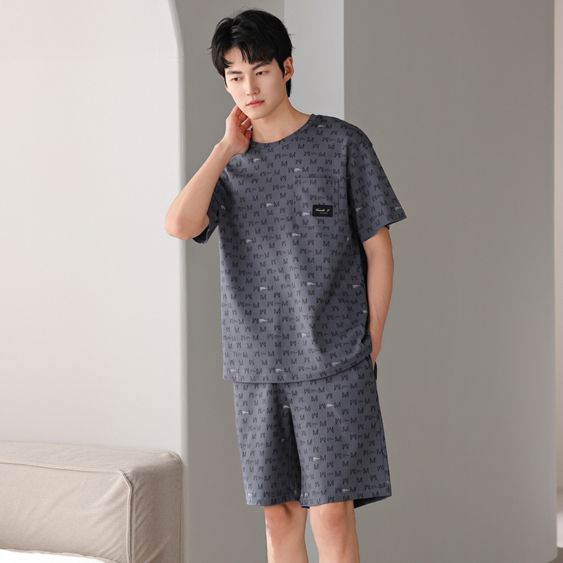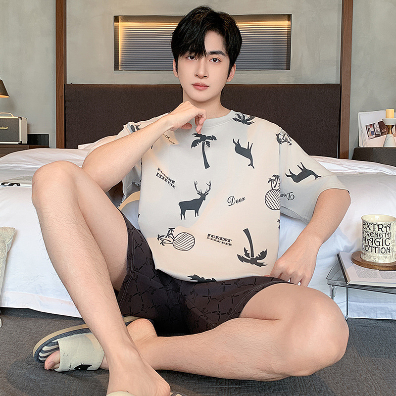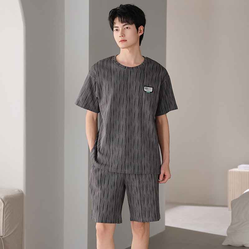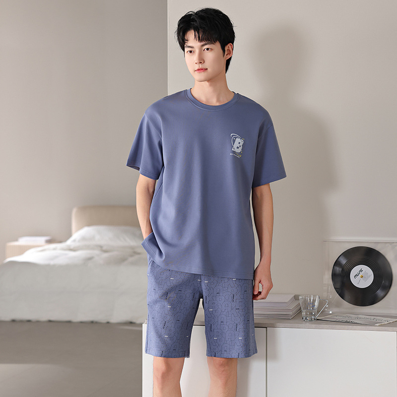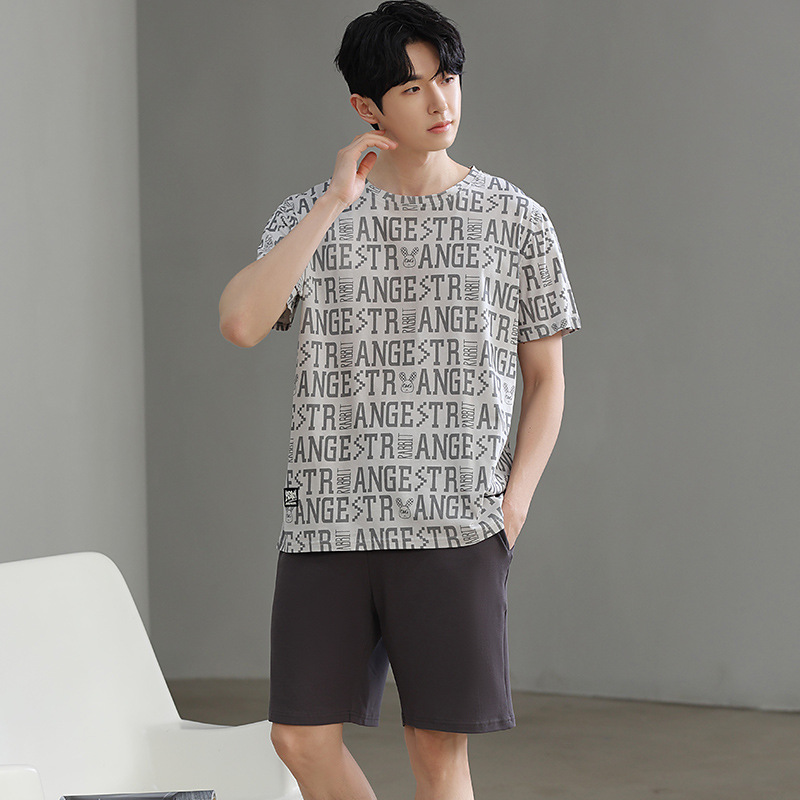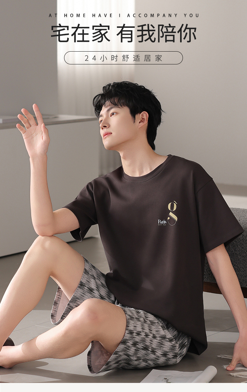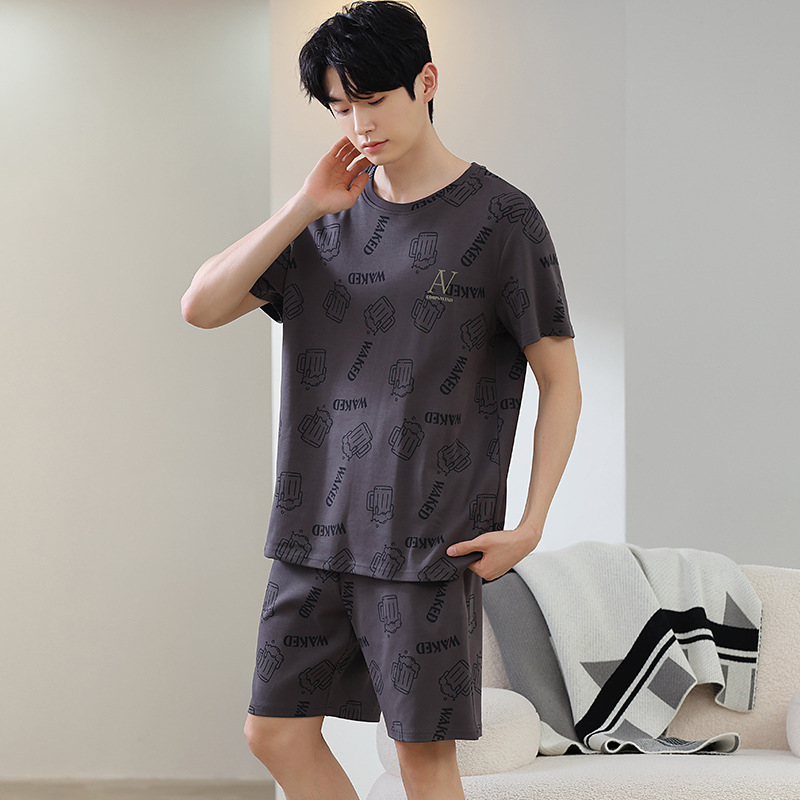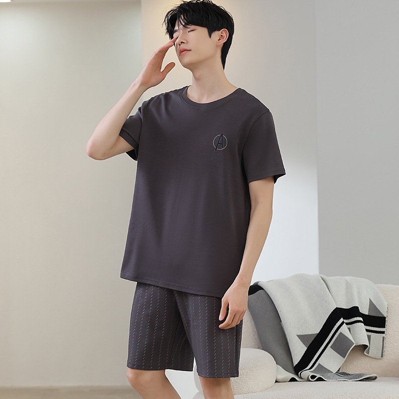 한국식 고급 순면 남성용 여름 잠옷, 라운드넥 반팔 반바지, 루즈핏, 큰 사이즈, 외출복으로도 활용 가능, 청소년 홈웨어스토어 가기