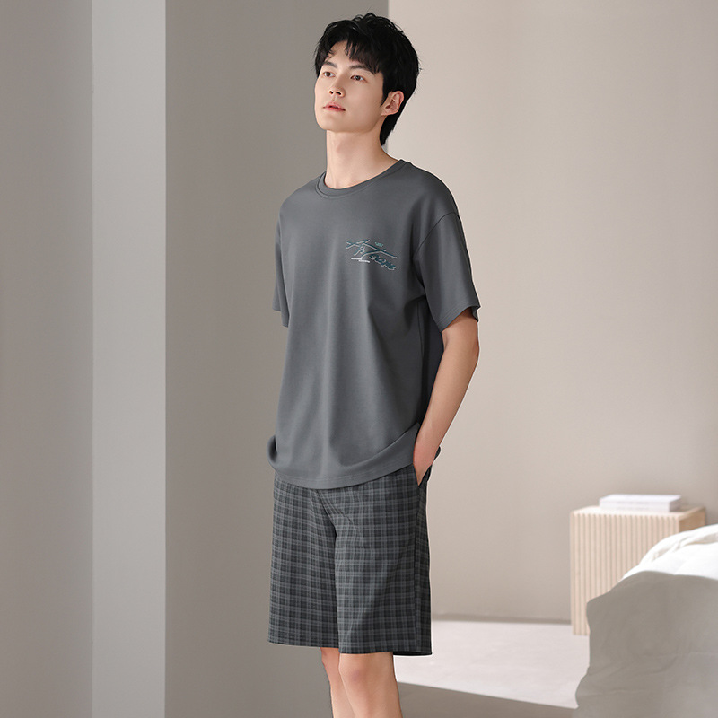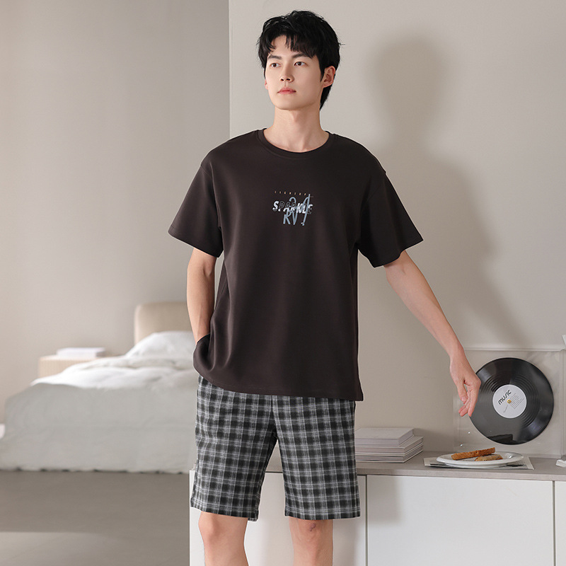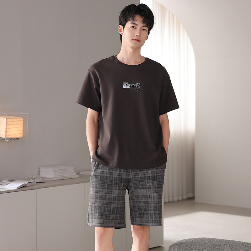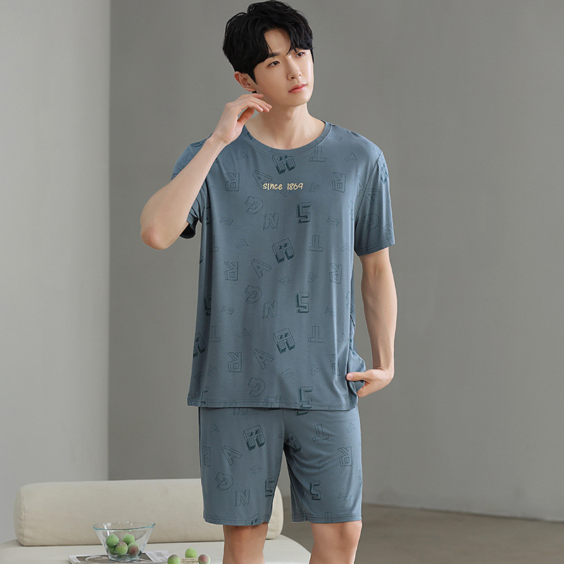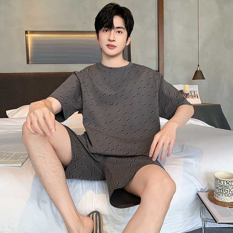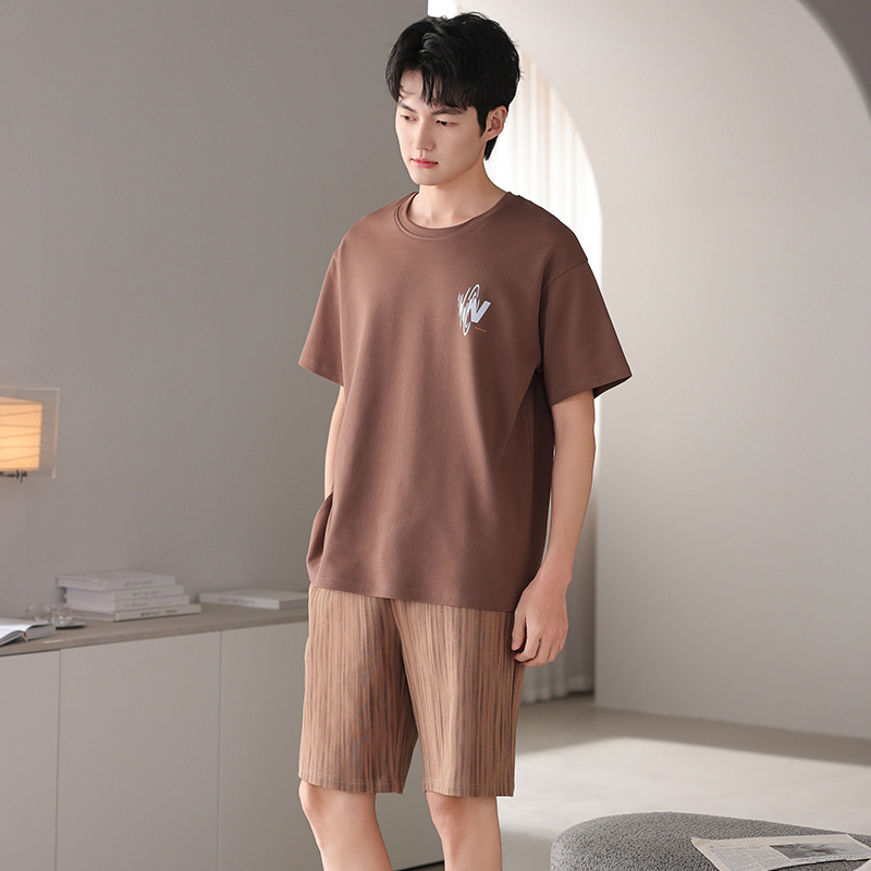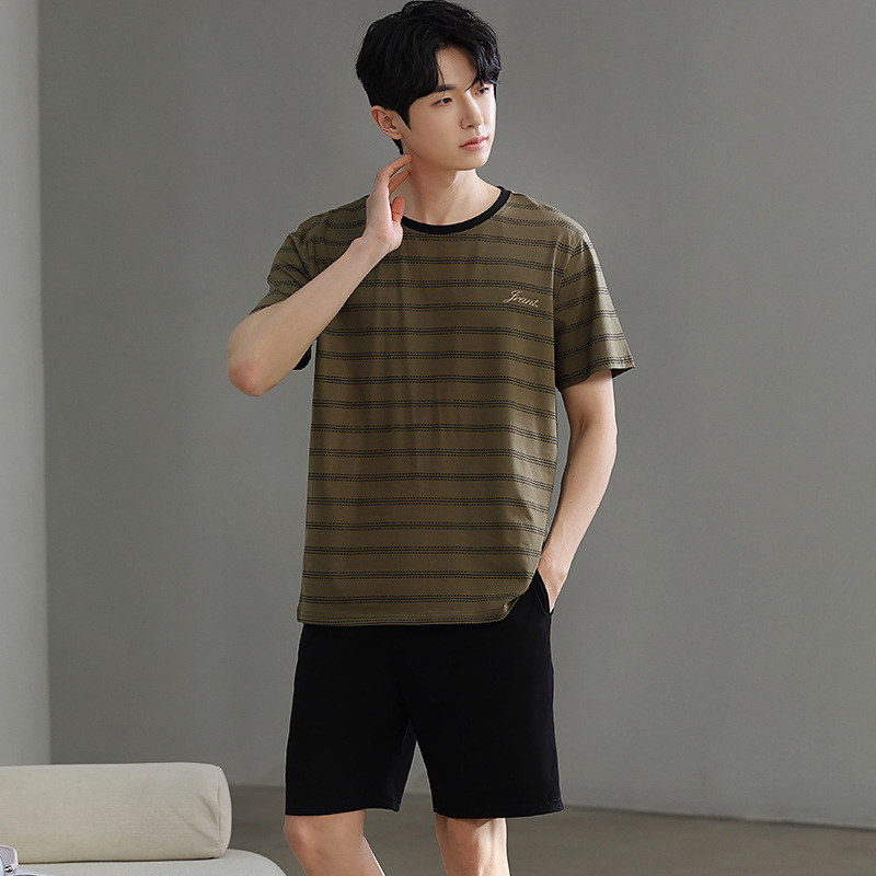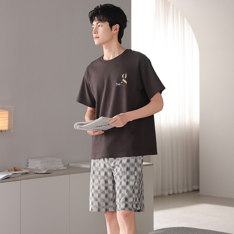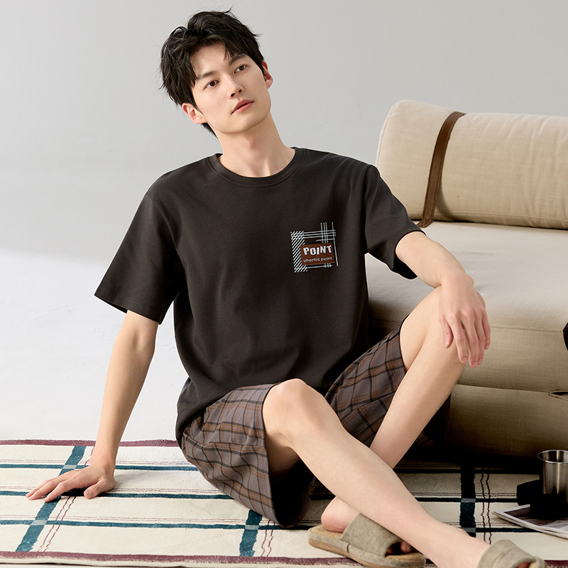 한국식 고급 순면 남성용 여름 잠옷, 라운드넥 반팔 반바지, 루즈핏, 큰 사이즈, 외출복으로도 활용 가능, 청소년 홈웨어스토어 가기