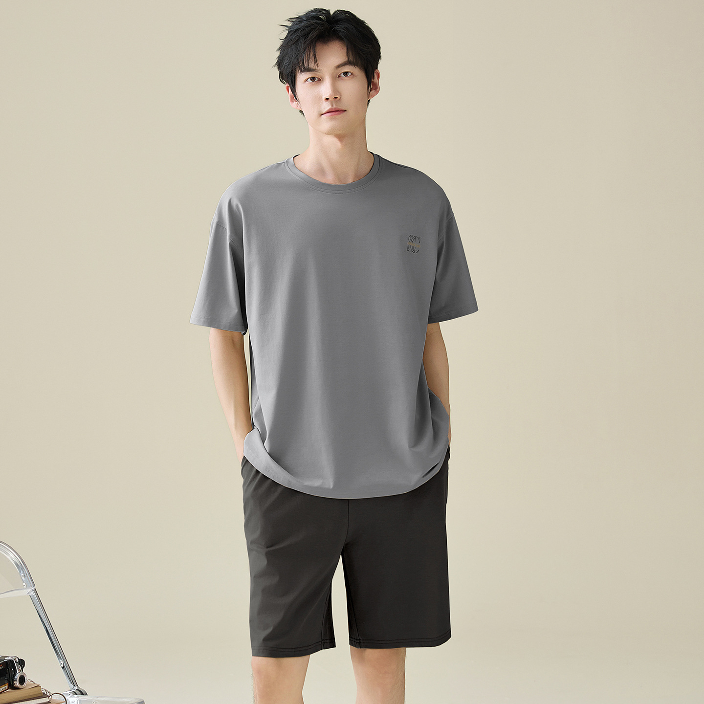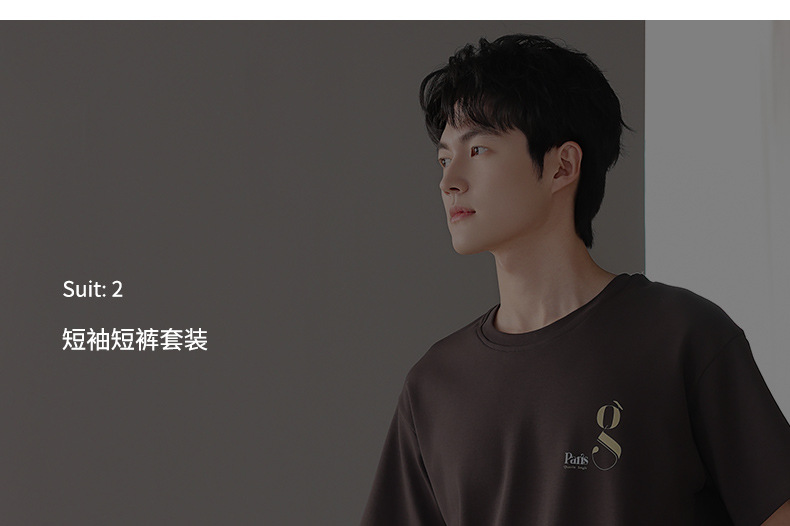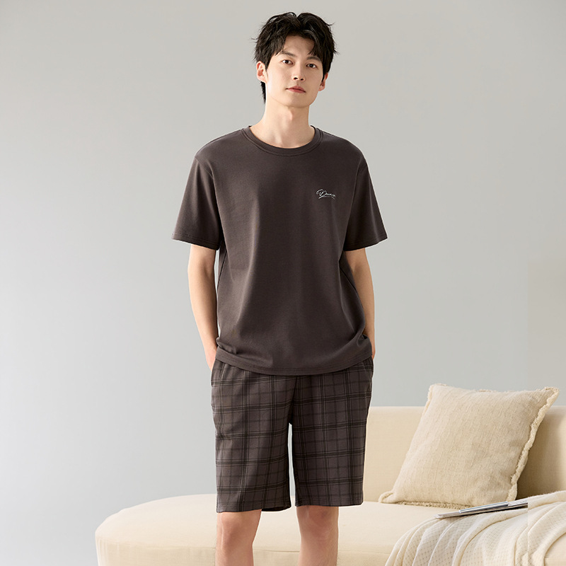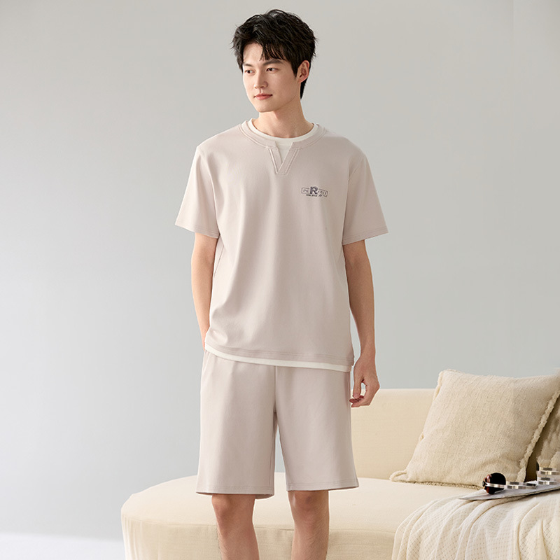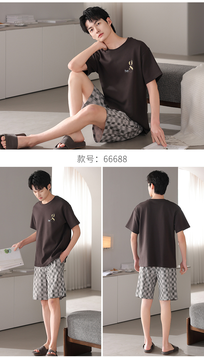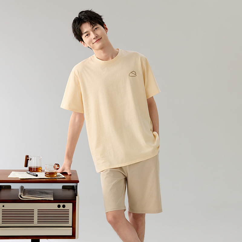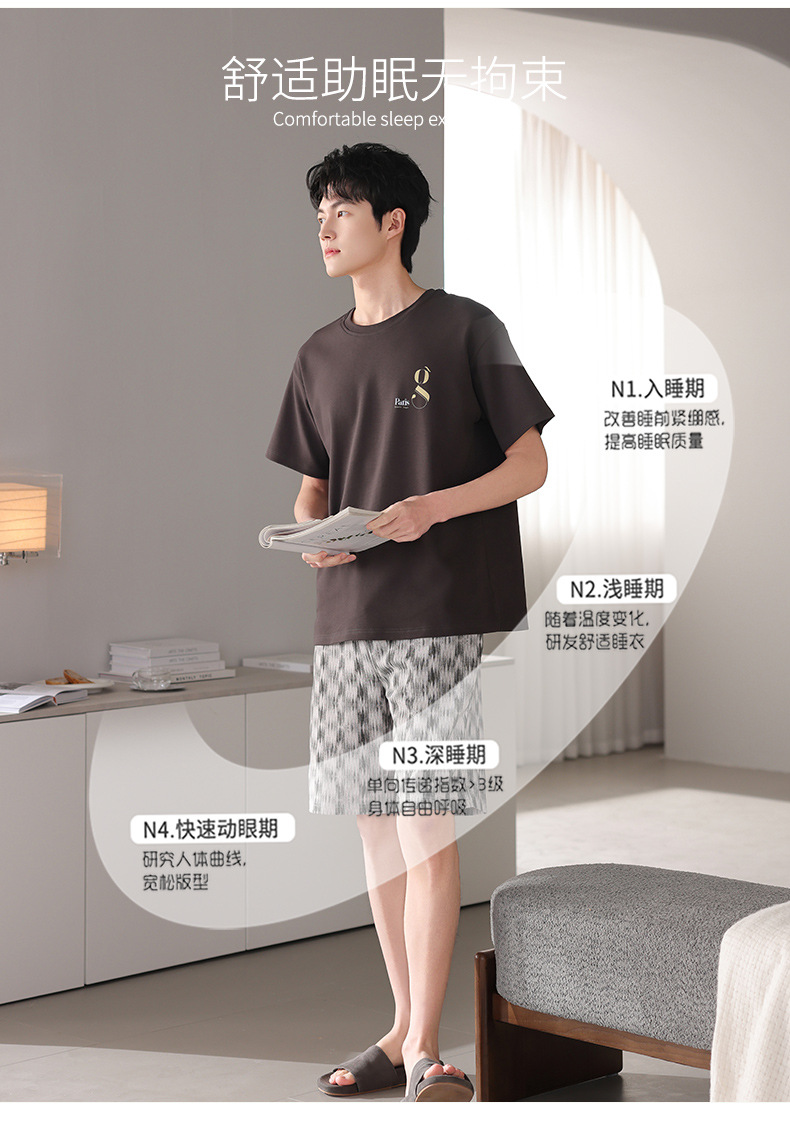 한국식 고급 순면 남성용 여름 잠옷, 라운드넥 반팔 반바지, 루즈핏, 큰 사이즈, 외출복으로도 활용 가능, 청소년 홈웨어스토어 가기