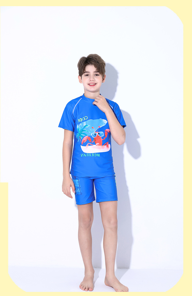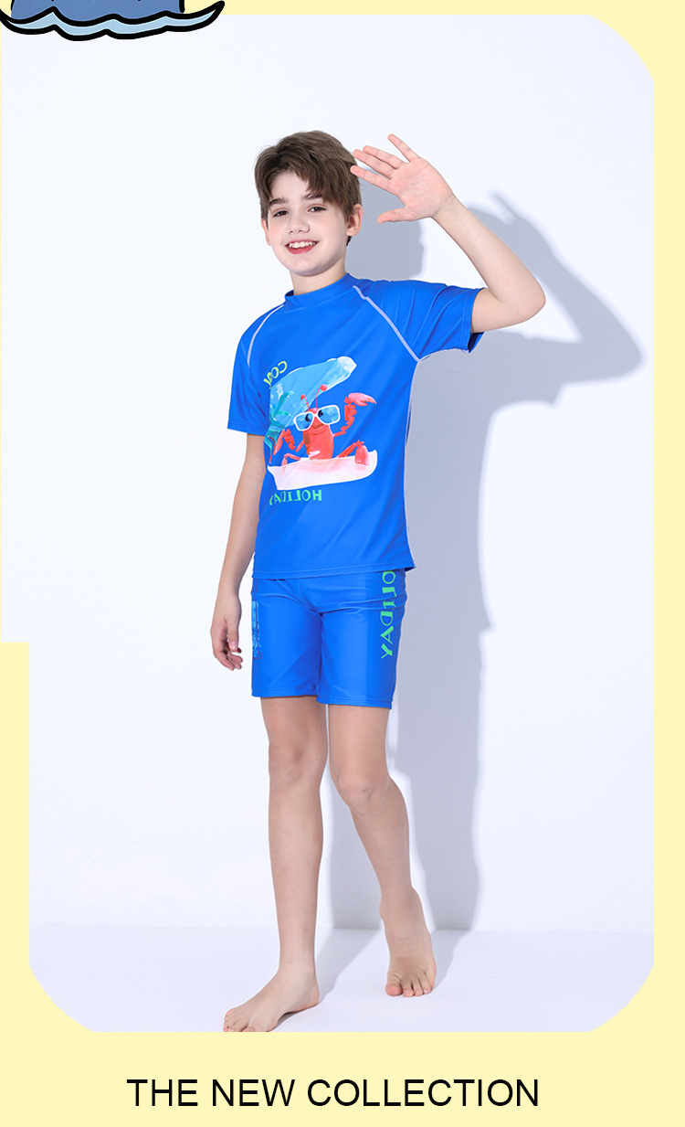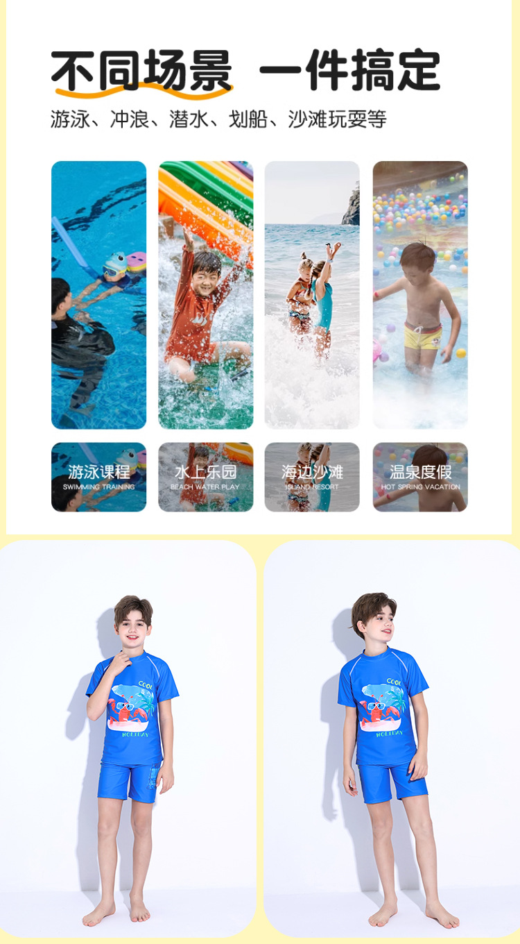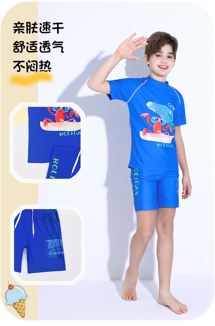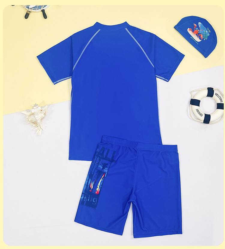 2025년 신상 여름 아동 수영복 스플릿 스포츠 스타일 반팔 5부 바지 남학생 및 중학생 수영복스토어 가기