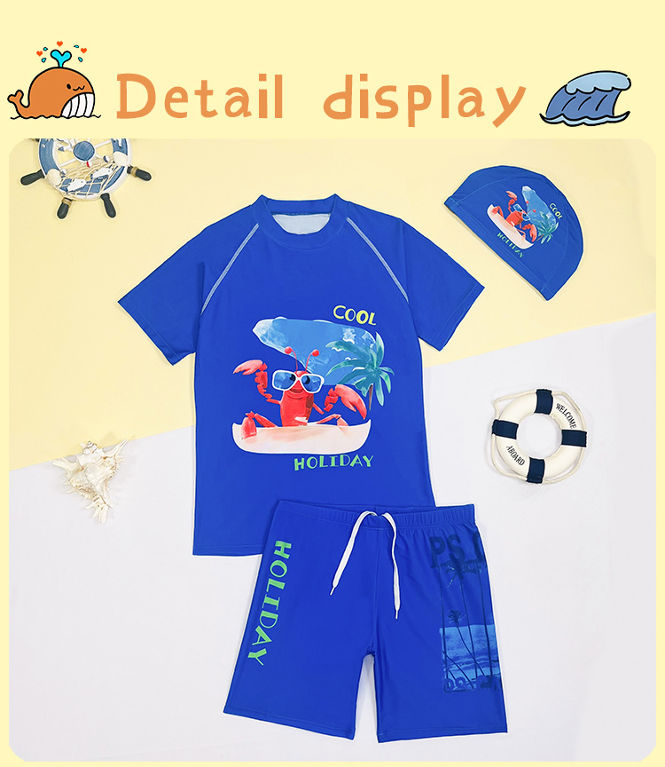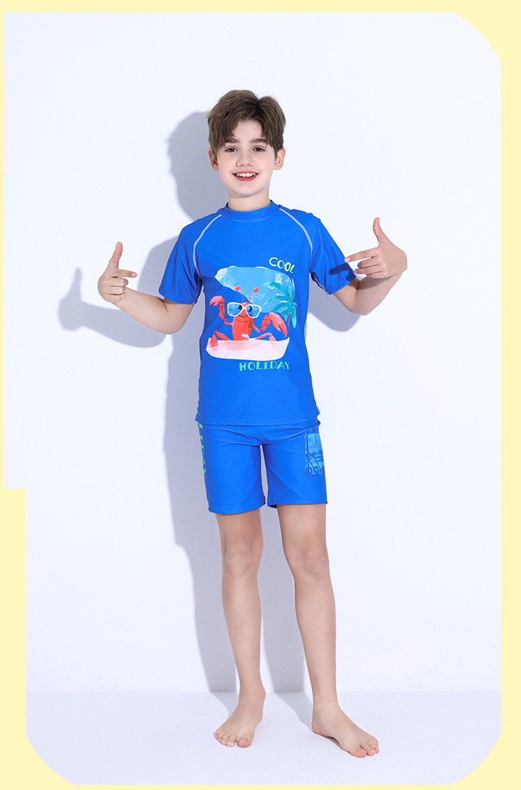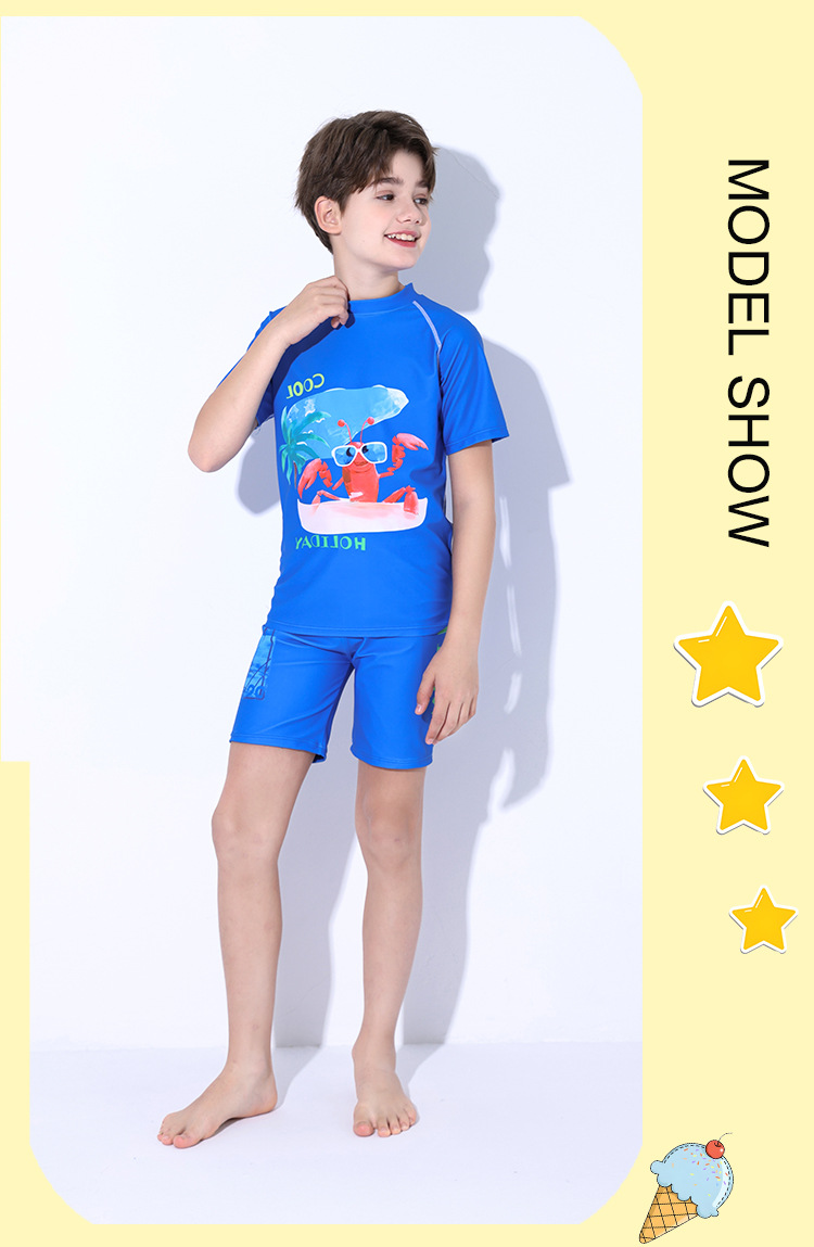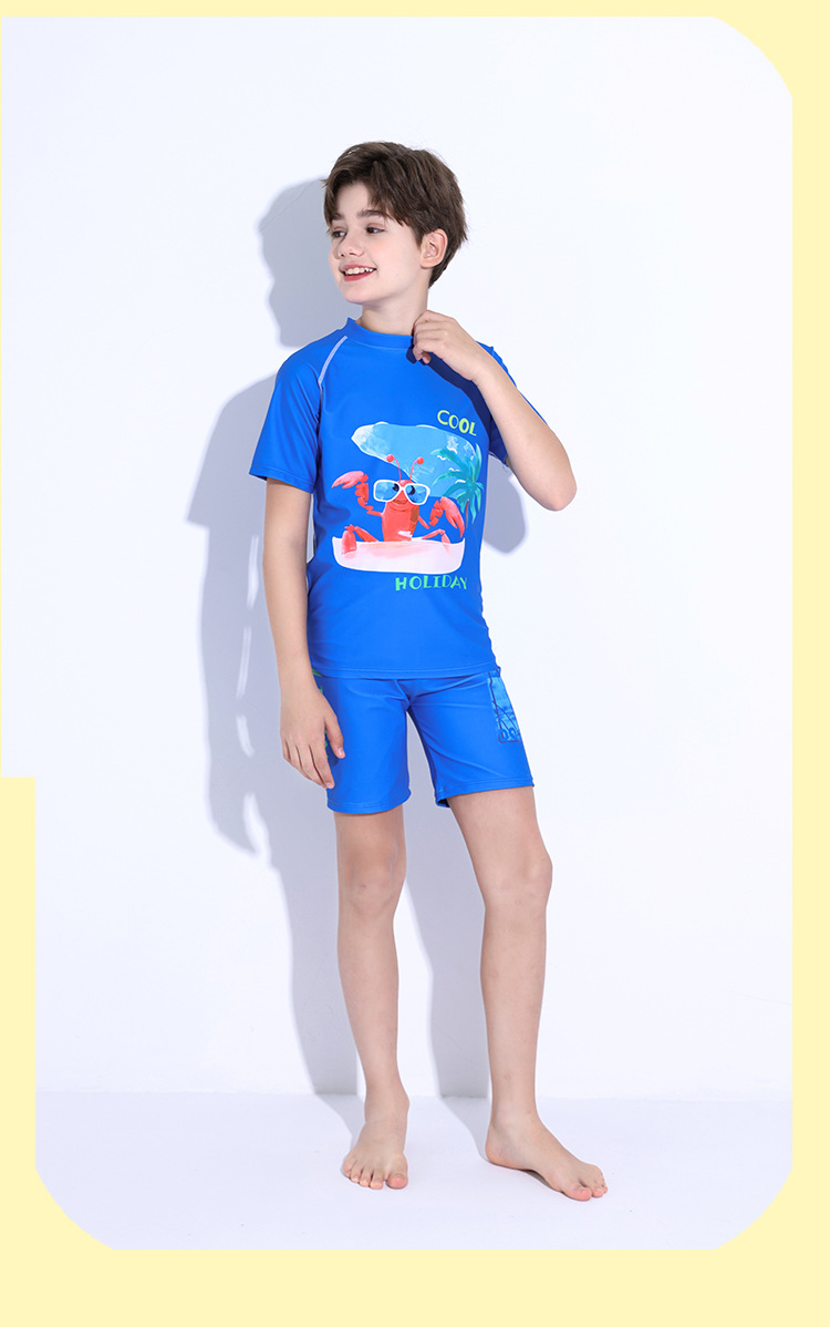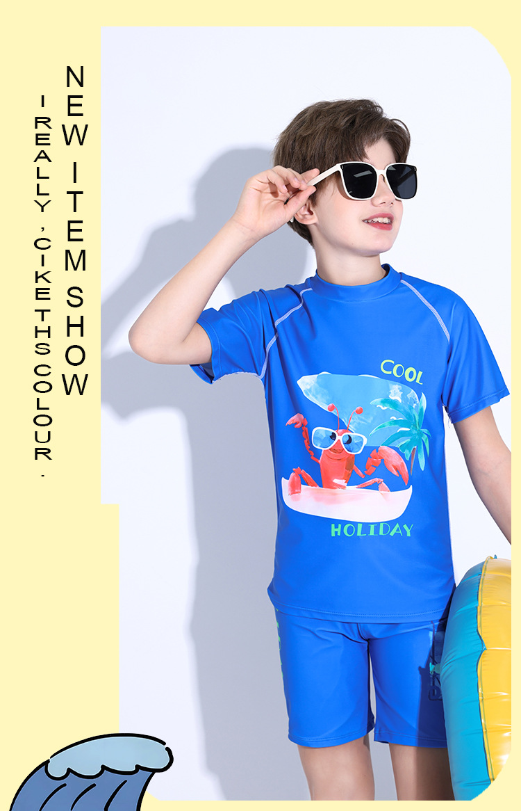 2025년 신상 여름 아동 수영복 스플릿 스포츠 스타일 반팔 5부 바지 남학생 및 중학생 수영복스토어 가기