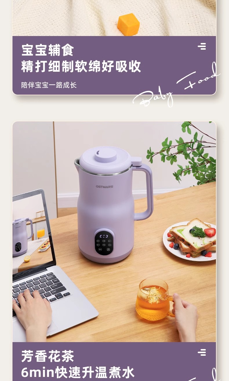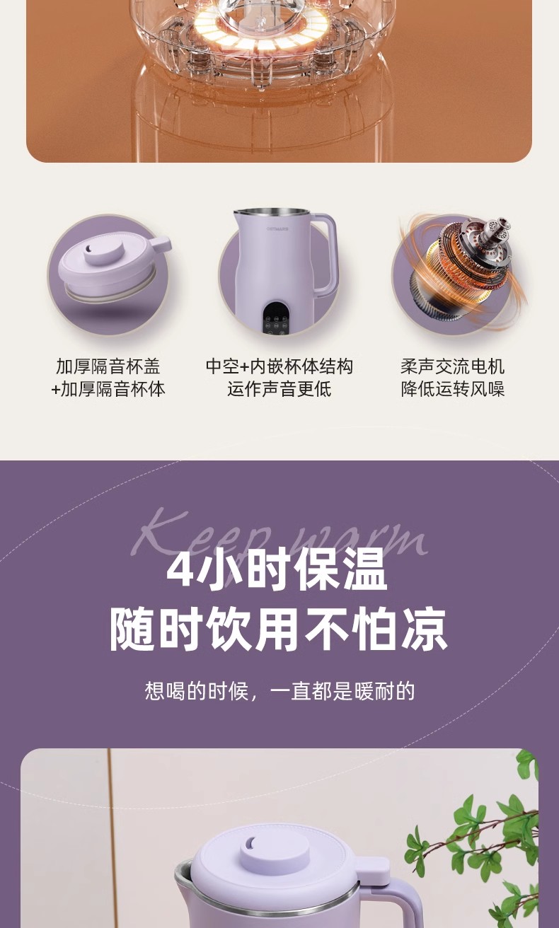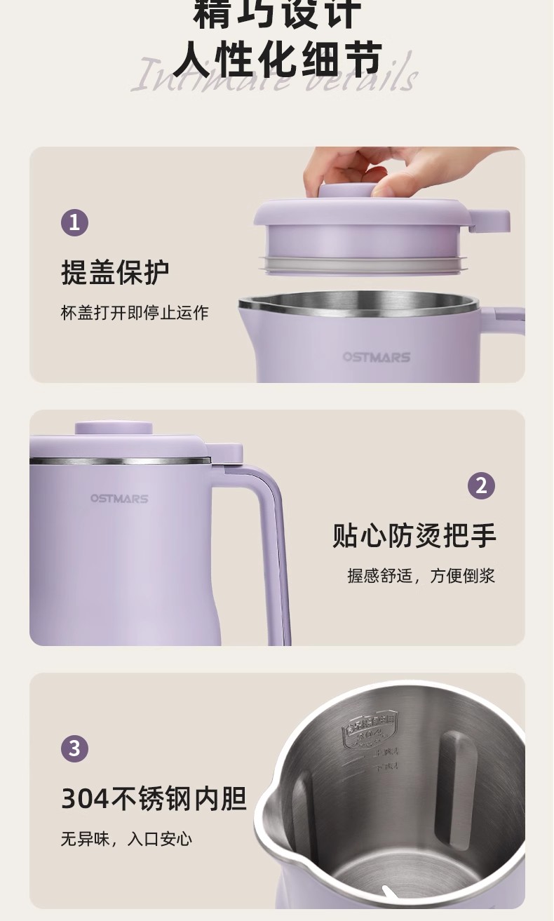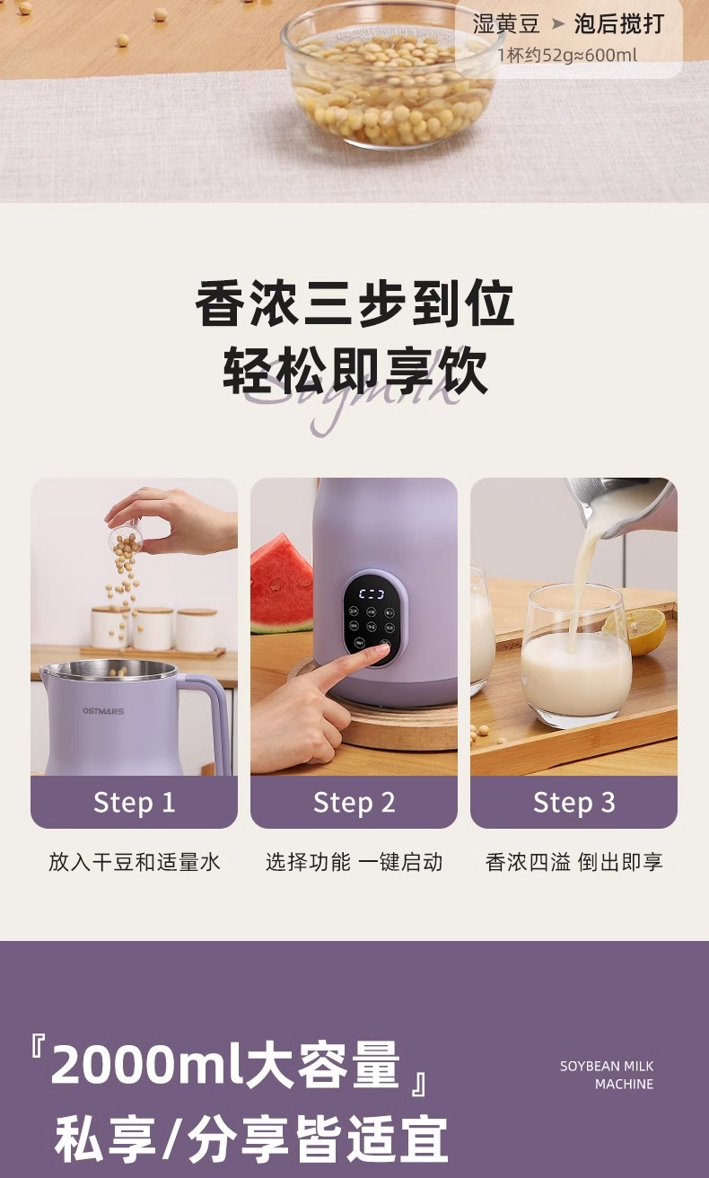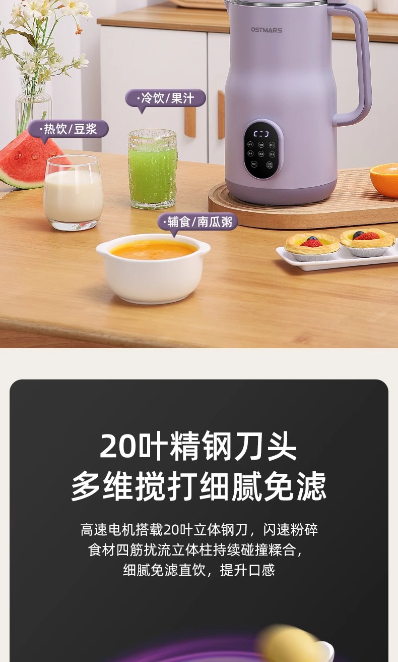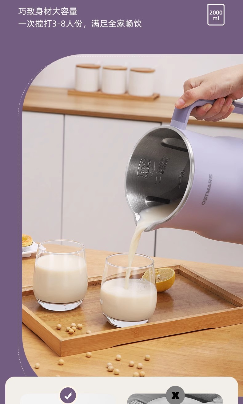 독일 OSTMARS 두유 기계 2L 대용량 가정용 완전 자동 다기능 라이트 사운드 벽 파괴 기계 요리 없음 필터 없음스토어 가기