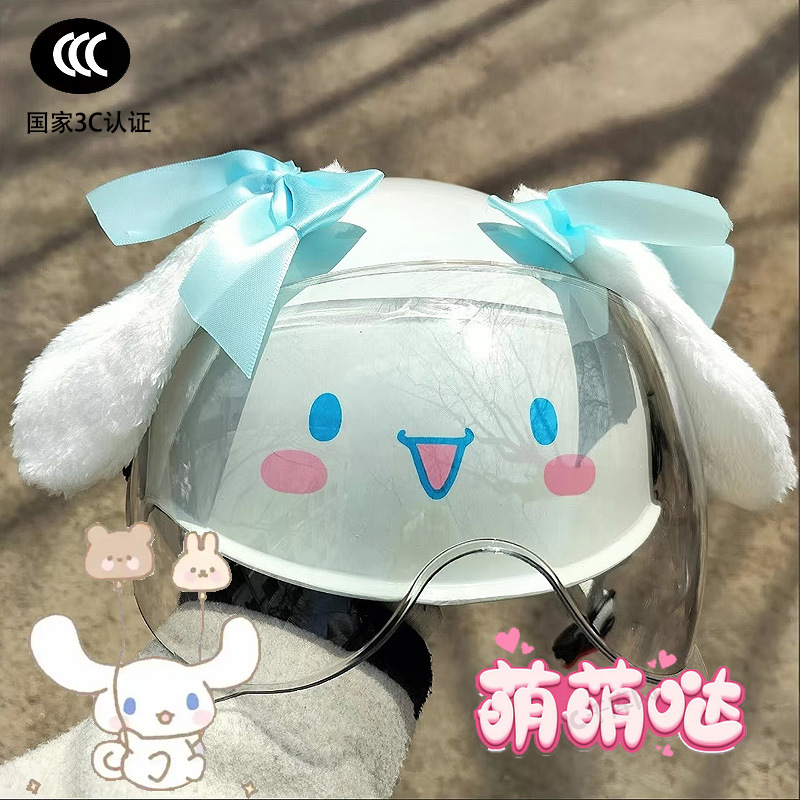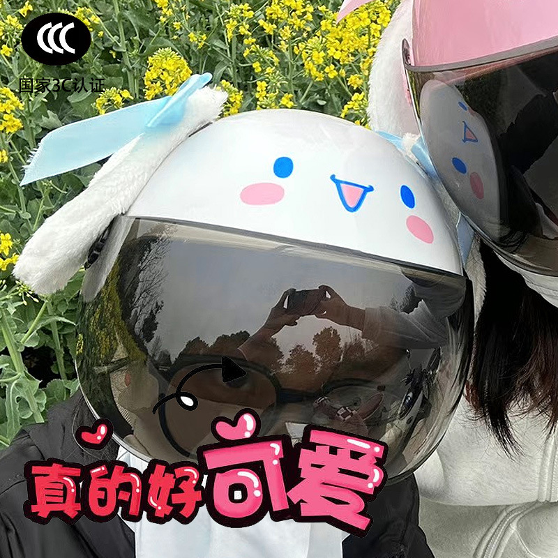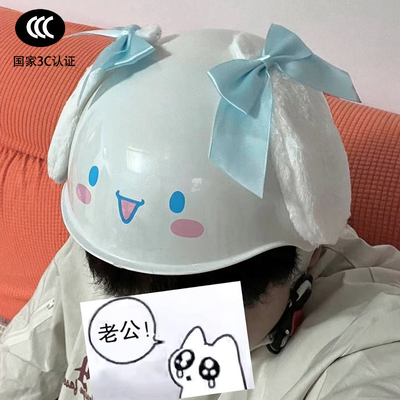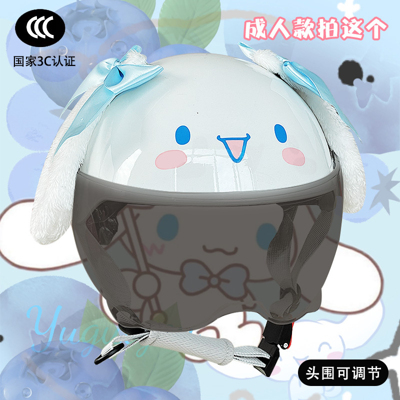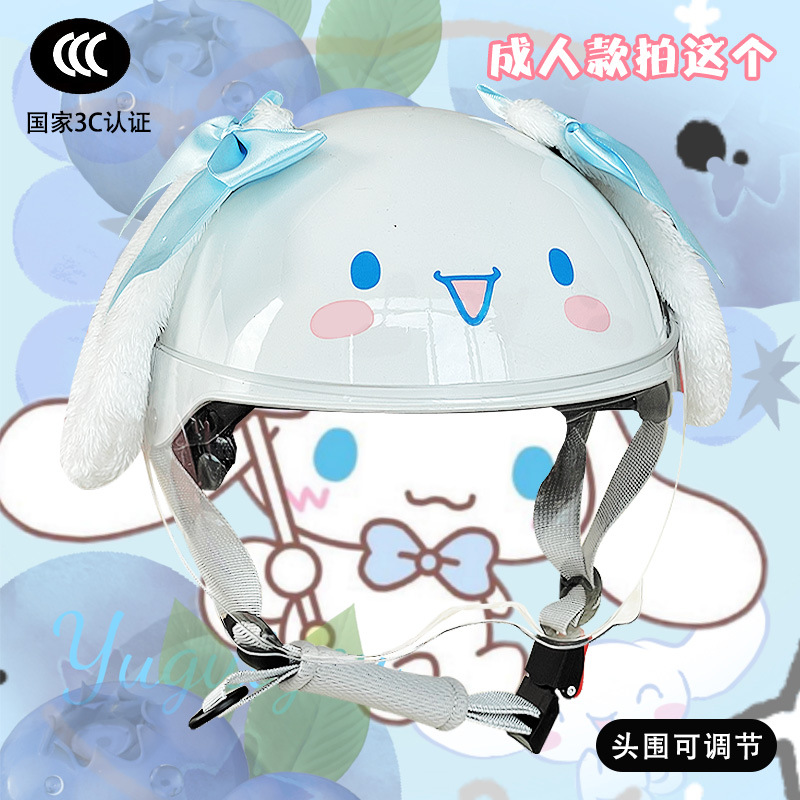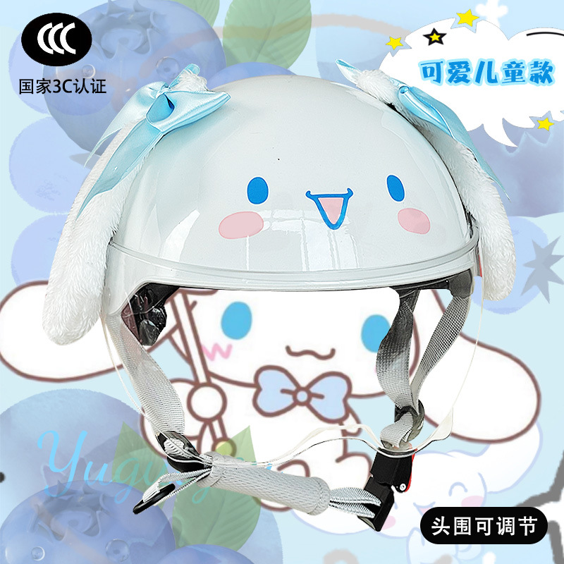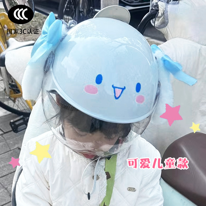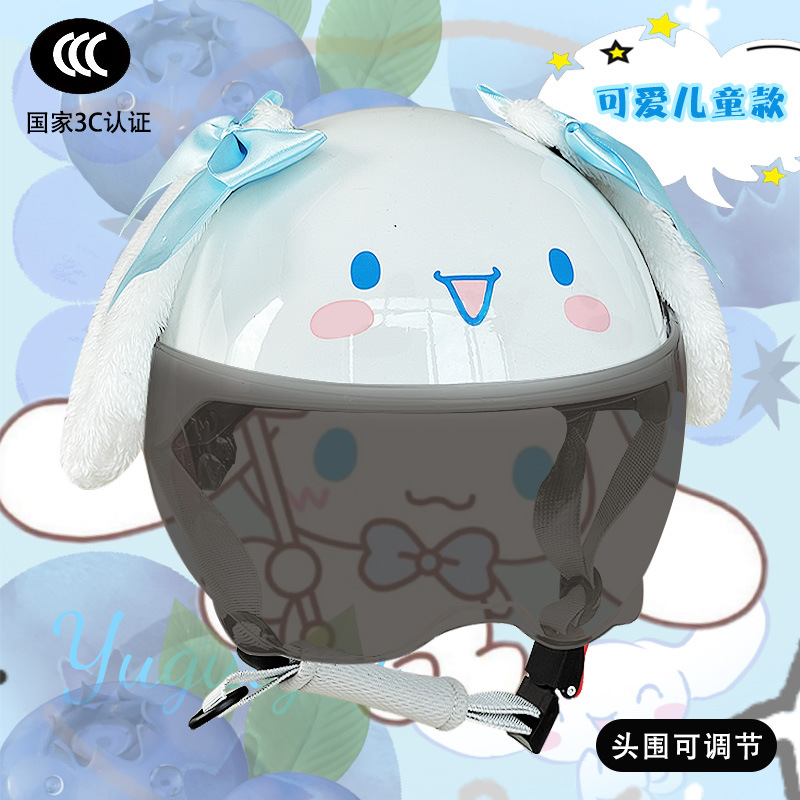 부모-자식 여름 자외선 차단 전기 자동차 헬멧, 사계절 모두 사용 가능, 귀여운 계피 개 반 헬멧, 학생용 경량 안전 헬멧