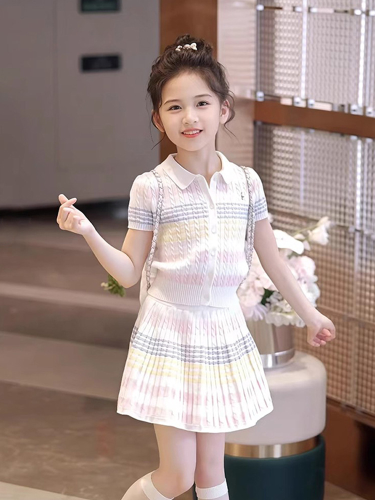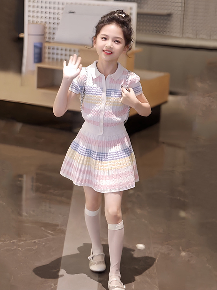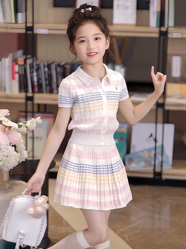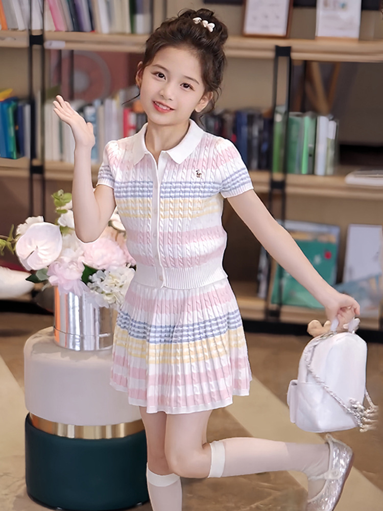 소녀의 니트 세트 여름 2025 새로운 어린이 서양식 카디건 탑 소녀의 여름 스커트 투피스 세트