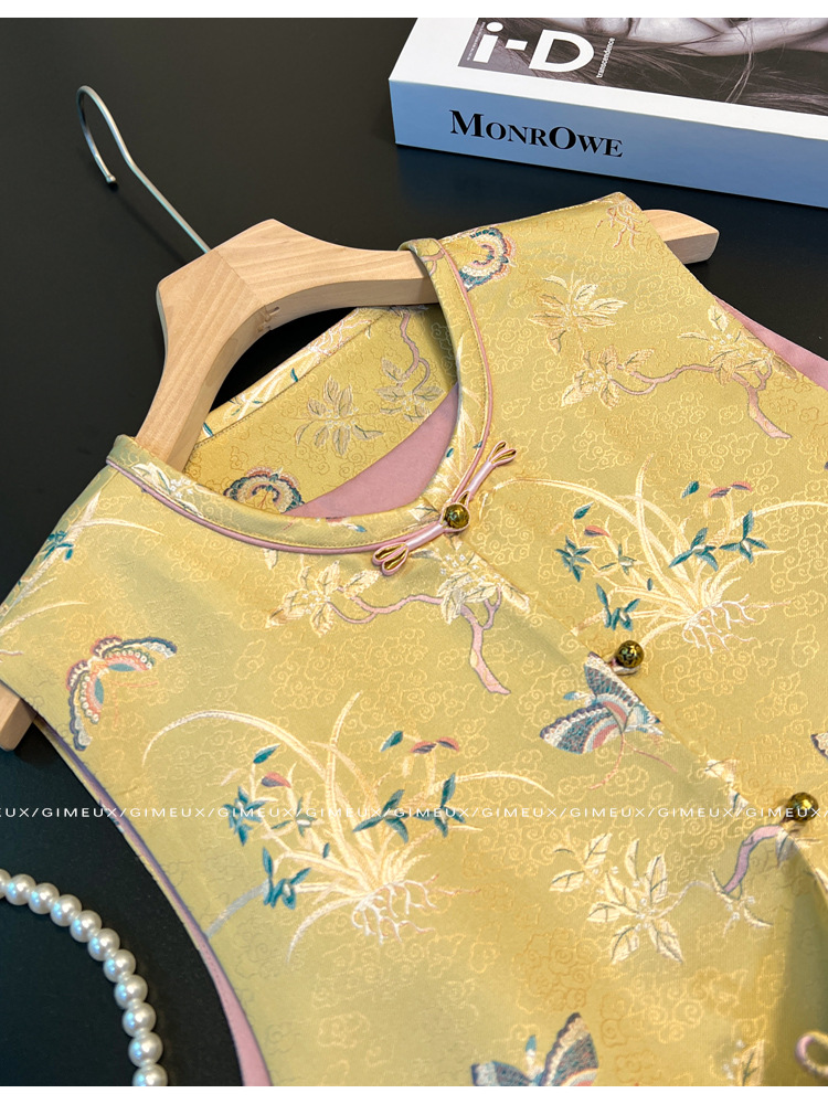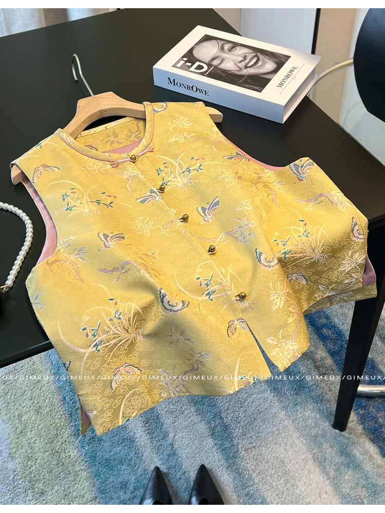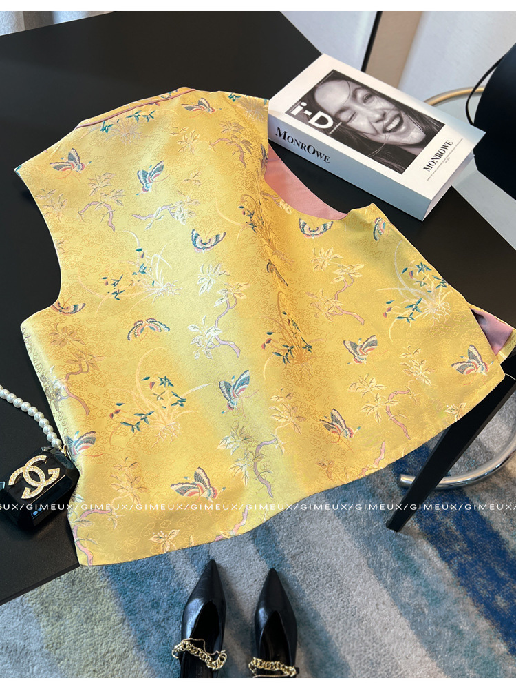 재고 하이 엔드 스택 우아한 최고 여성의 새로운 중국 브로케이드 자카드 레트로 내셔널 스타일 데일리 올 매치 조끼스토어 가기