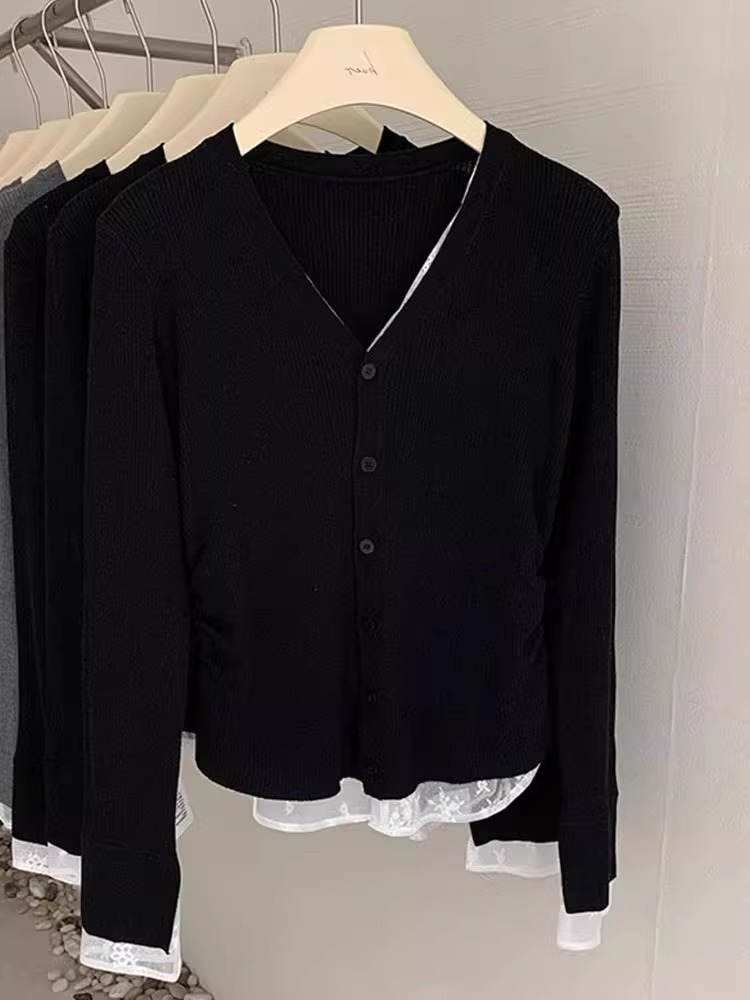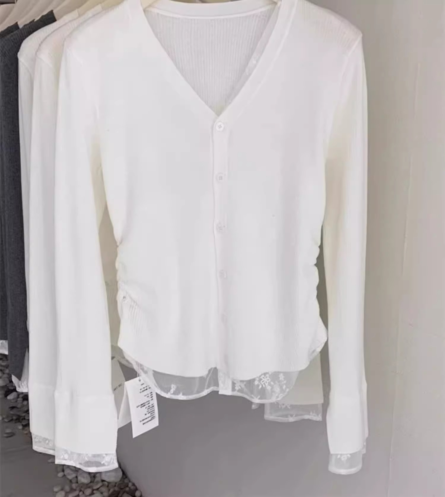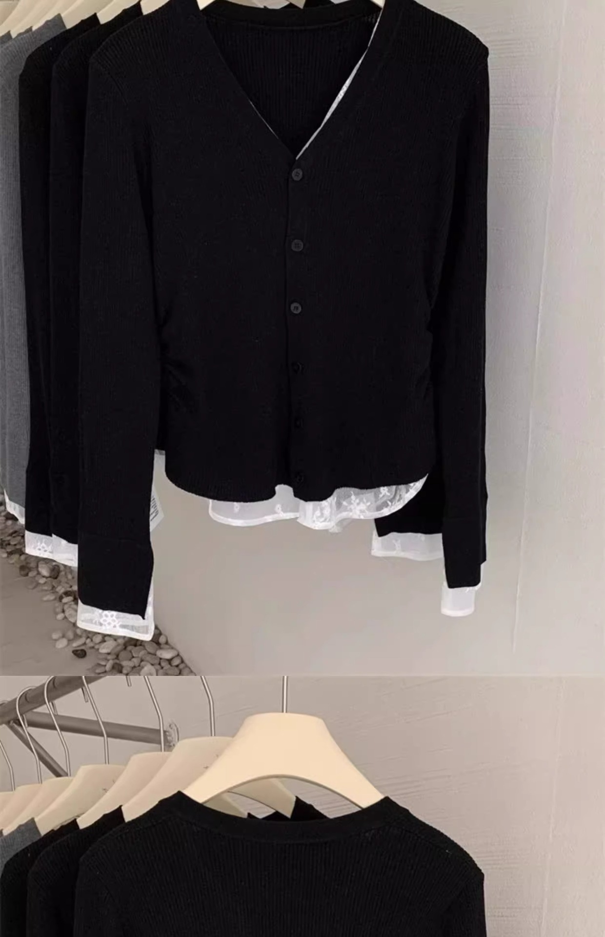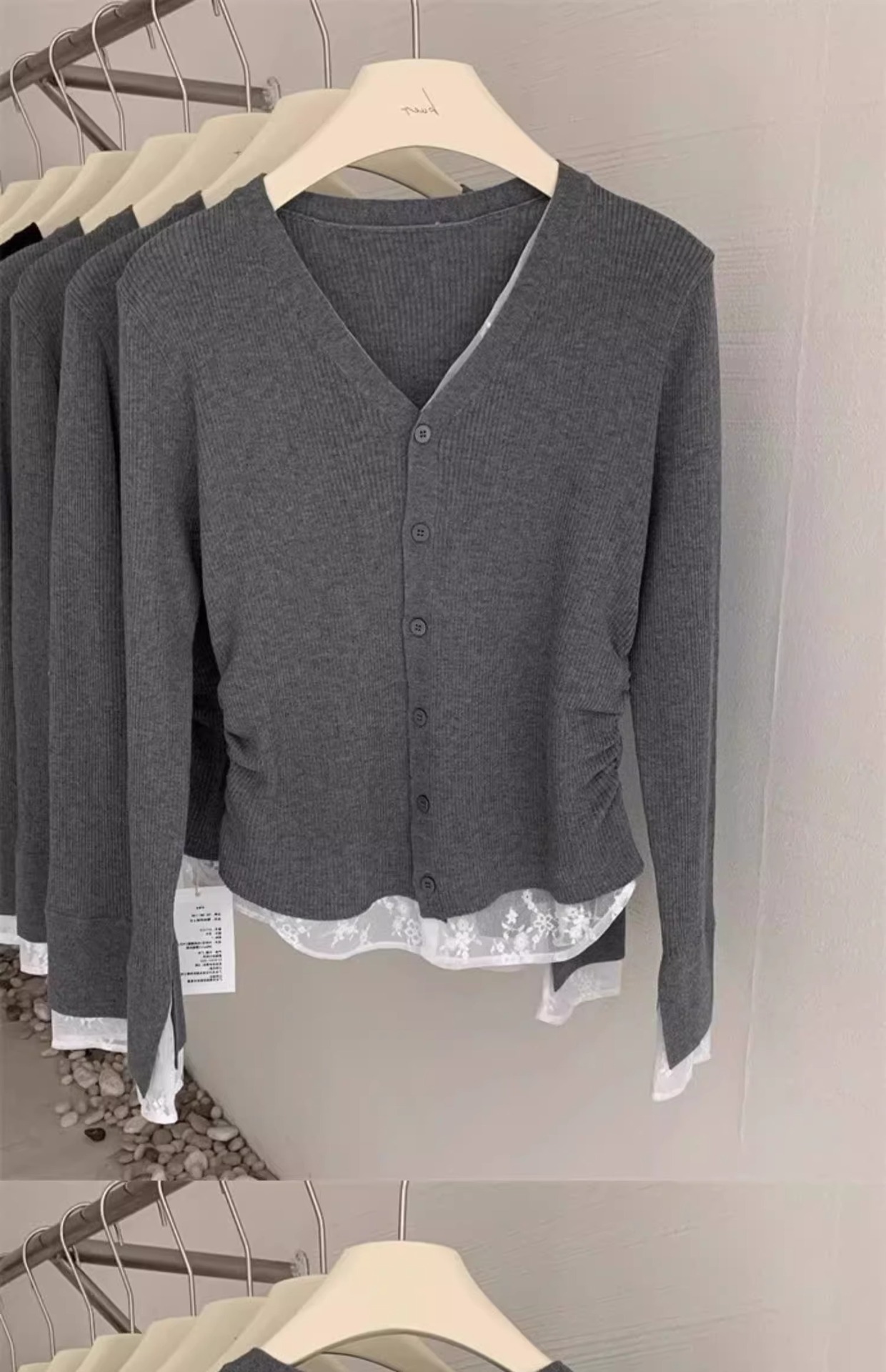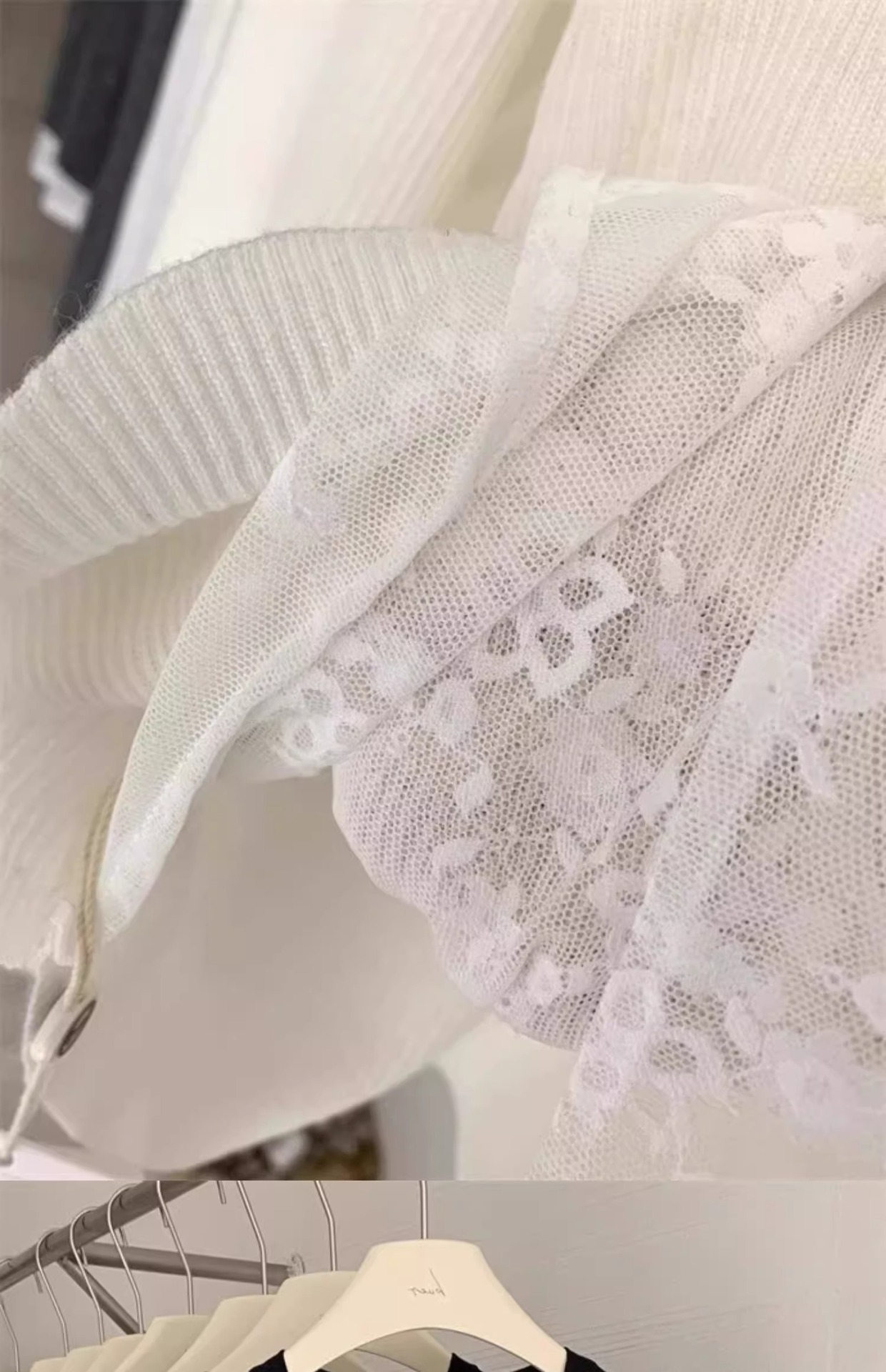 디자인 감각 2025 이른 봄 레이스 스티칭 니트 카디건 긴 소매 인기있는 한국 패션 독특한 최고 편안한 여성스토어 가기