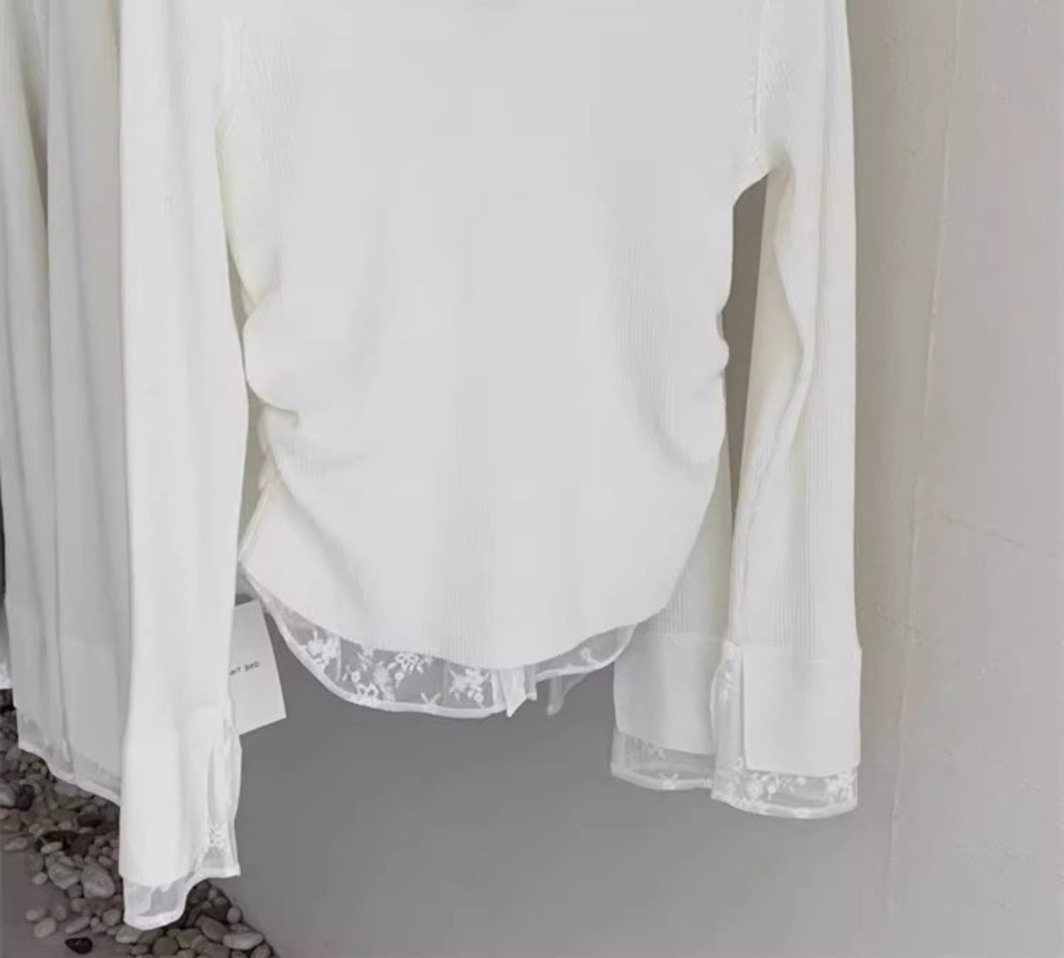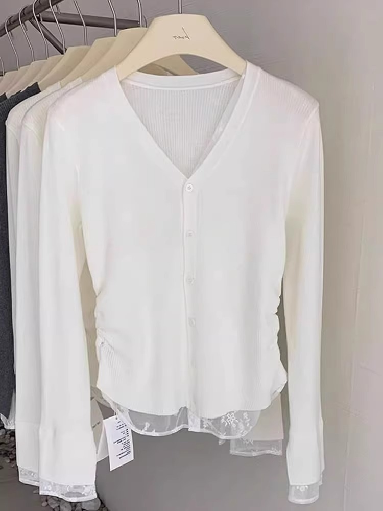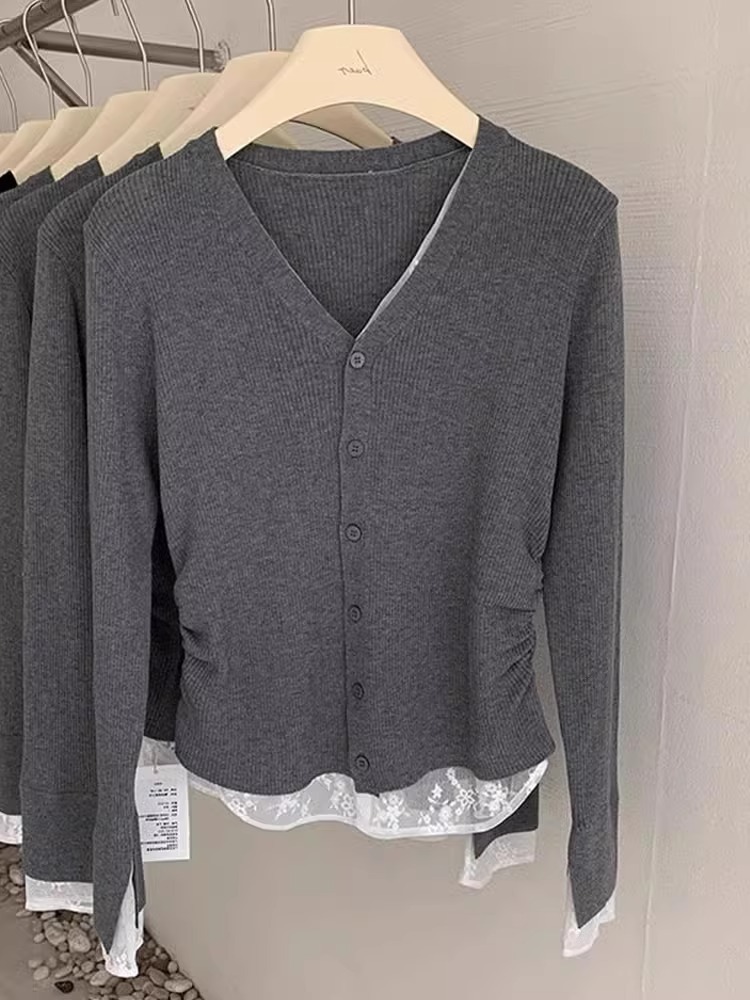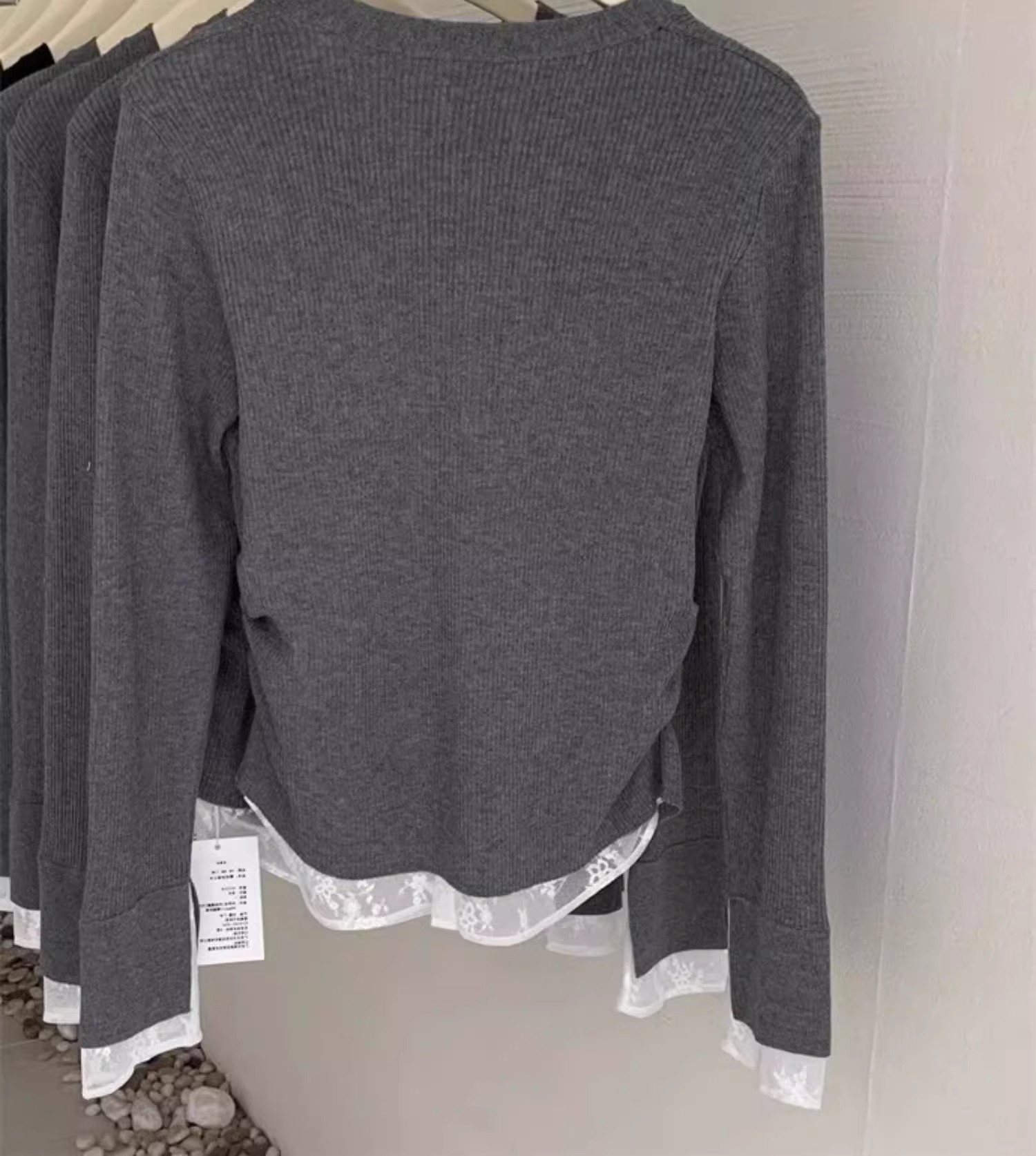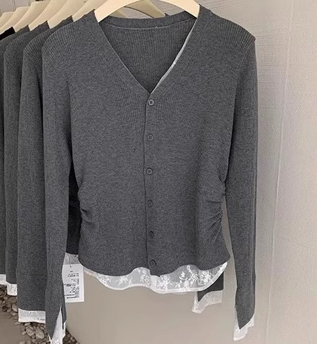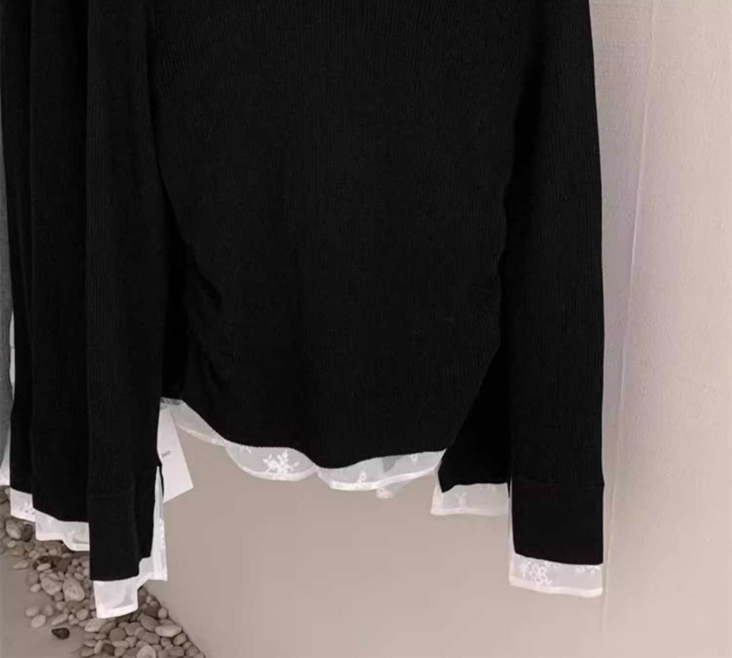 디자인 감각 2025 이른 봄 레이스 스티칭 니트 카디건 긴 소매 인기있는 한국 패션 독특한 최고 편안한 여성스토어 가기