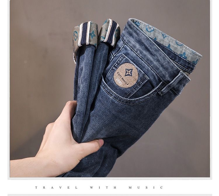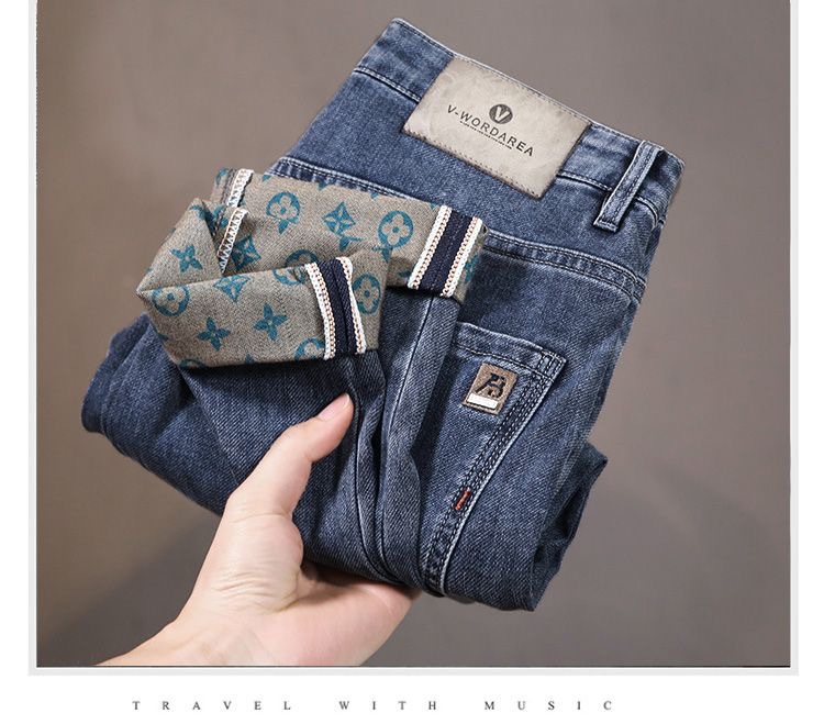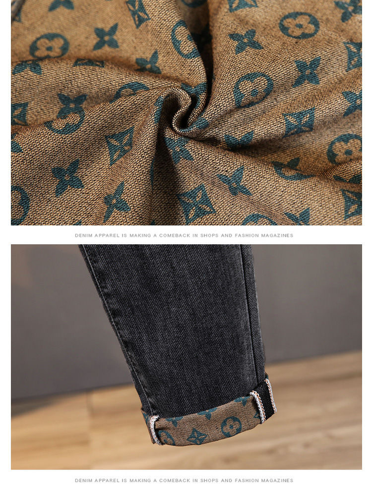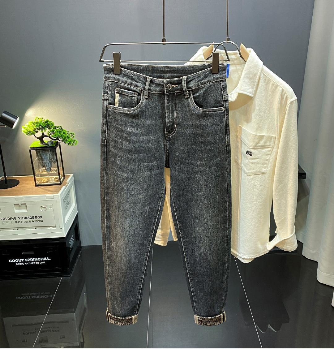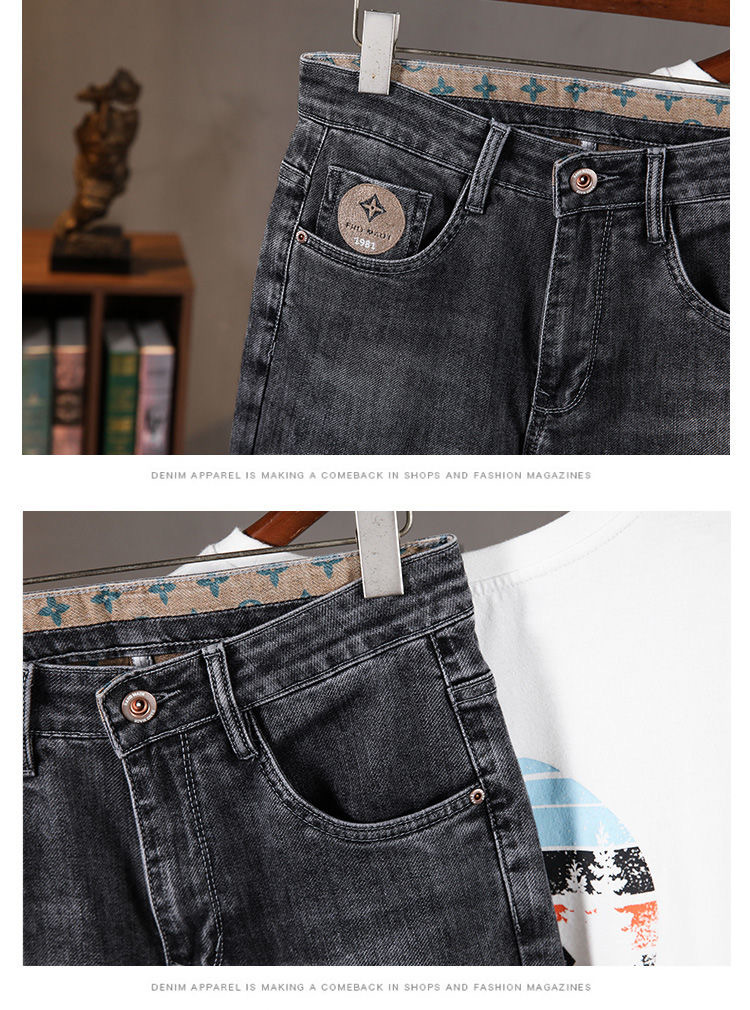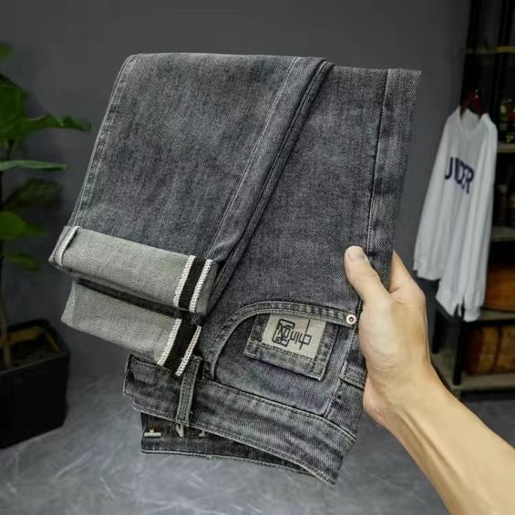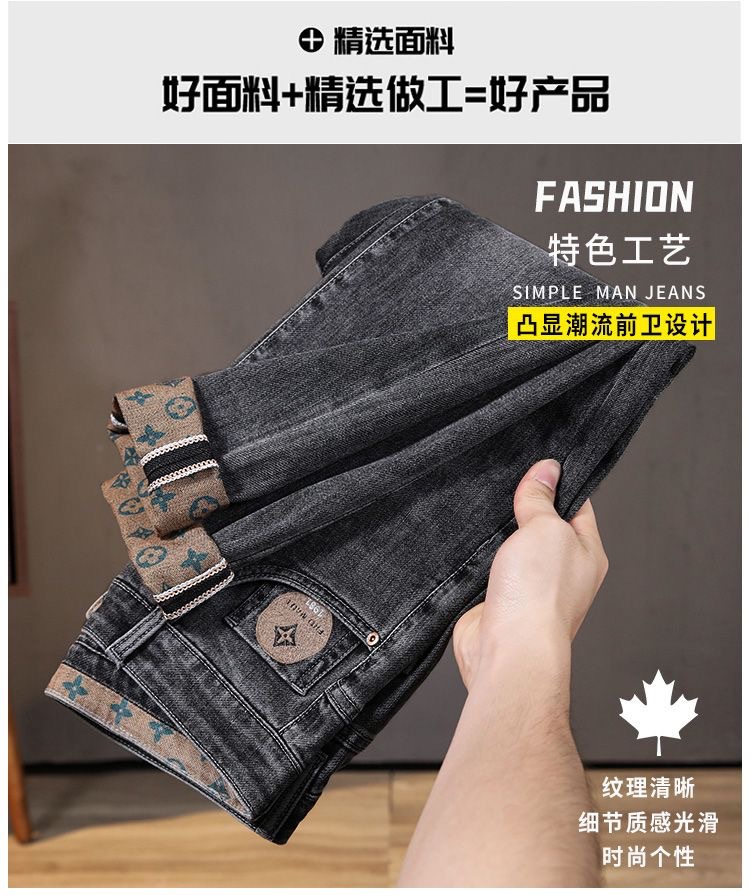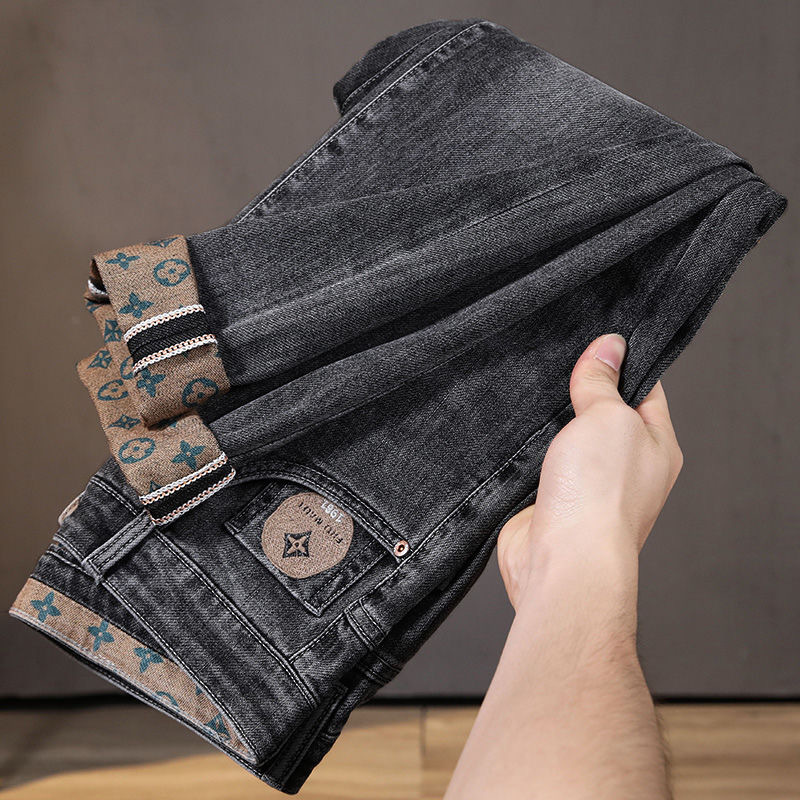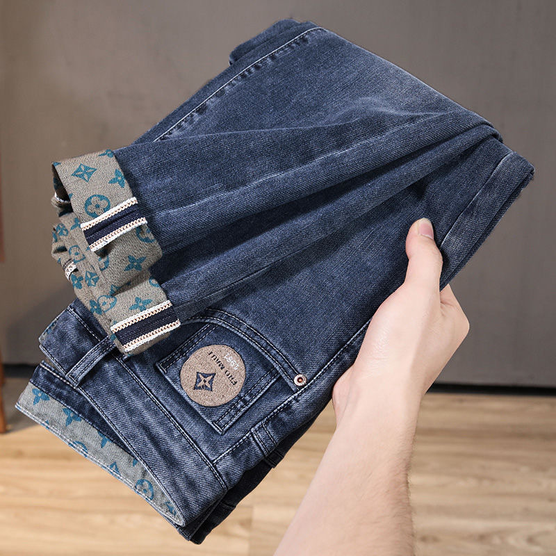 가벼운 럭셔리 남성 청바지 남성용 스트레치 슬림 스트레이트 자수 프린트 가을 캐주얼 다용도 작은 발 긴 바지스토어 가기