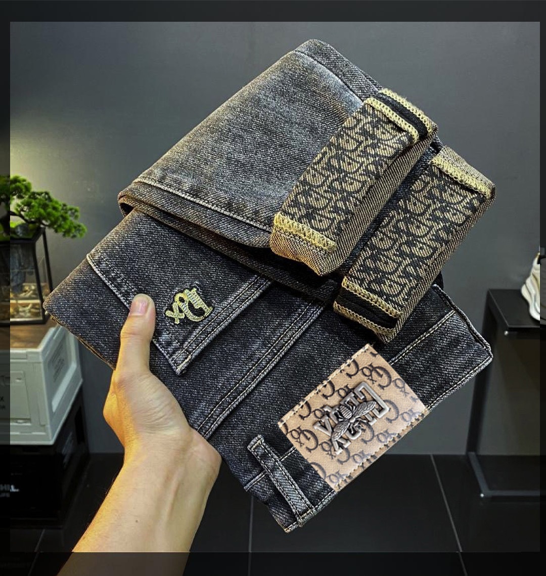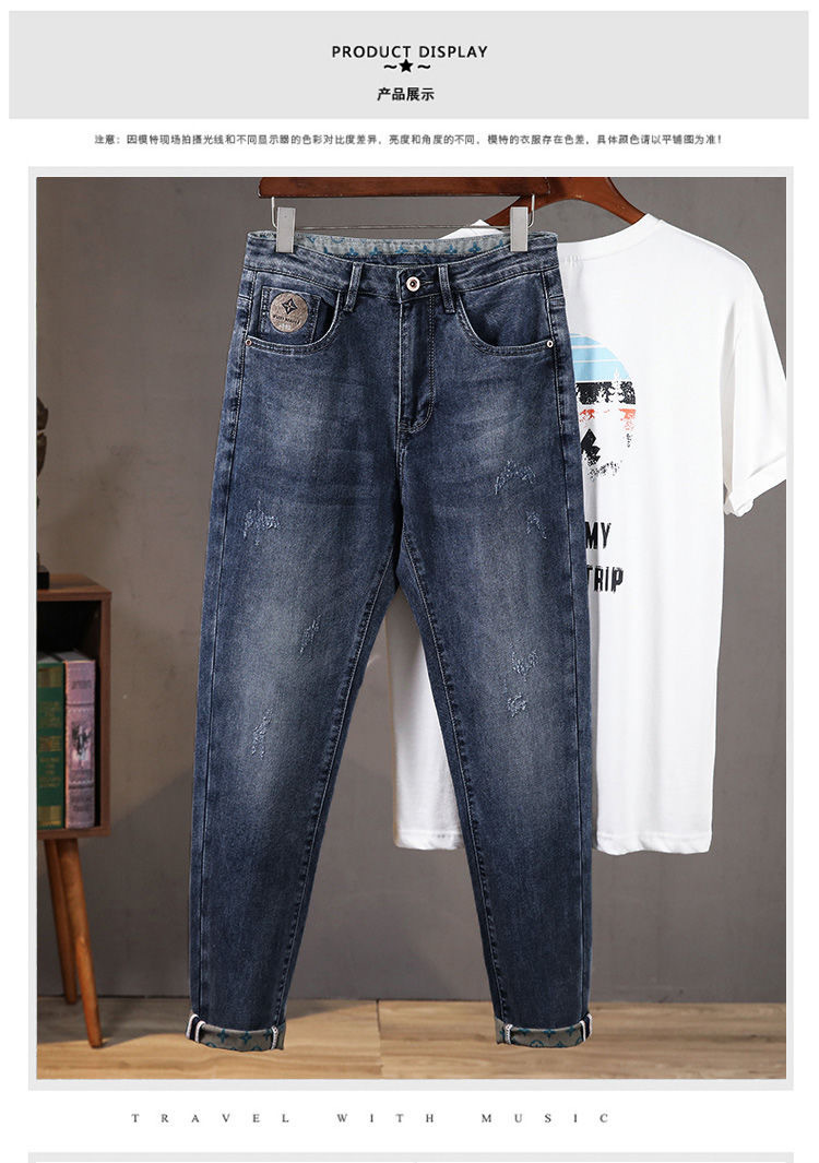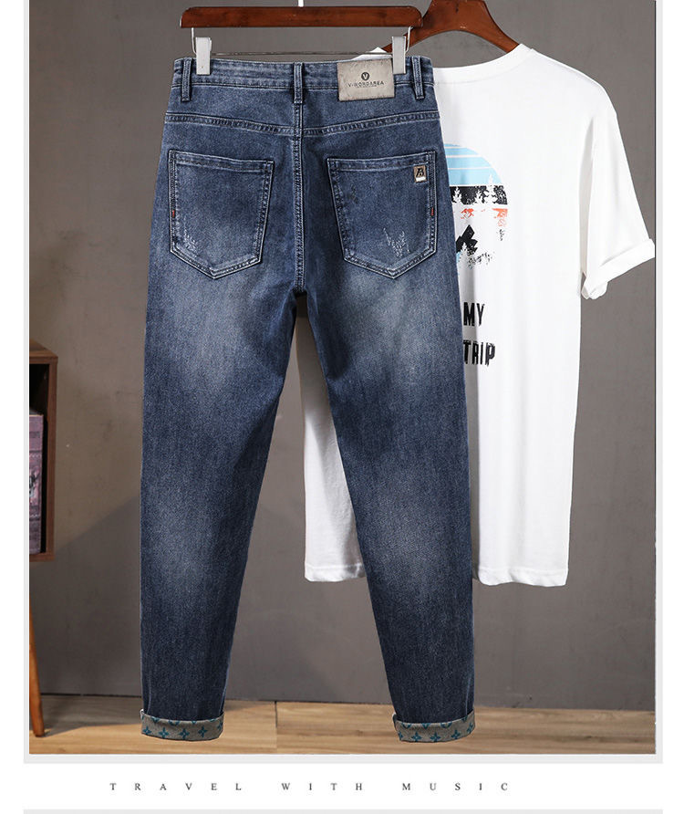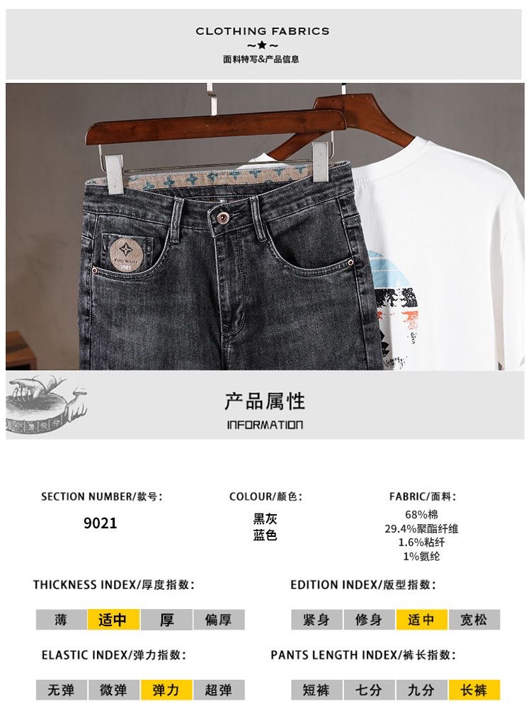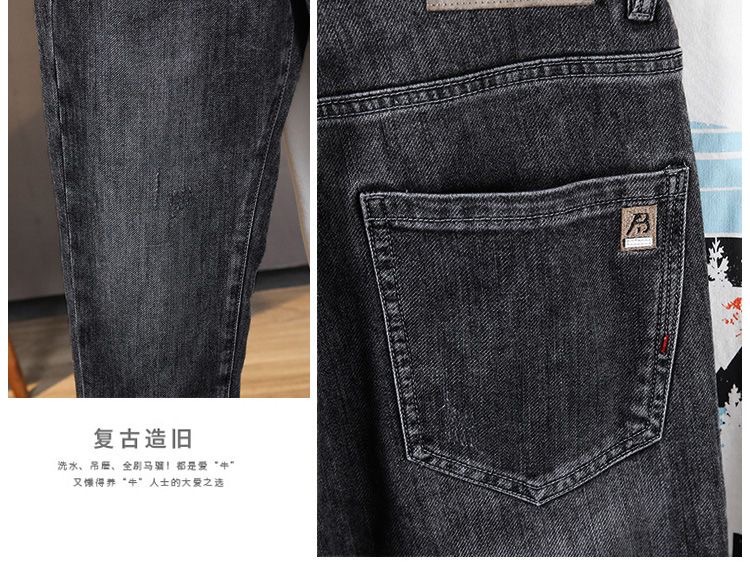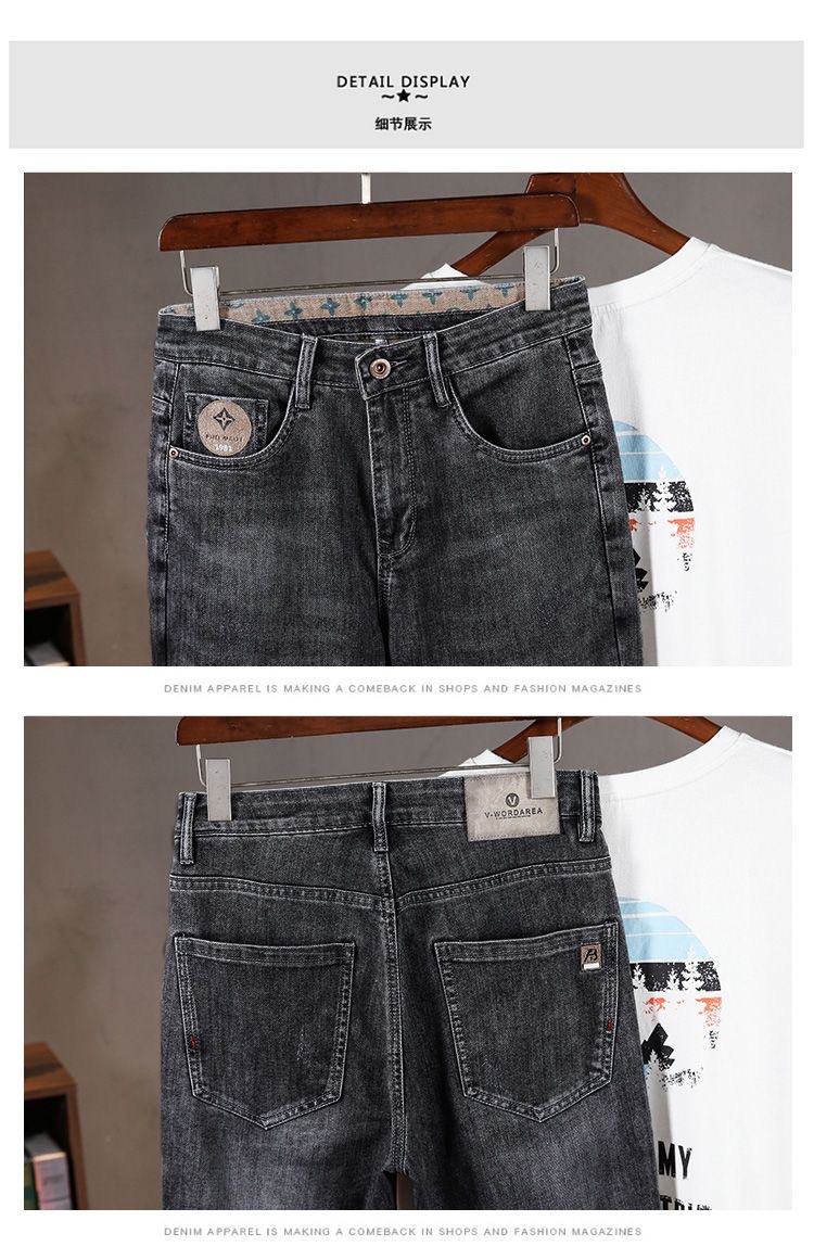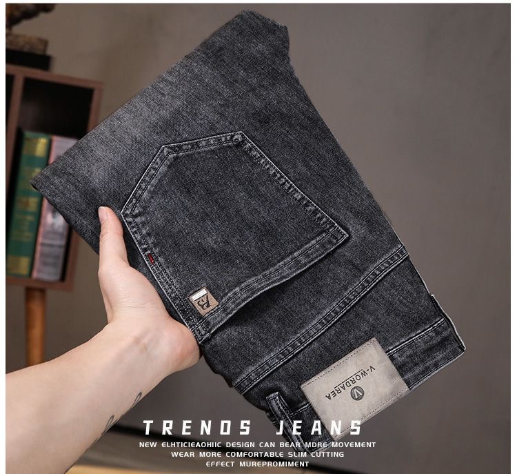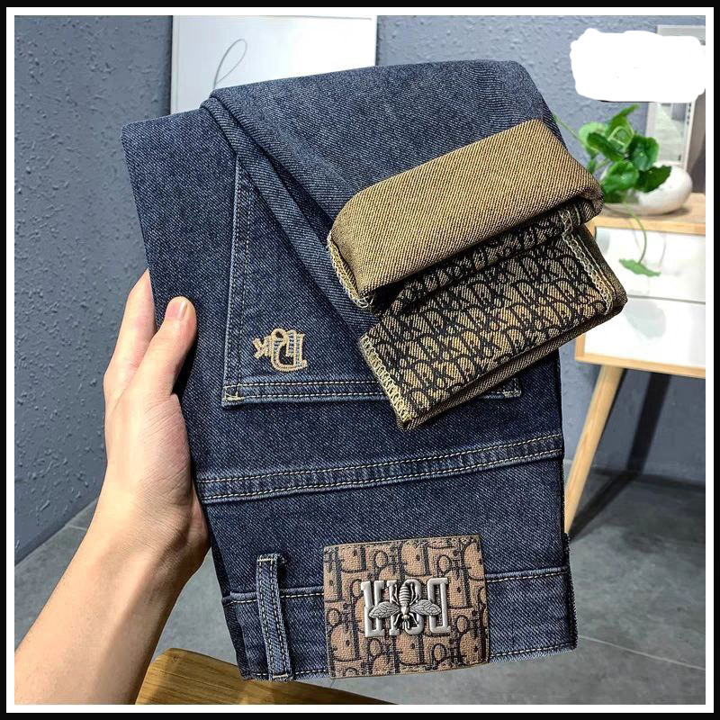 가벼운 럭셔리 남성 청바지 남성용 스트레치 슬림 스트레이트 자수 프린트 가을 캐주얼 다용도 작은 발 긴 바지스토어 가기