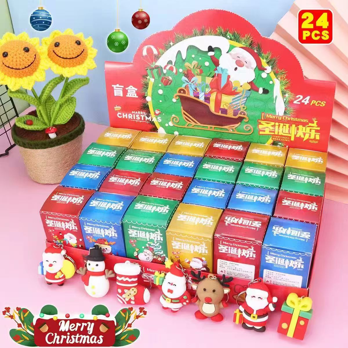 • 메리 크리스마스 24의 배수로 촬영된 작은 상자 24개가 들어 있는 상자