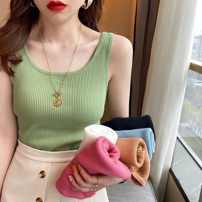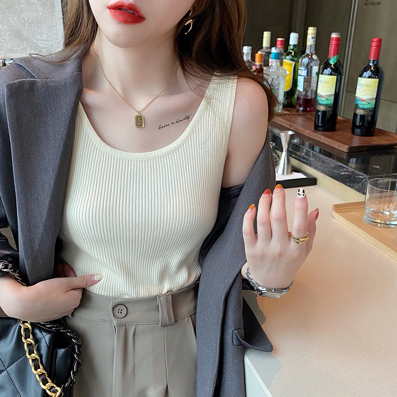 여성용 베이스 레이어 조끼 2025 새로운 스타일의 양복 이너 레이어 블랙 프렌치 아우터 민소매 니트 서스펜더 여름스토어 가기