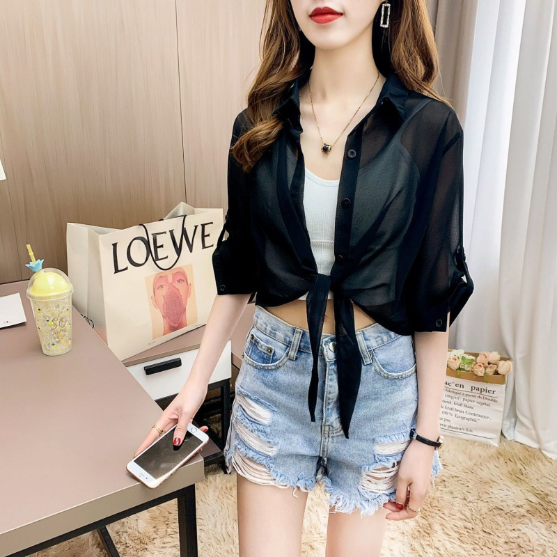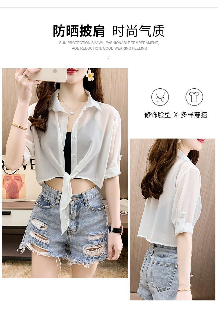 슬립 스커트, 쉬폰 셔츠, 숄, 얇은 숏 코트, 가디건, 여성용 자외선 차단 탑스토어 가기