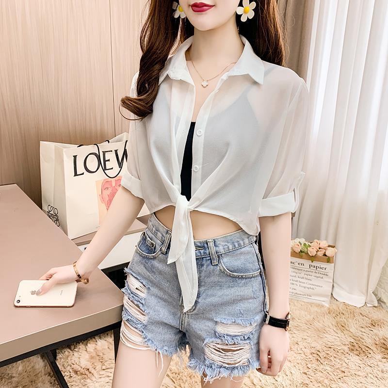 슬립 스커트, 쉬폰 셔츠, 숄, 얇은 숏 코트, 가디건, 여성용 자외선 차단 탑