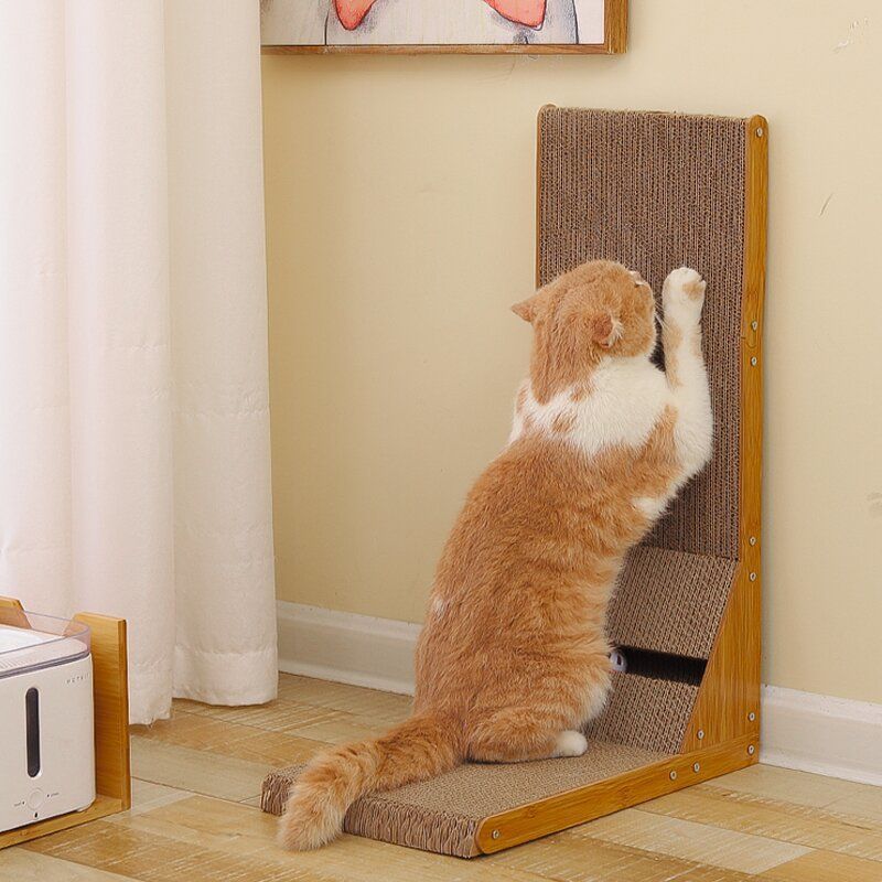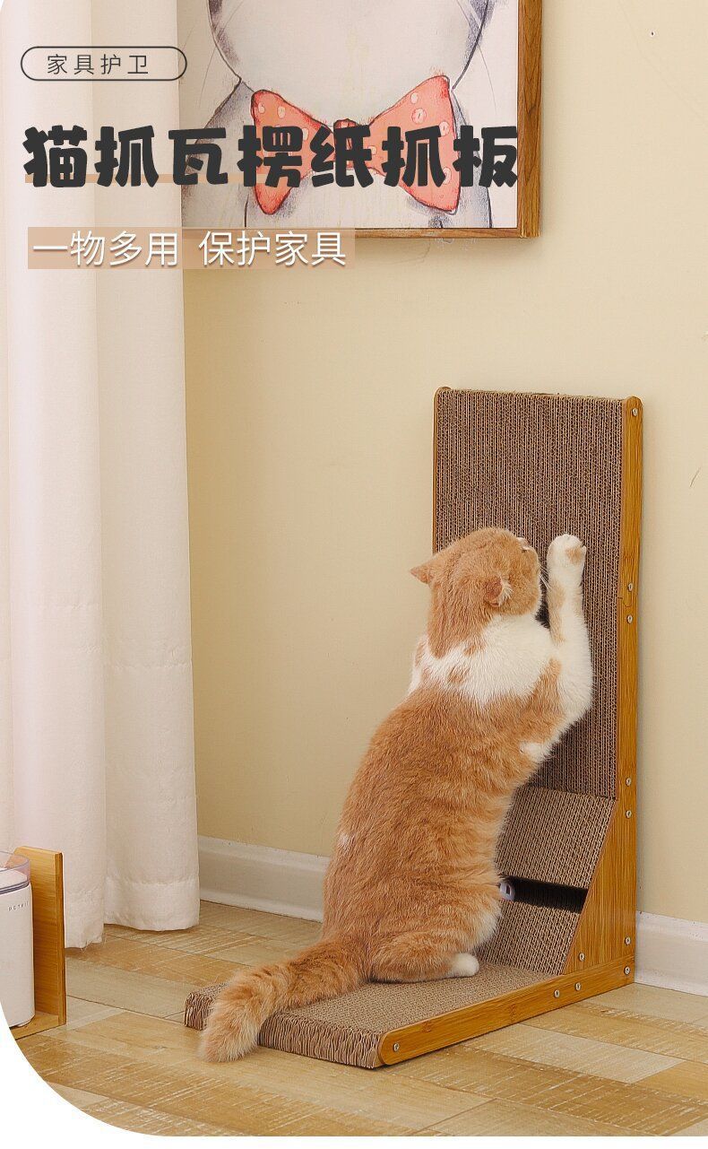 고양이 스크래치 보드 L자형 입체 골판지, 부스러기가 없는 고양이 발톱 연삭 도구, 긁힘 방지 및 지루함 해소 고양이 자기 즐거움 장난감