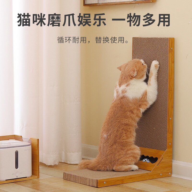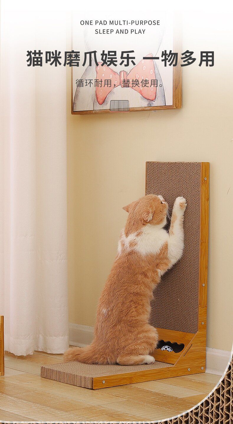 고양이 스크래치 보드 L자형 입체 골판지, 부스러기가 없는 고양이 발톱 연삭 도구, 긁힘 방지 및 지루함 해소 고양이 자기 즐거움 장난감스토어 가기
