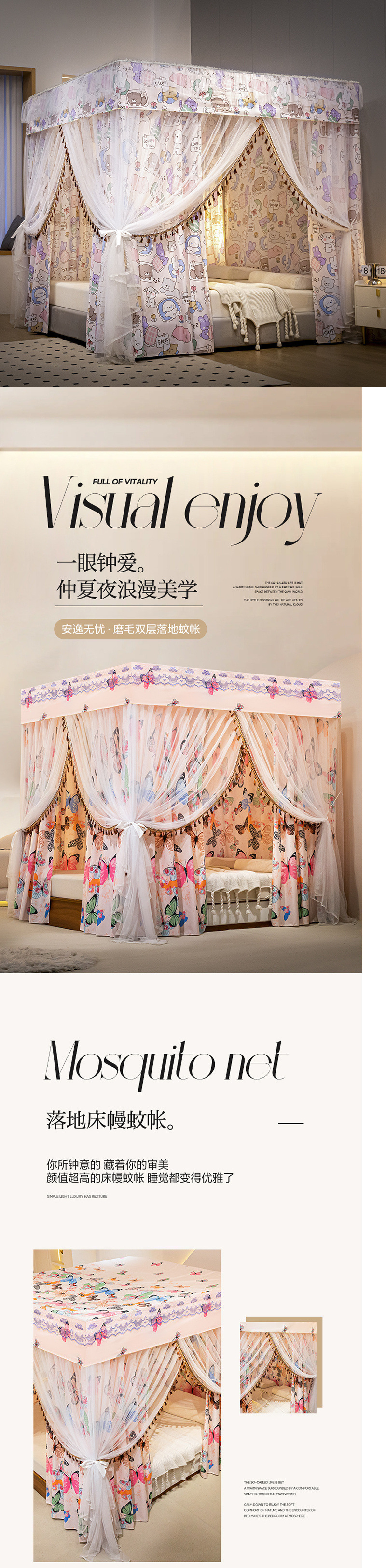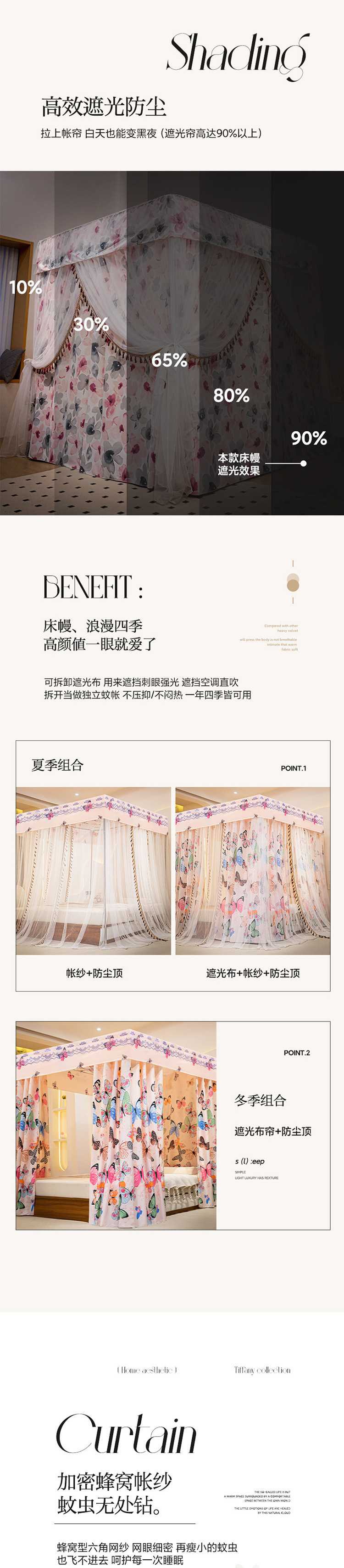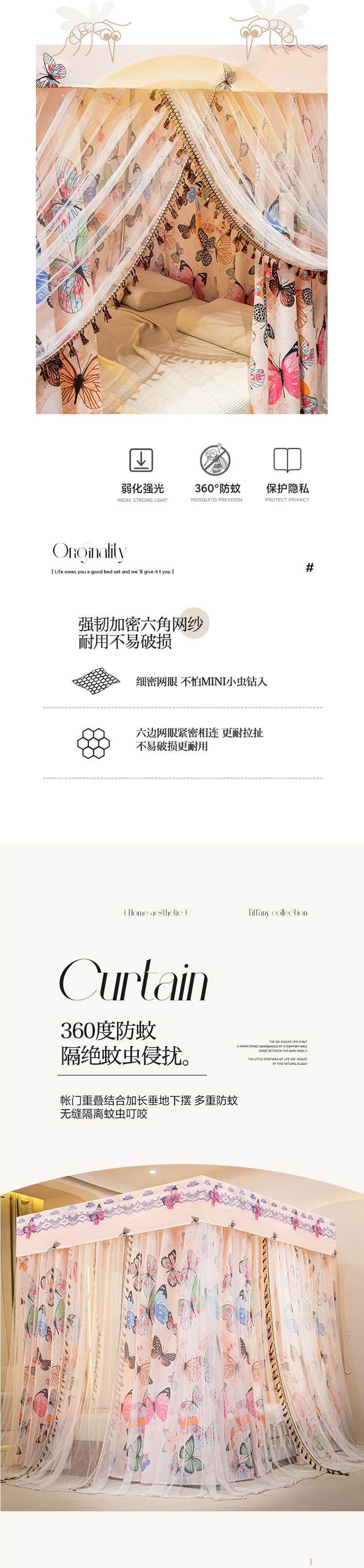 • 2.0x2.2 침대 [브래킷 + 침대 커튼 + 모기장]