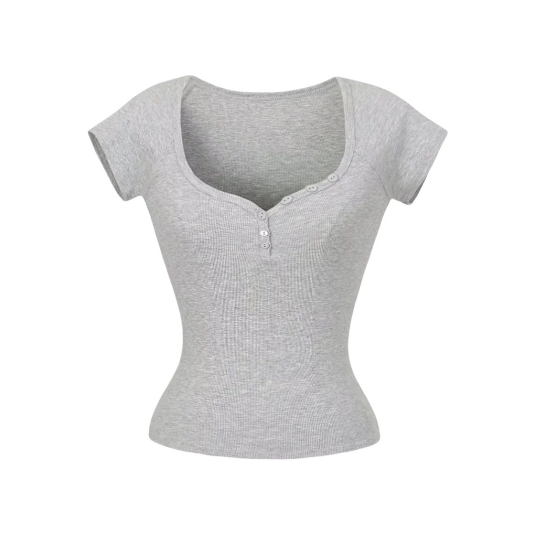 뜨거운 소녀 하트 칼라 로우 컷 반팔 티셔츠 여성용 여름 디자인 센스 슬림 핏 간단한 짧은 어깨 솔리드 컬러 탑스토어 가기