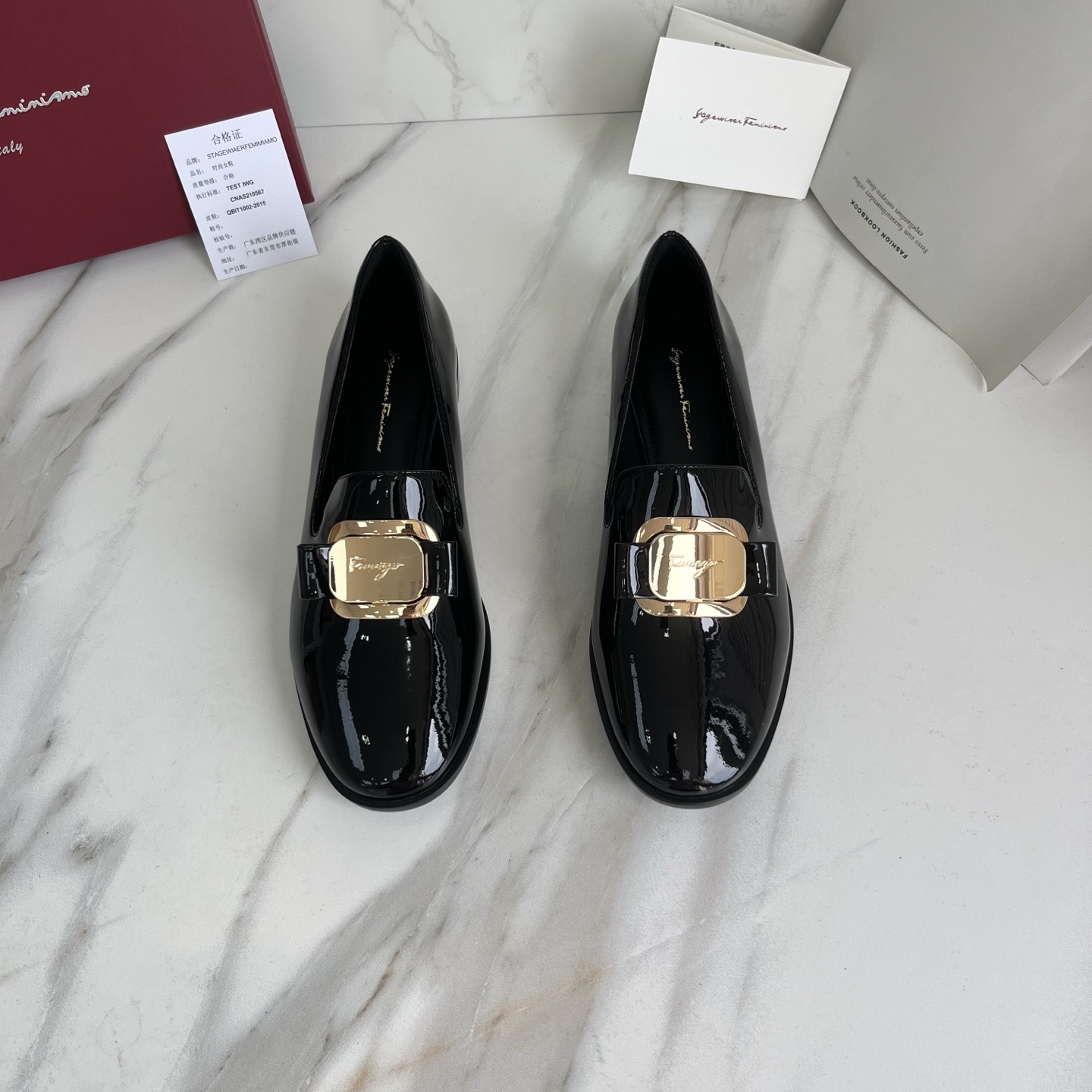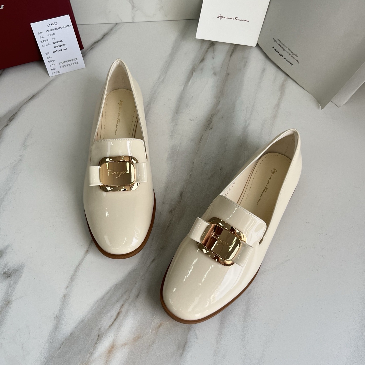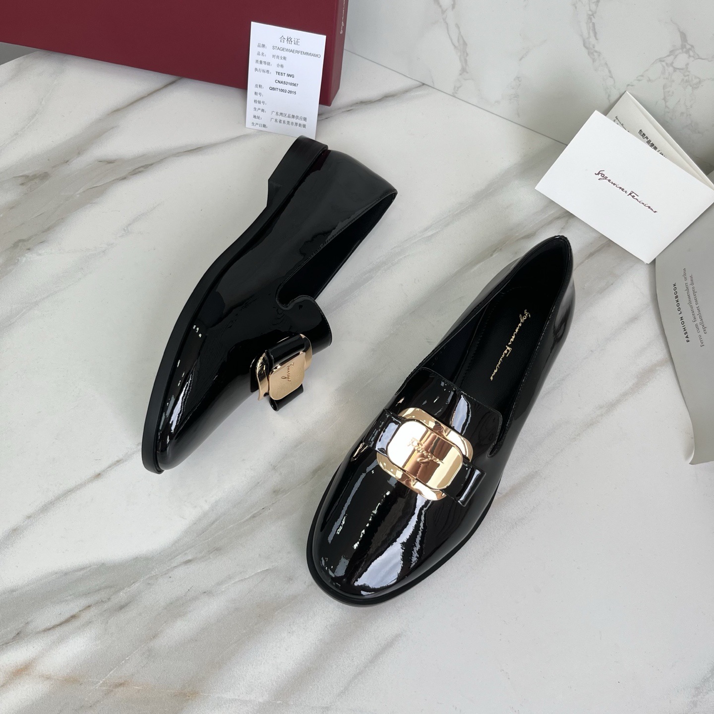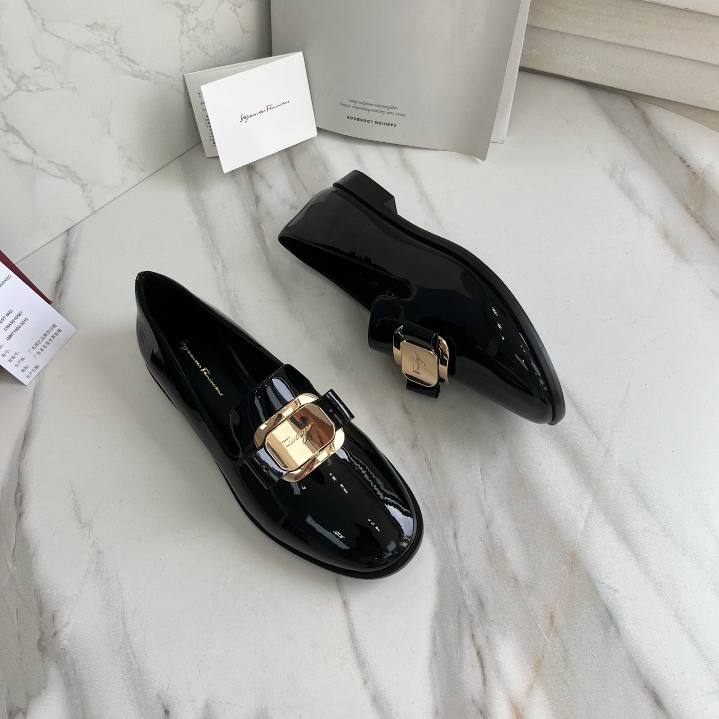 광저우산! SF 영국풍 천연 가죽 레트로 리본 장식 작은 가죽 신발 메탈 버클 페이턴트 가죽 로퍼 여성용 고급감스토어 가기