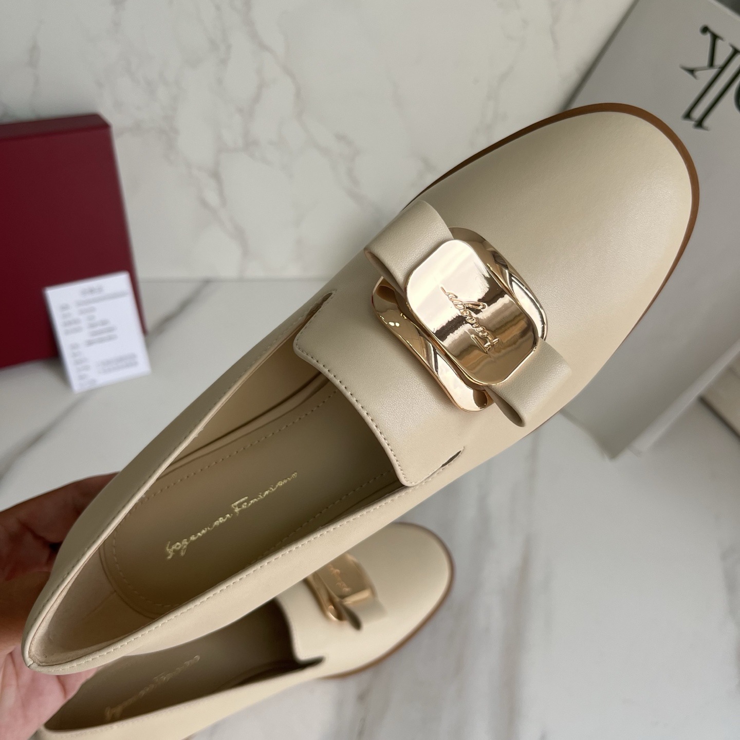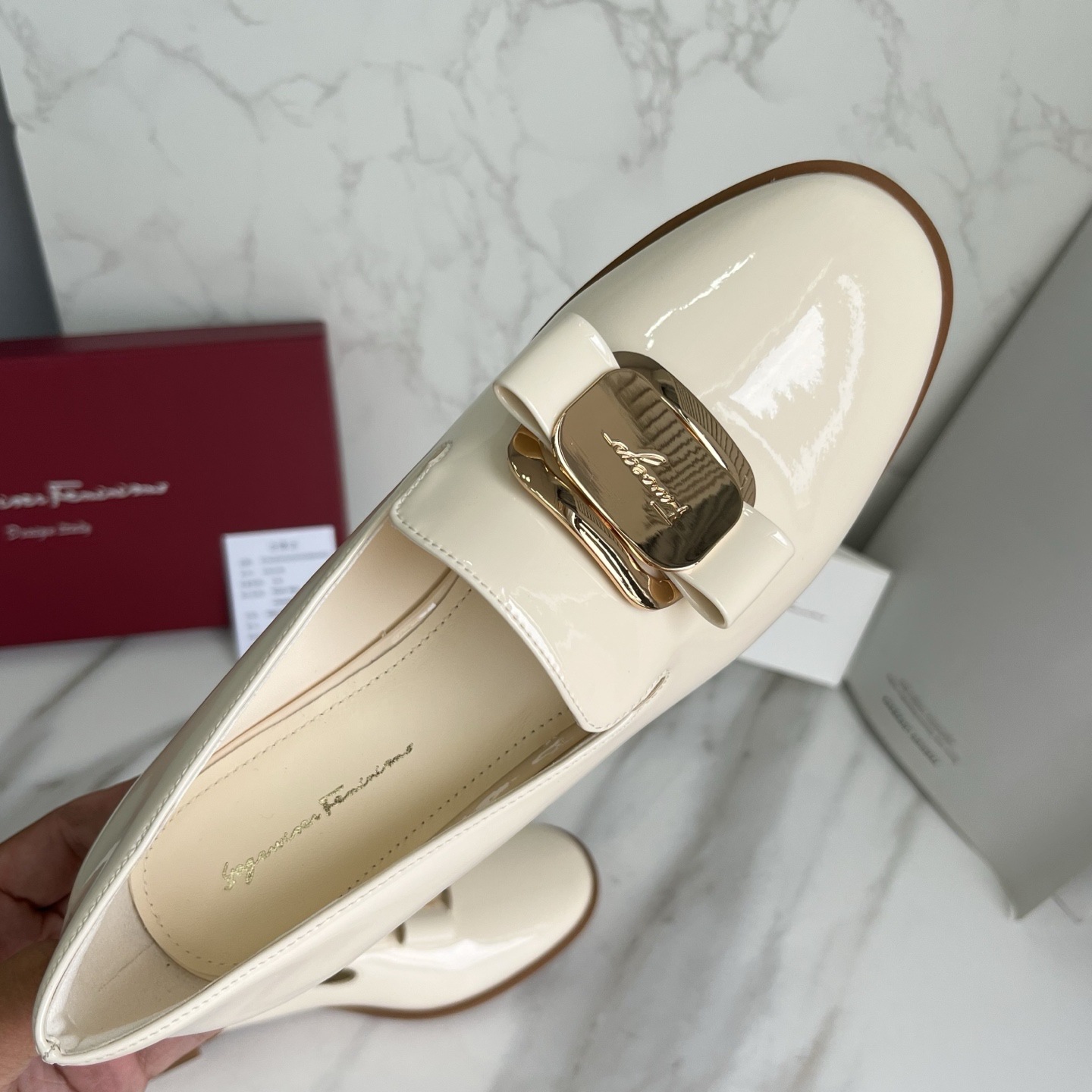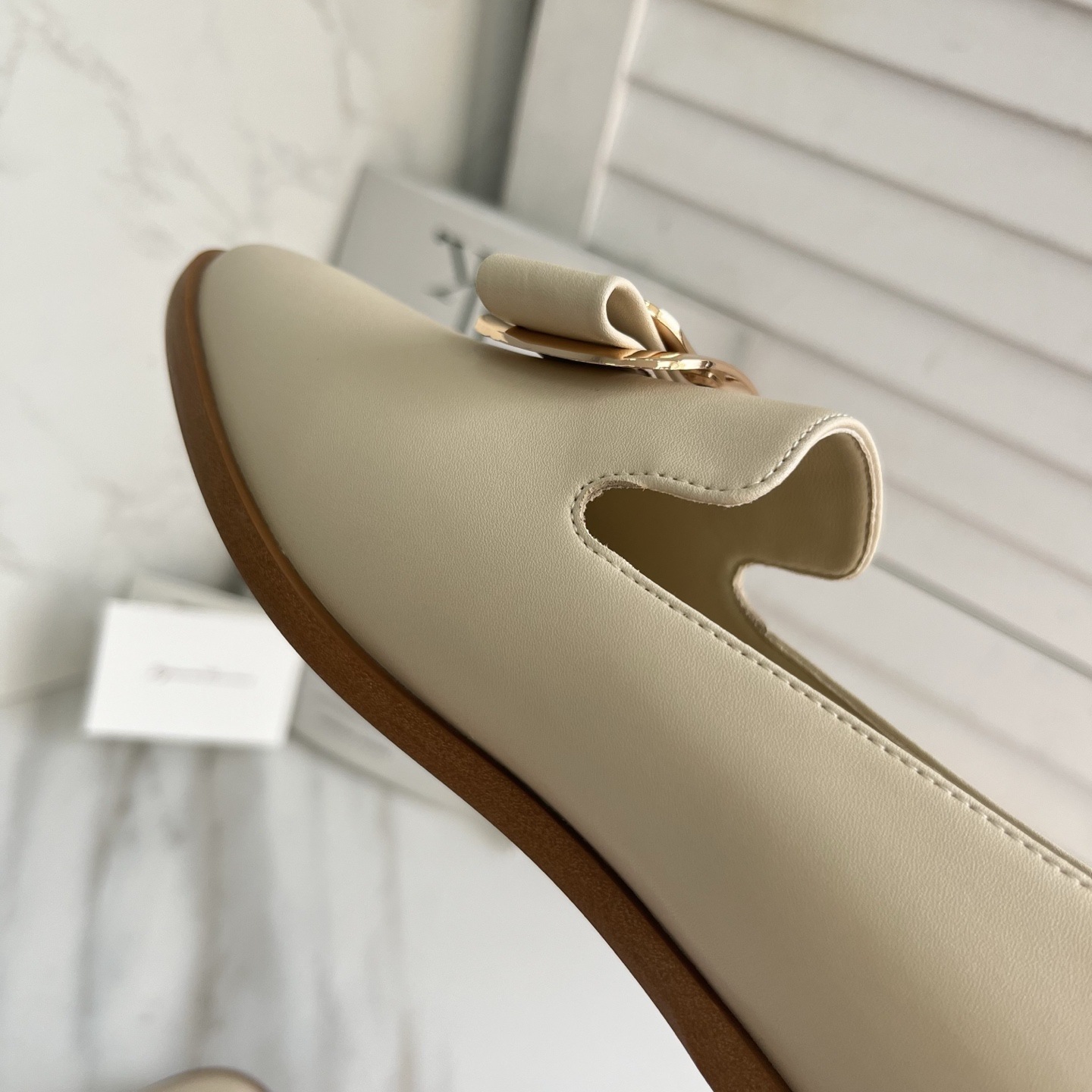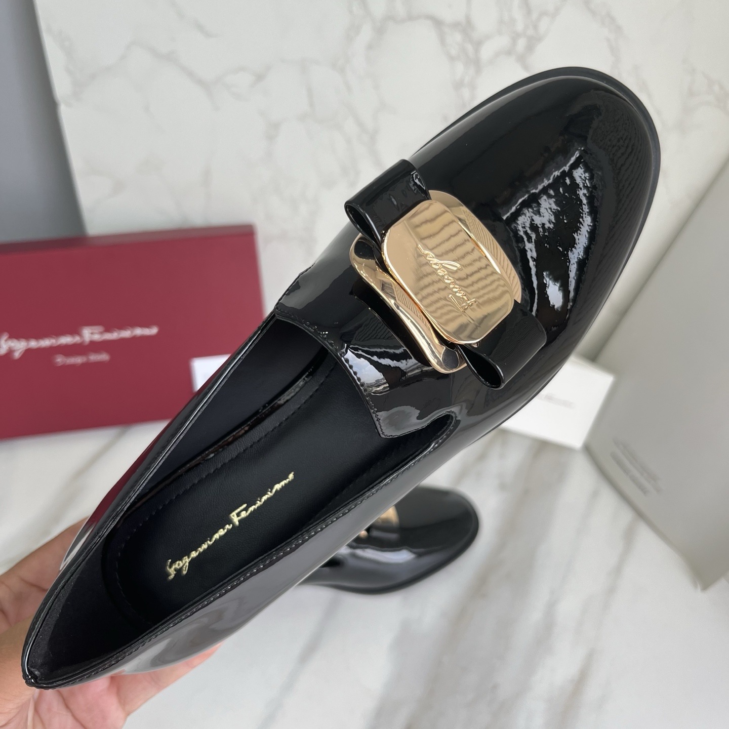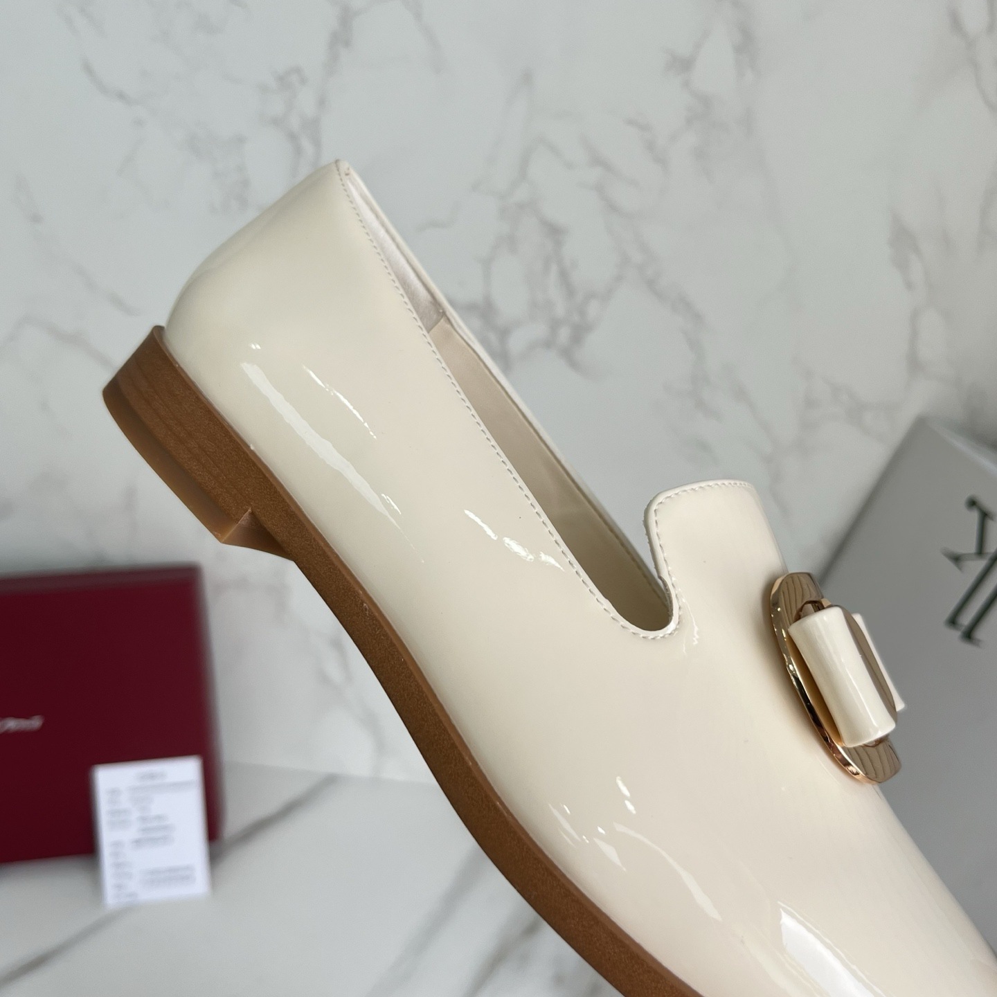 광저우산! SF 영국풍 천연 가죽 레트로 리본 장식 작은 가죽 신발 메탈 버클 페이턴트 가죽 로퍼 여성용 고급감스토어 가기