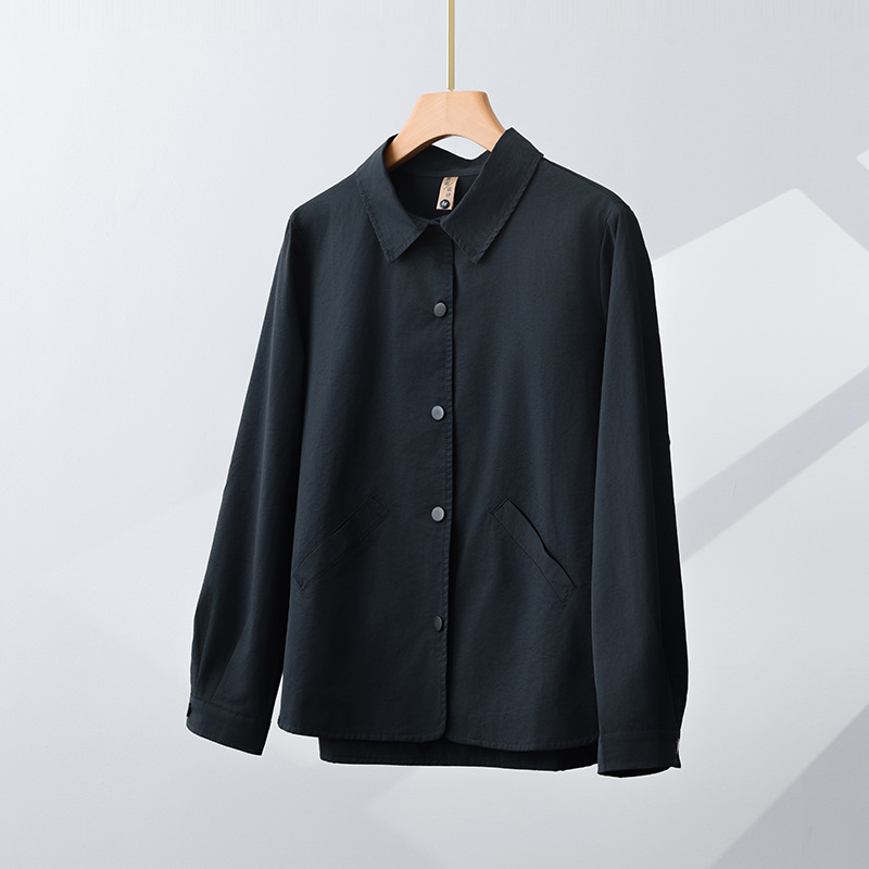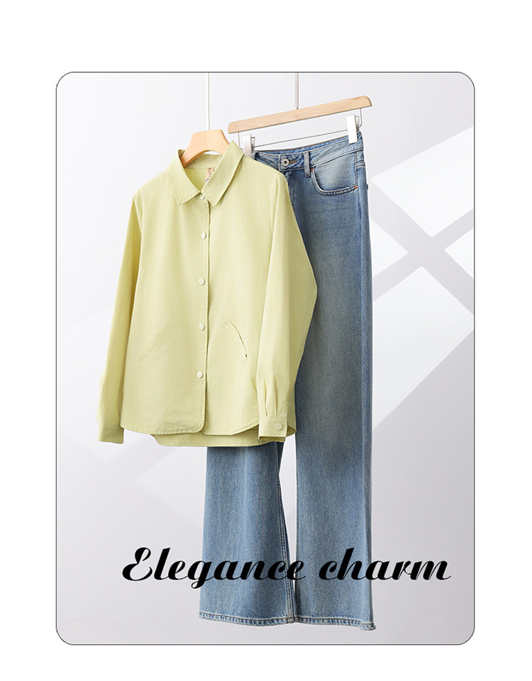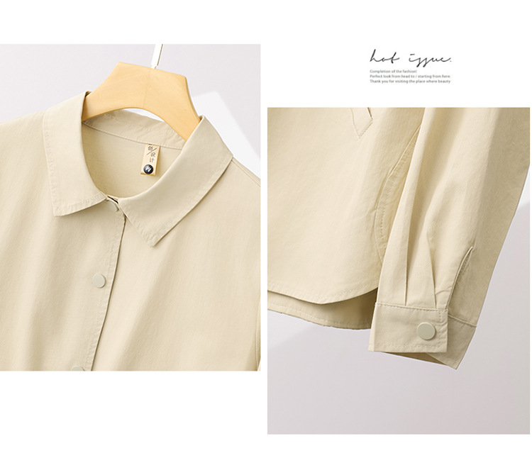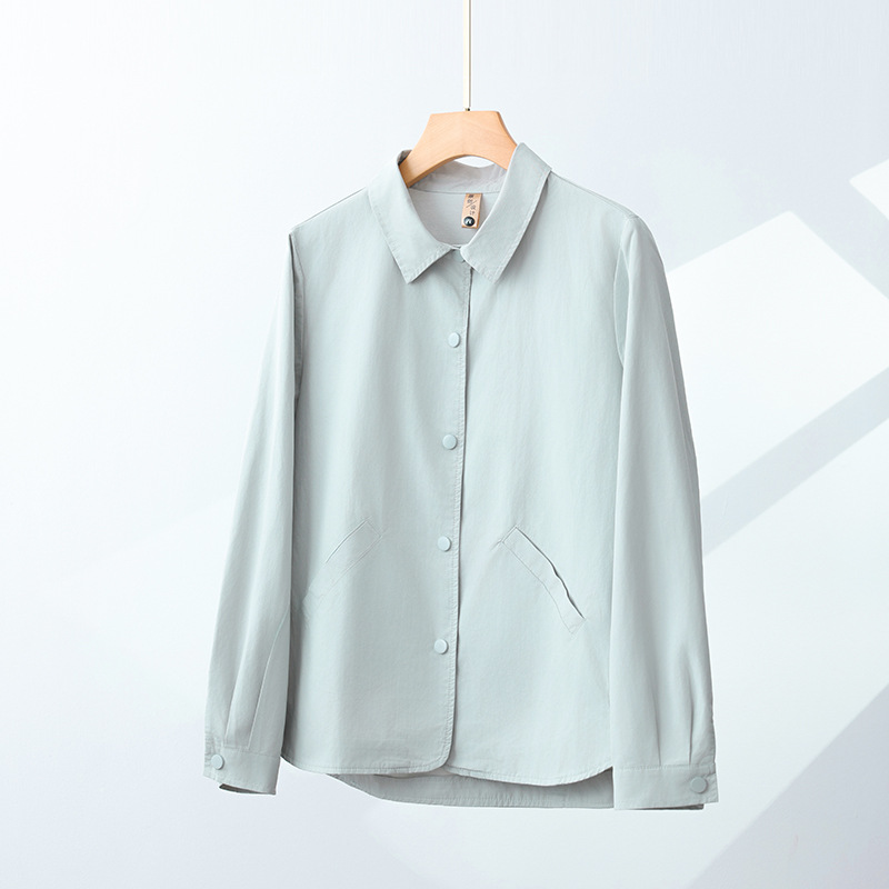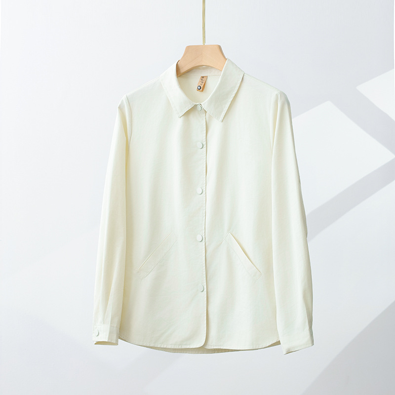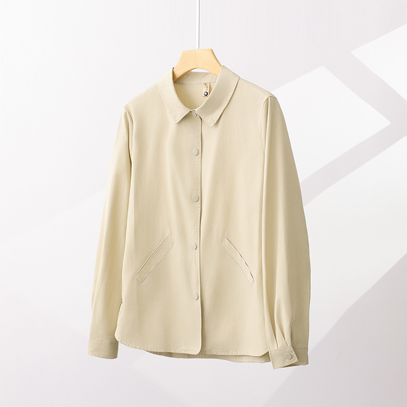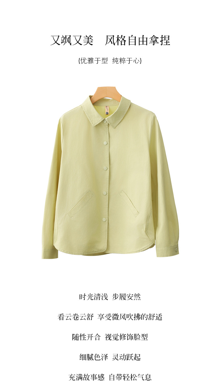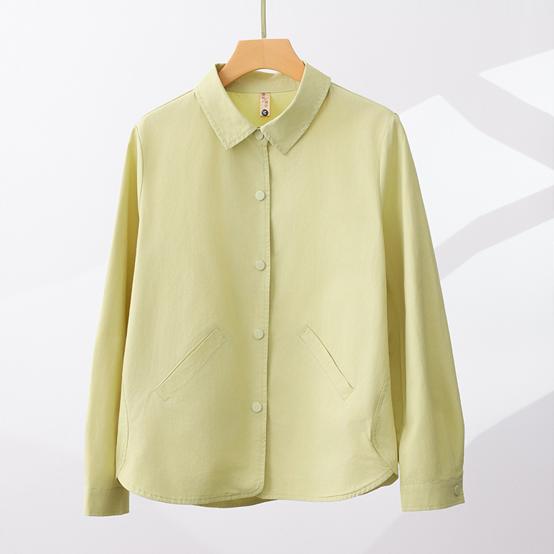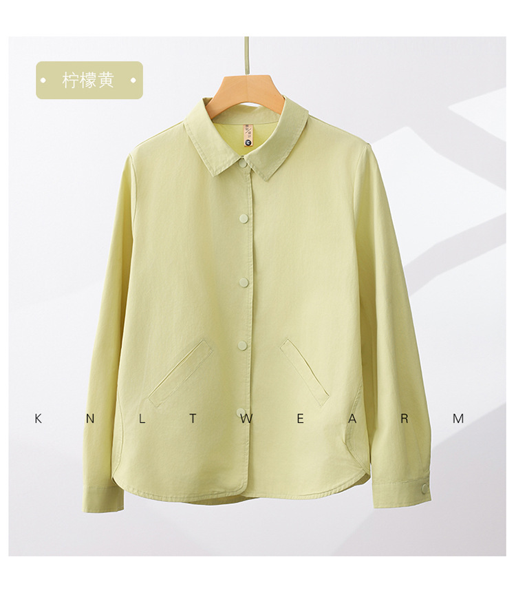 2025 여름 신작 폴로 칼라 셔츠 긴팔 여성 솔리드 컬러 대각선 포켓 루즈하고 다재다능한 셔츠 탑스토어 가기