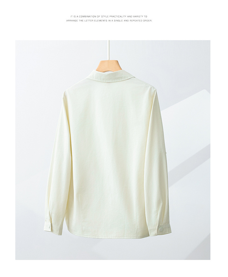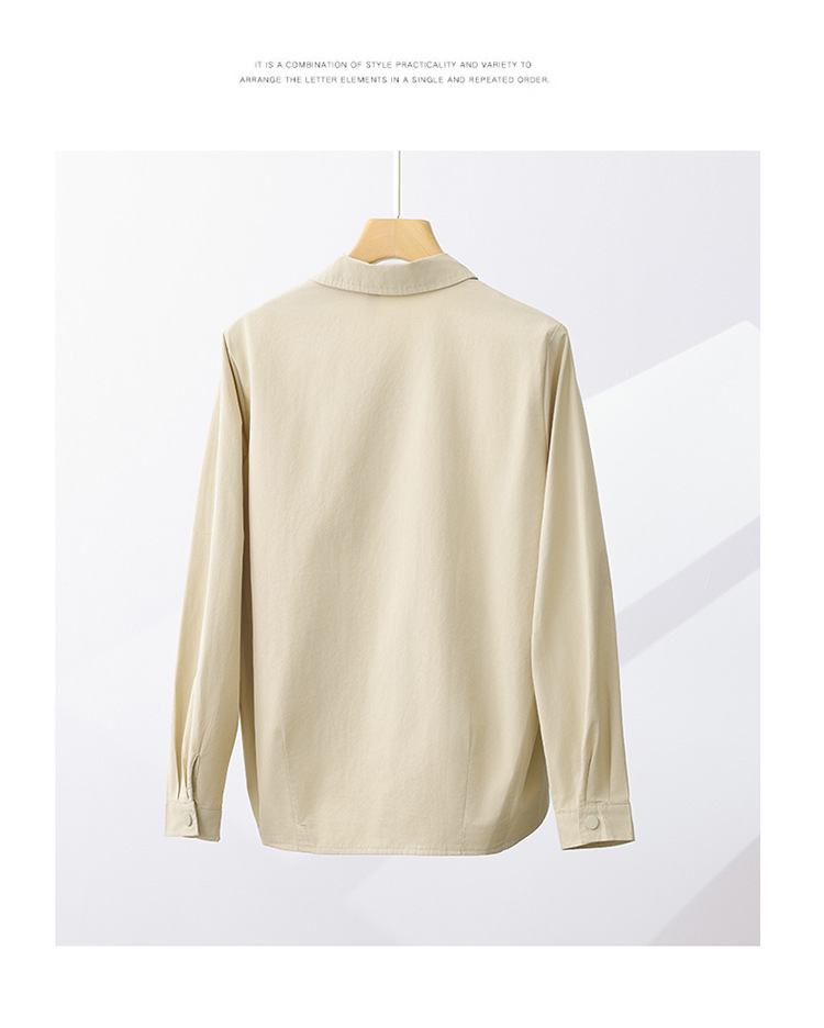 2025 여름 신작 폴로 칼라 셔츠 긴팔 여성 솔리드 컬러 대각선 포켓 루즈하고 다재다능한 셔츠 탑