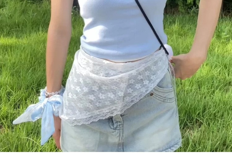 여름 레이스 삼각형 수건 한국 벨트 장식 소녀 목회 모리 스타일 문학 스타일 여행 사진 온라인 축하 액세서리스토어 가기