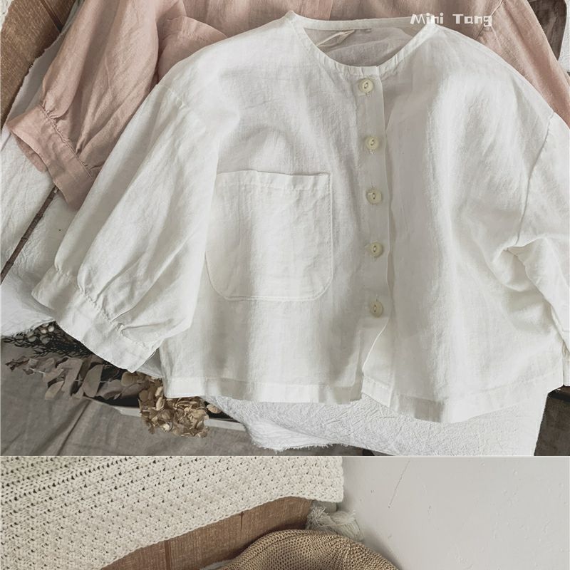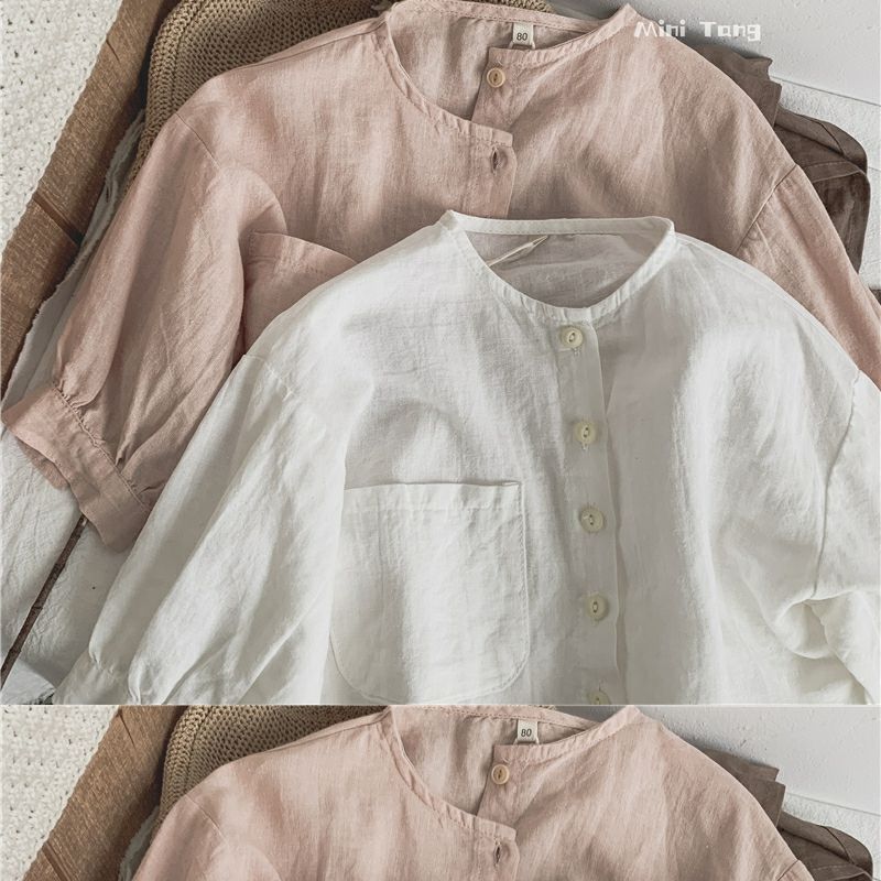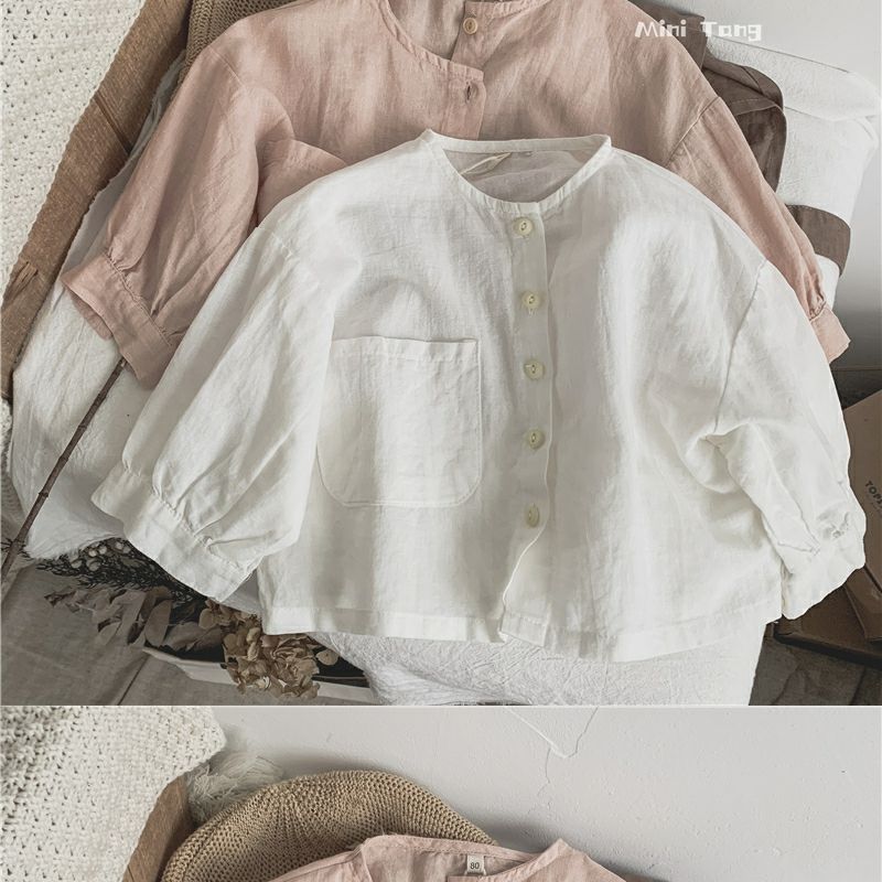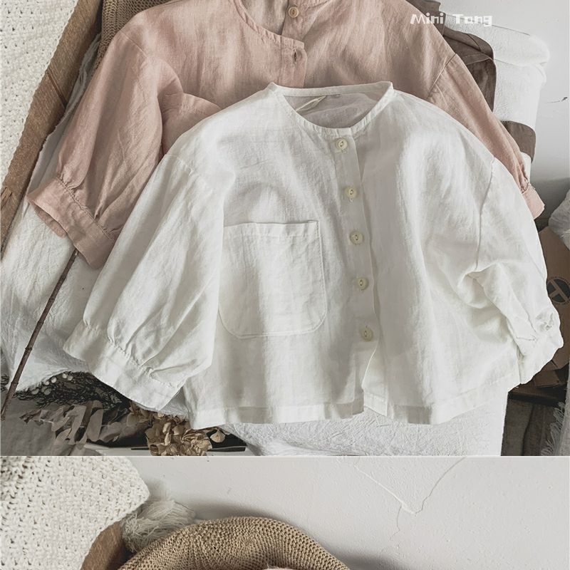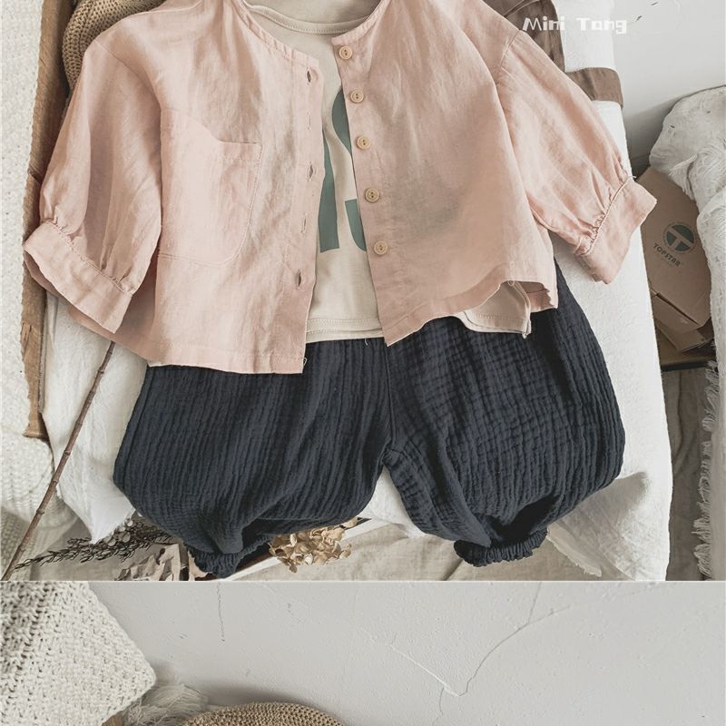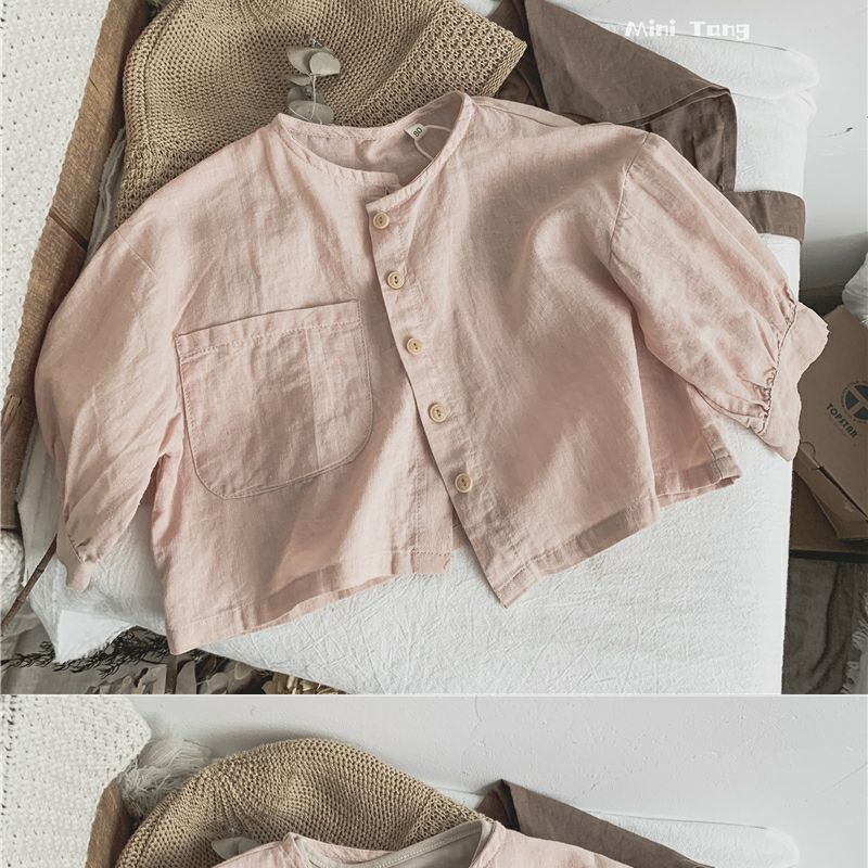 톤 솔리드 컬러 한국 모리 어린이 얇은 부드러운 짧은 선 스크린 코트 소년 소녀 아기 코트 에어컨 셔츠 면 및 여름 용 대마 셔츠