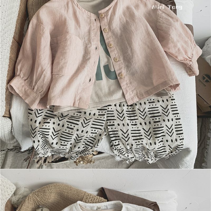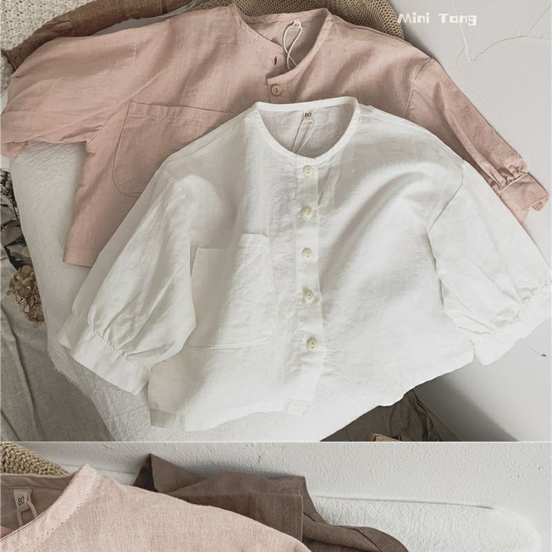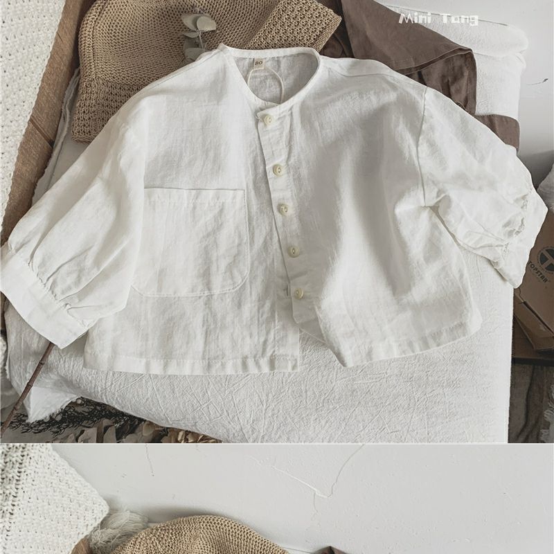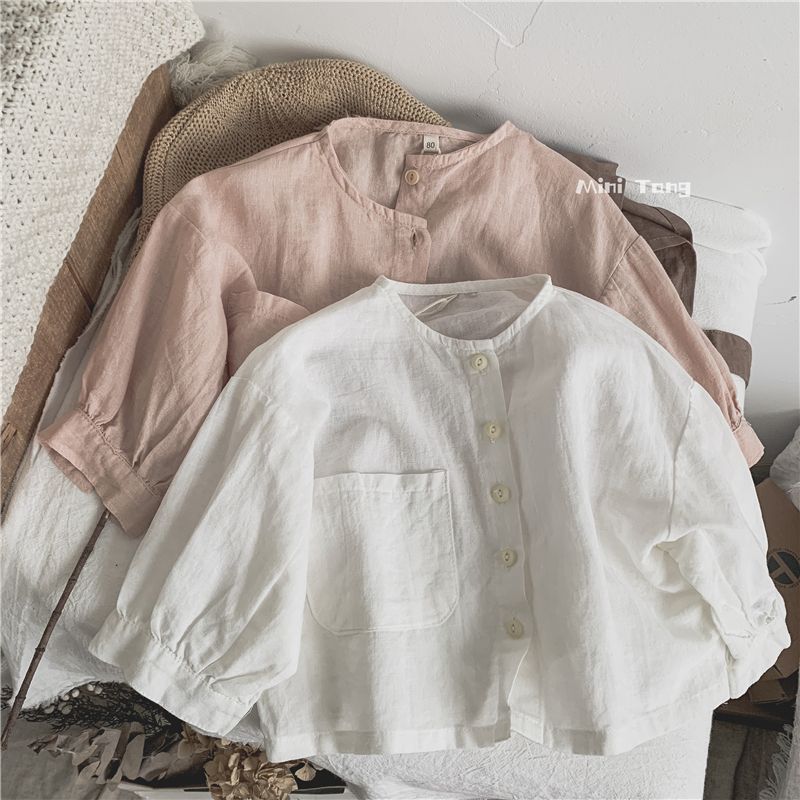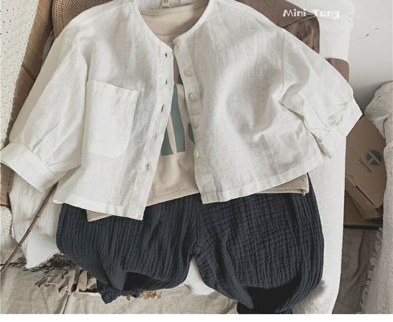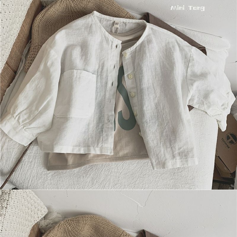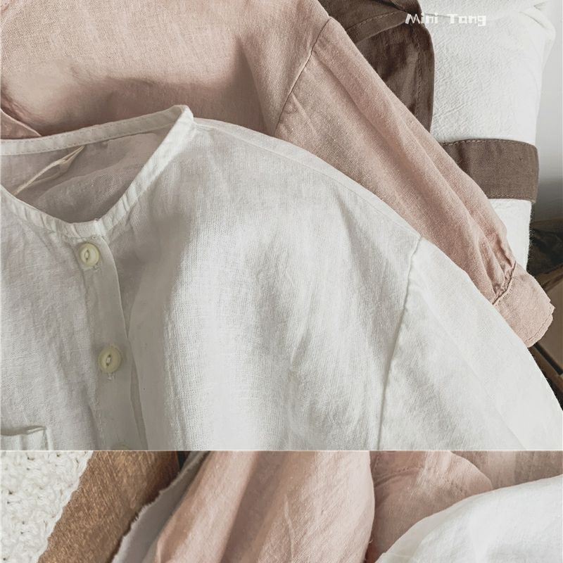 톤 솔리드 컬러 한국 모리 어린이 얇은 부드러운 짧은 선 스크린 코트 소년 소녀 아기 코트 에어컨 셔츠 면 및 여름 용 대마 셔츠