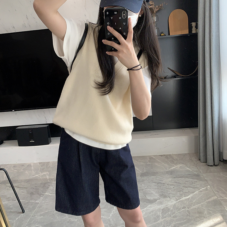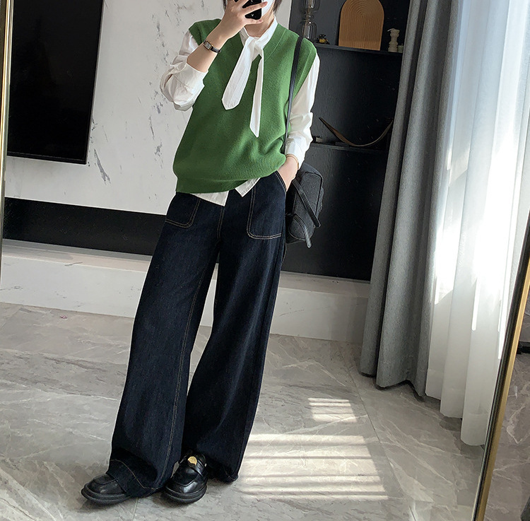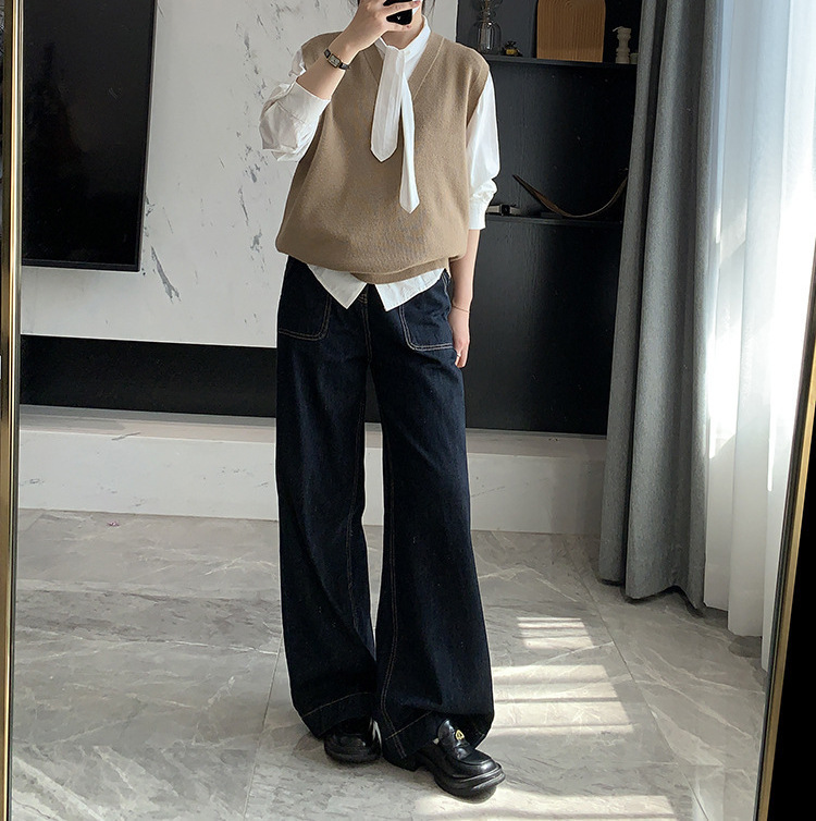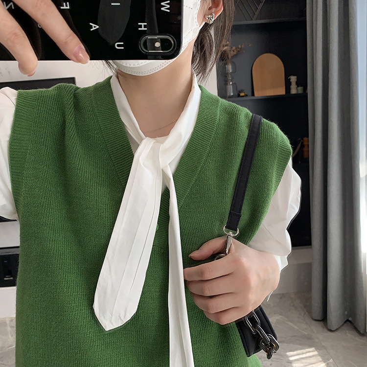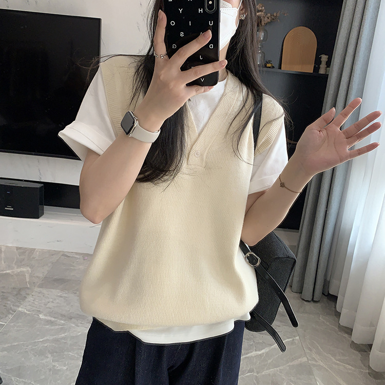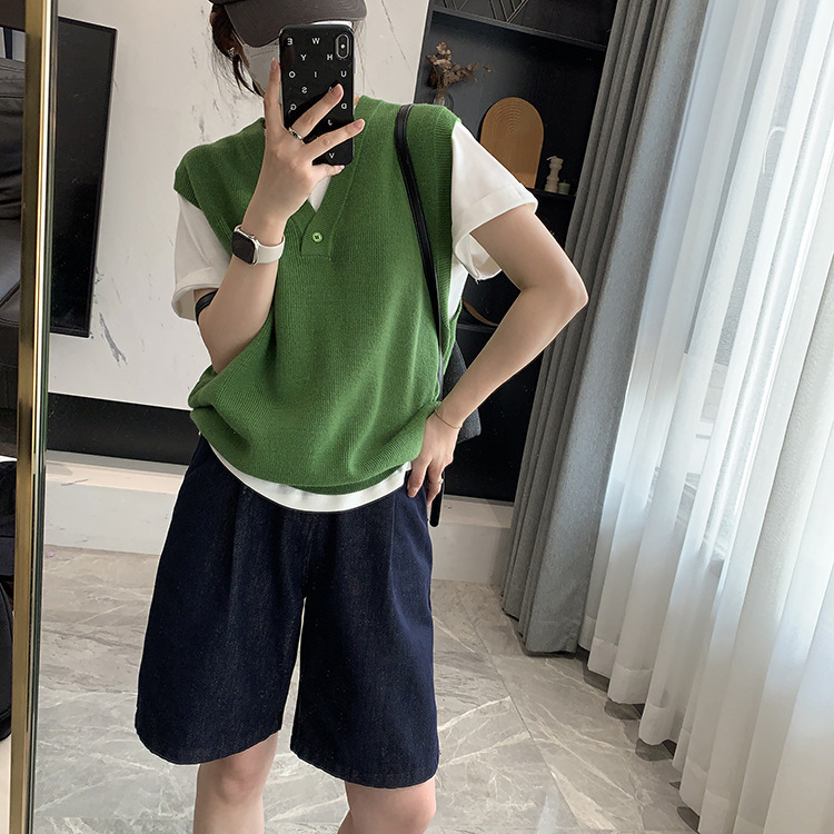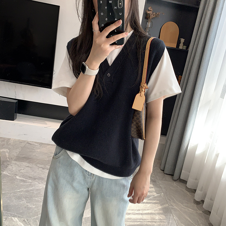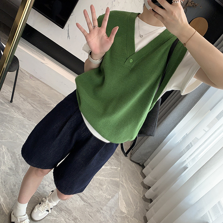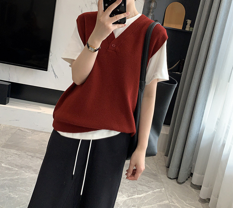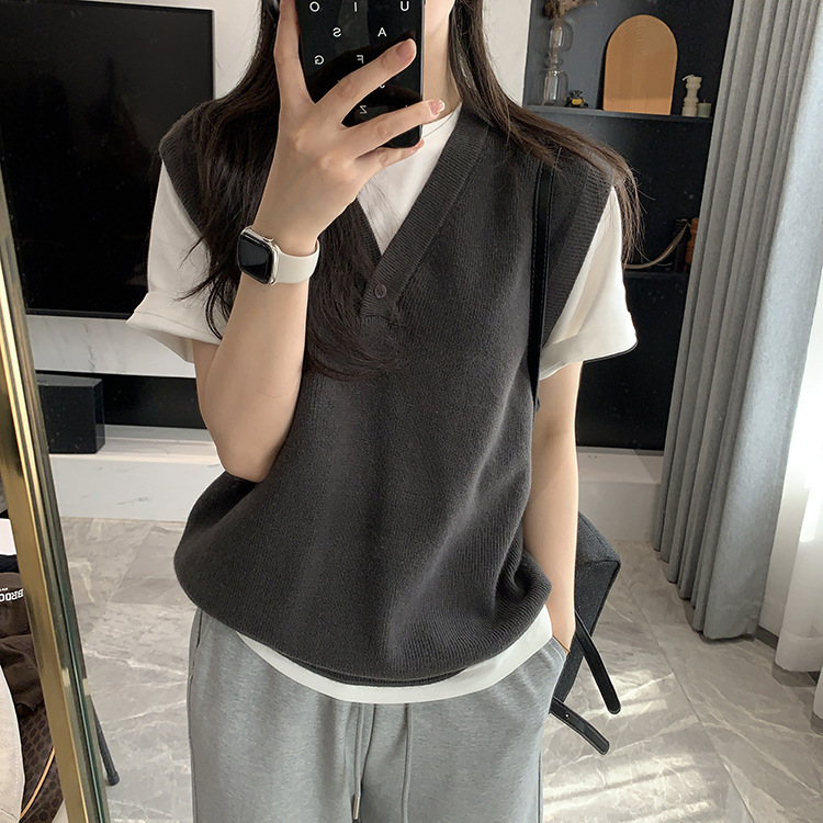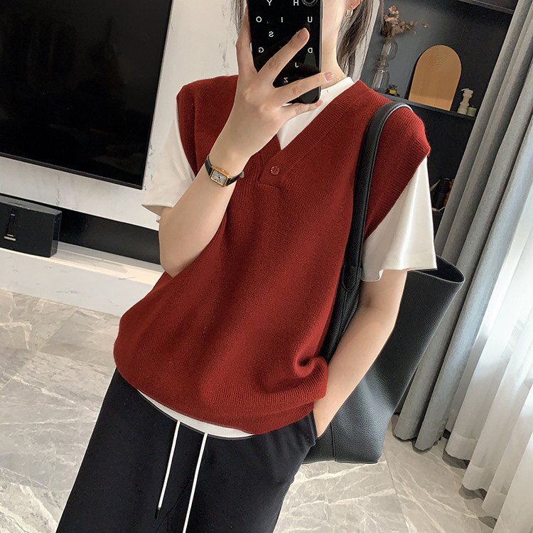 여성을위한 복고풍 느슨한 겉옷 V 넥타이 버클 조끼 가을, 겨울 새로운 스타일 여성 레이어링 외국 스타일 니트 조끼 여성 조끼스토어 가기