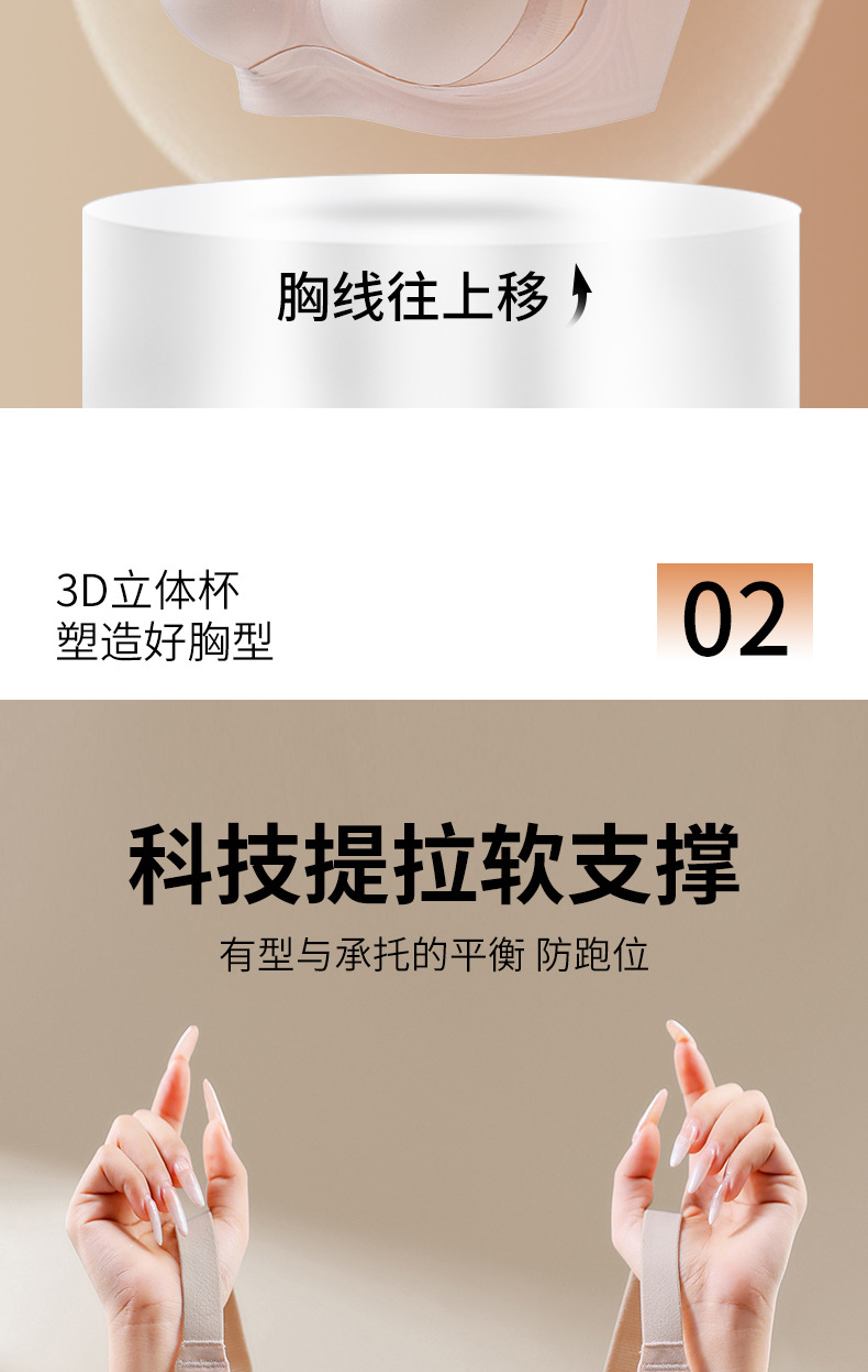 가슴이 작은 여성을 위한 맞춤형 반고정컵 노와이어 속옷, 푸쉬업, 보조가슴축소, 처짐방지 스포츠브라, 통기성, 피부친화적