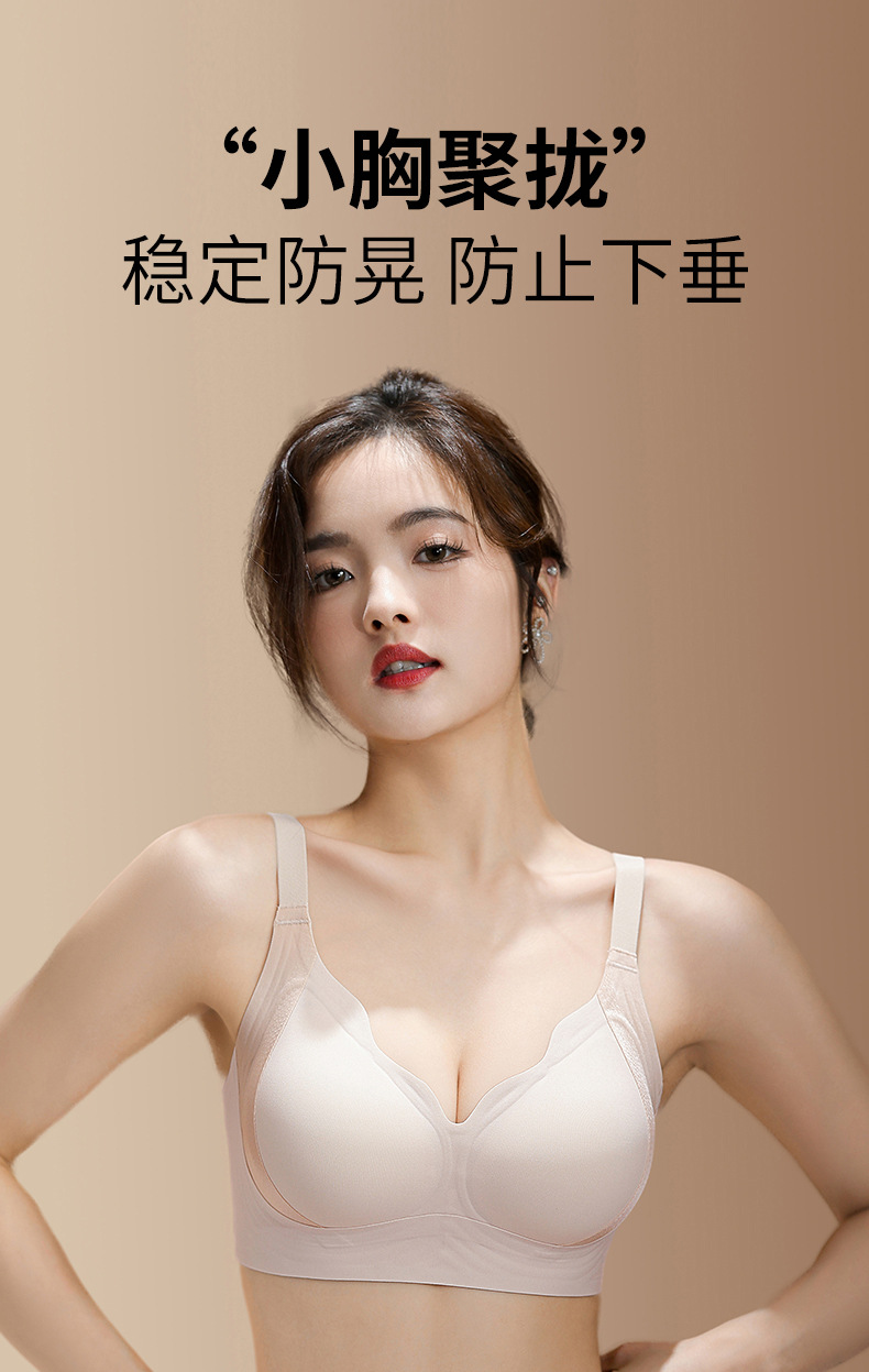 가슴이 작은 여성을 위한 맞춤형 반고정컵 노와이어 속옷, 푸쉬업, 보조가슴축소, 처짐방지 스포츠브라, 통기성, 피부친화적스토어 가기