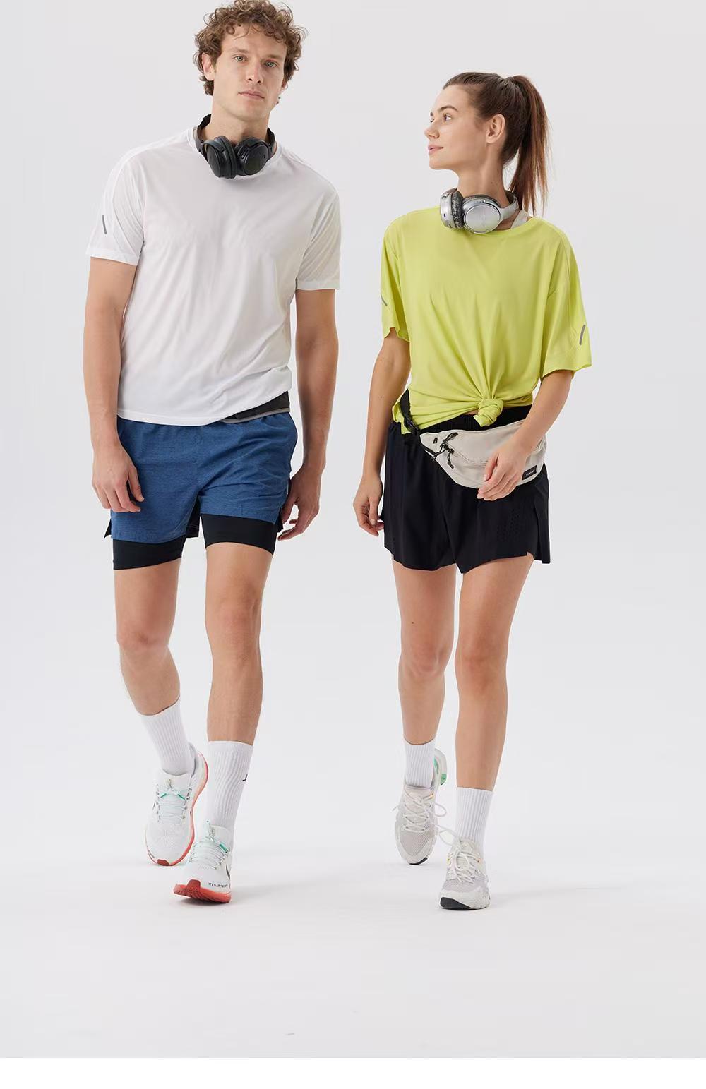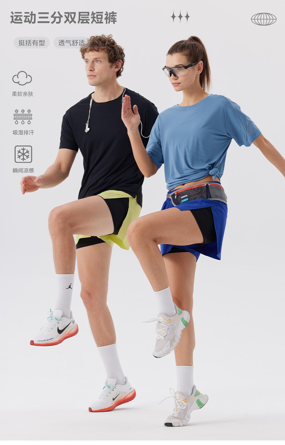 휴대폰을 위한 뒷주머니가 있는 남성용 및 여성용 런닝 반바지, 신축성 있는 안감, 속건성 피트니스 스포츠 마라톤 3점 팬츠