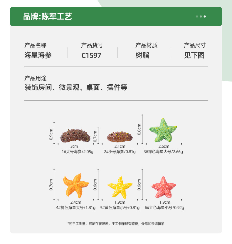 시뮬레이션 작은 불가사리 해삼 수족관 해변 조경 DIY 장식 액세서리 마이크로 풍경 미니 작은 장식품스토어 가기
