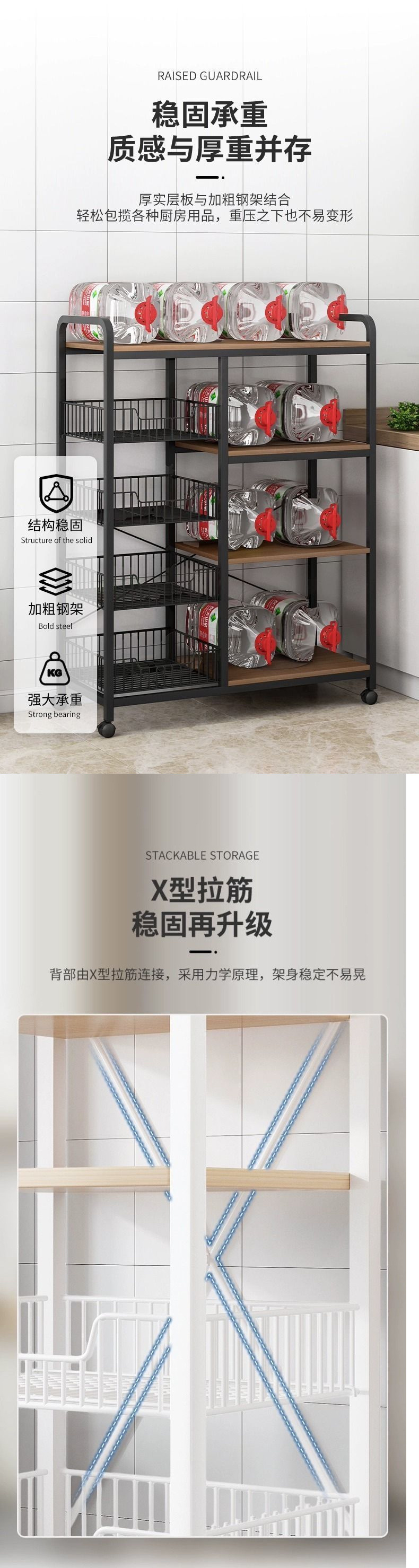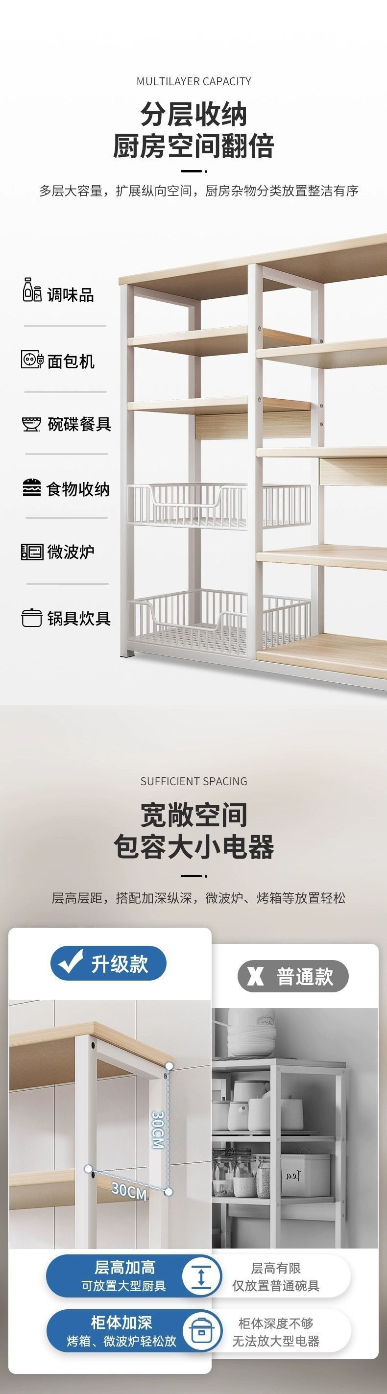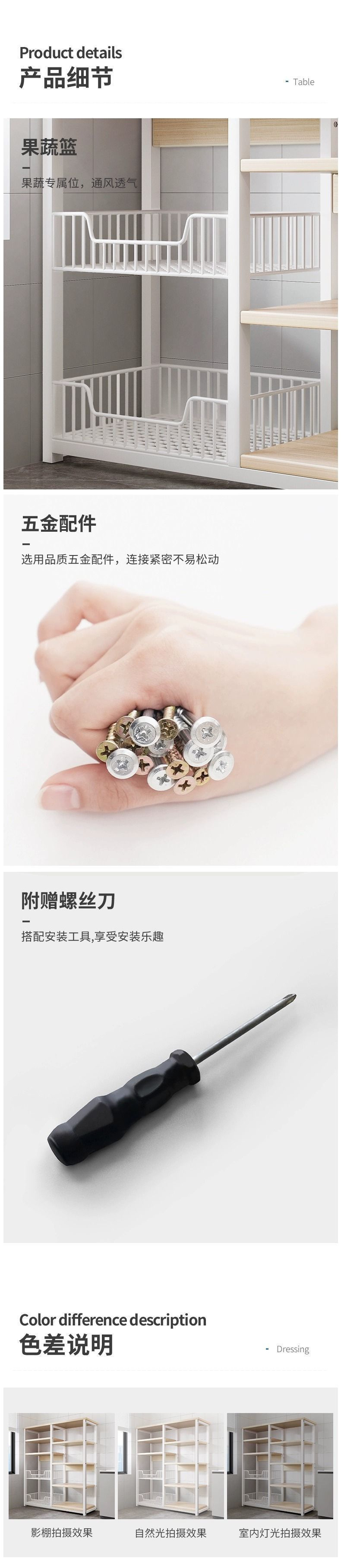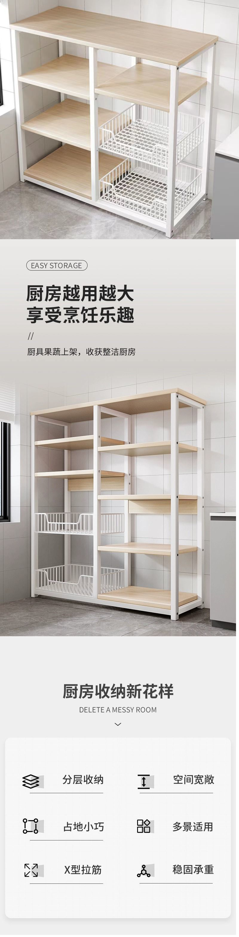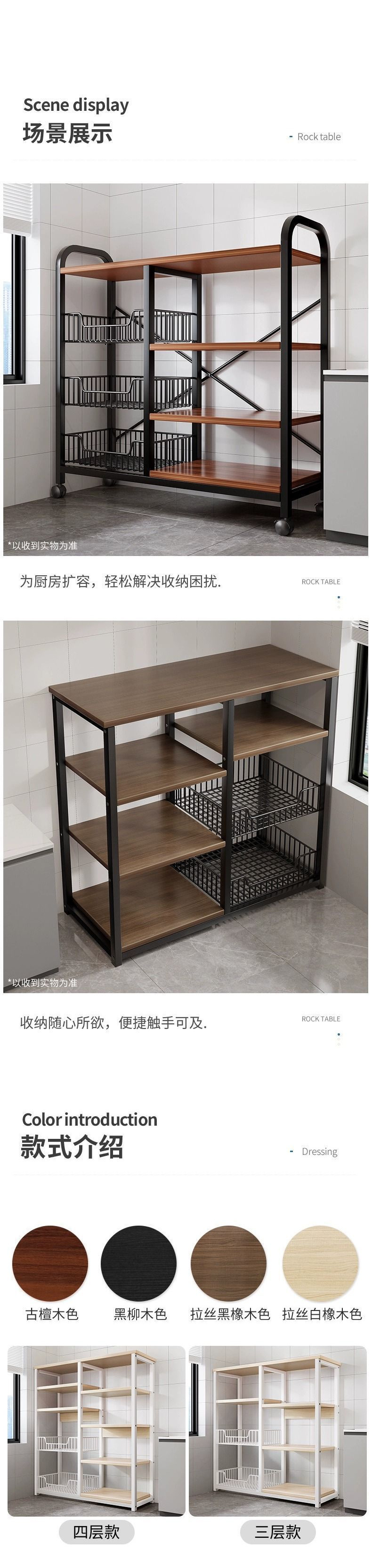 이동식 주방 보관 선반 다기능 바닥 스탠딩 전자 레인지 용품 보관 선반 다층 가정용 보관 선반스토어 가기