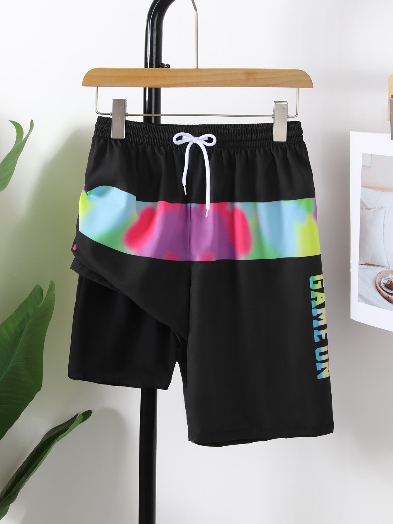 청소년, 남성, 중년 및 어린이 수영복 속건성 게임기 비치 반바지 스플릿 반팔 자외선 차단 수영복 세트스토어 가기